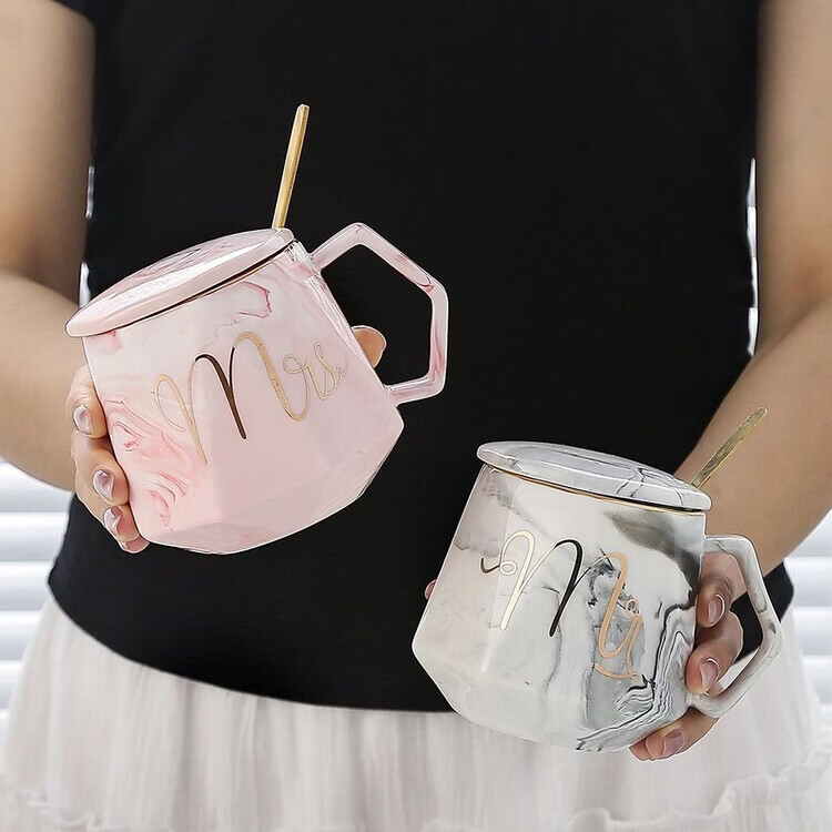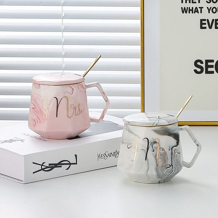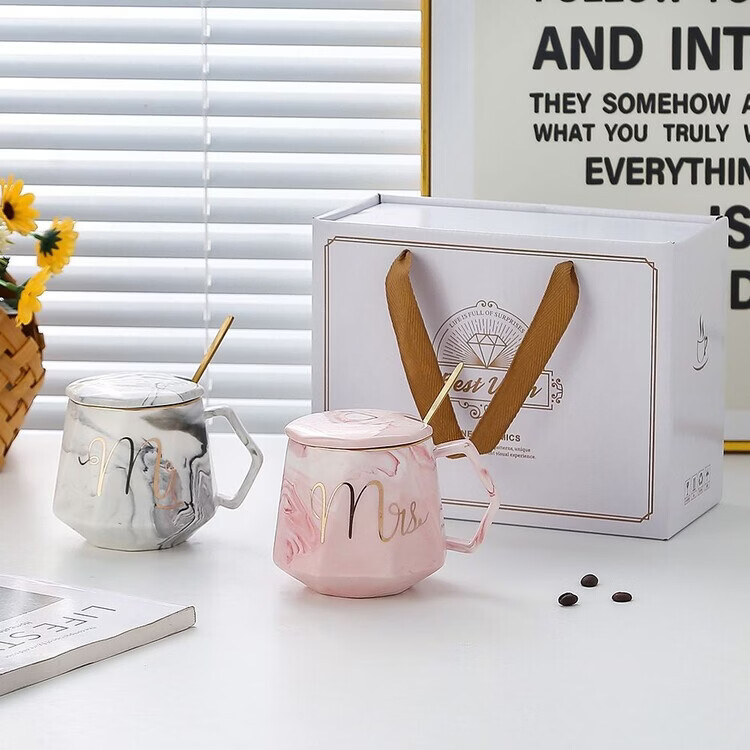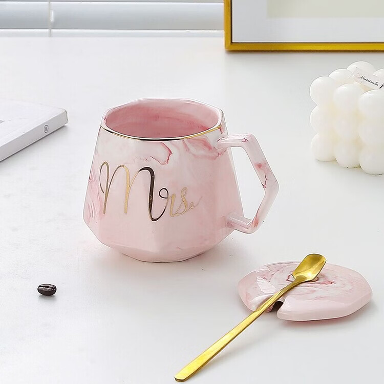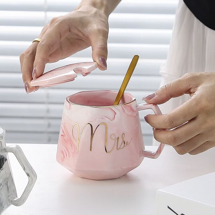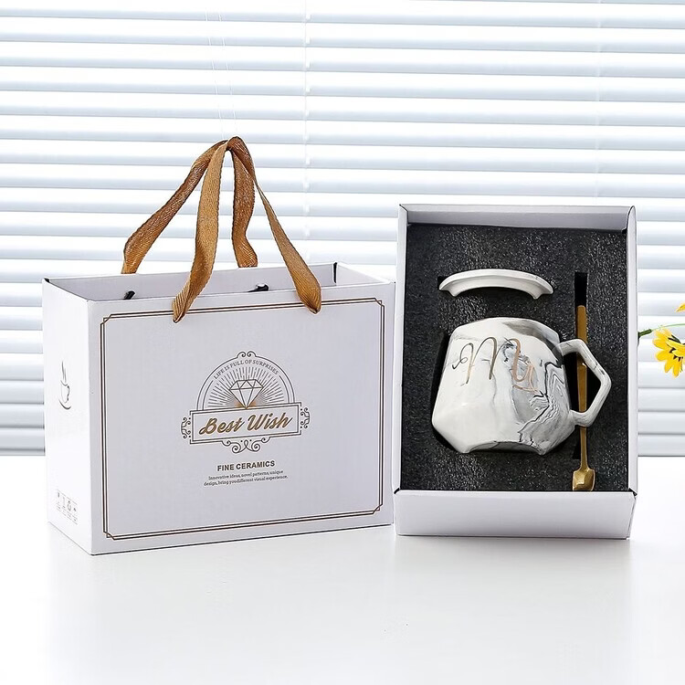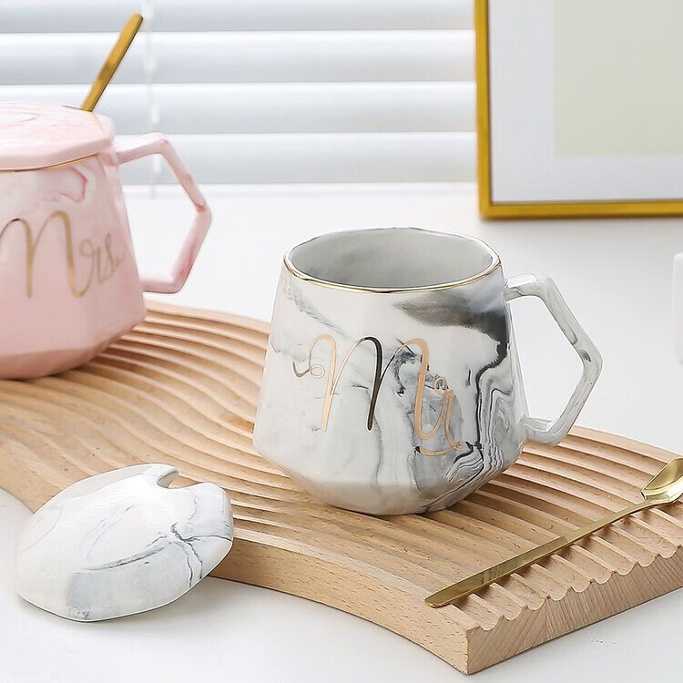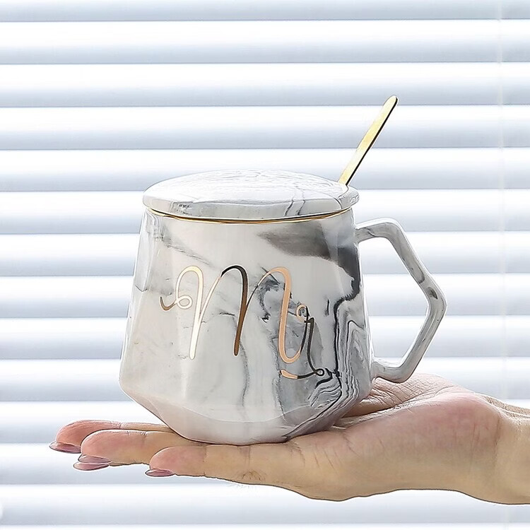 咏夏杯子ins高颜值马克杯带盖勺家用生日礼物陶瓷杯送老师教师伴手礼 m灰色单杯