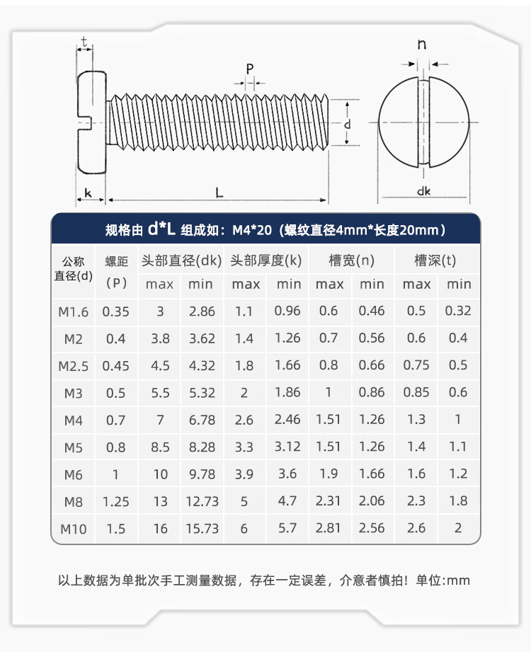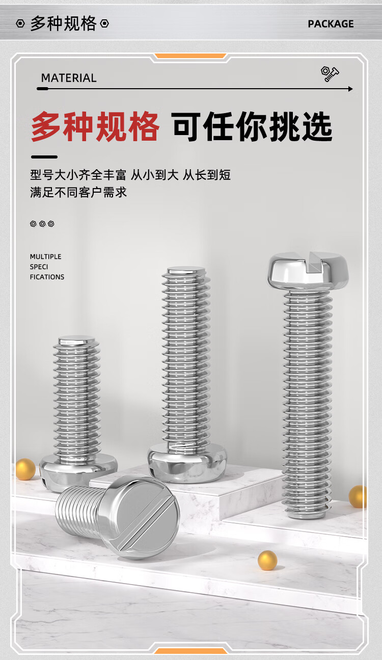 天卓五金304不锈钢圆柱头一字槽螺丝钉GB65盘头圆头开槽螺栓MM2M3M4M5M6M8 M1.6*3-150个