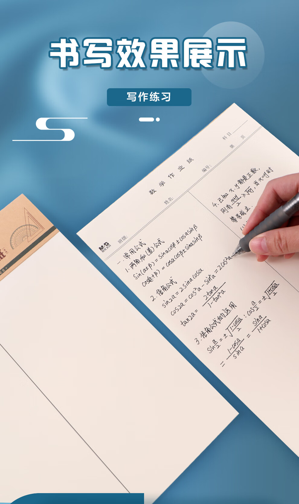 晨光(M&G)【开学季】3本16K数学作业纸(中竖线)学生用非a4考研加厚米黄护眼练习纸笔记本20页/本APYKTV50
