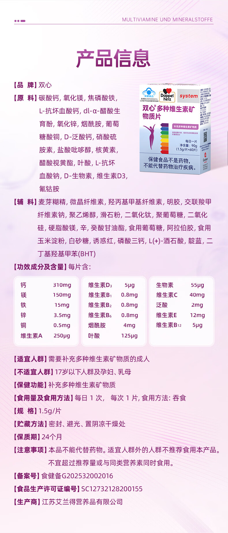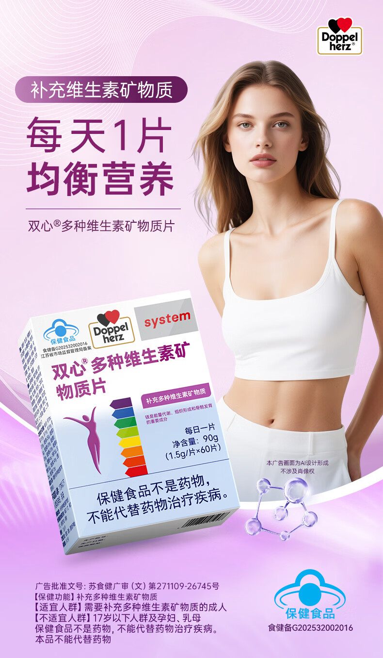 双心(Doppel herz)女士复合维生素17种营养叶酸烟酰胺生物素B族60粒/盒 【女士复合维生素丨1周期】 60粒*2盒