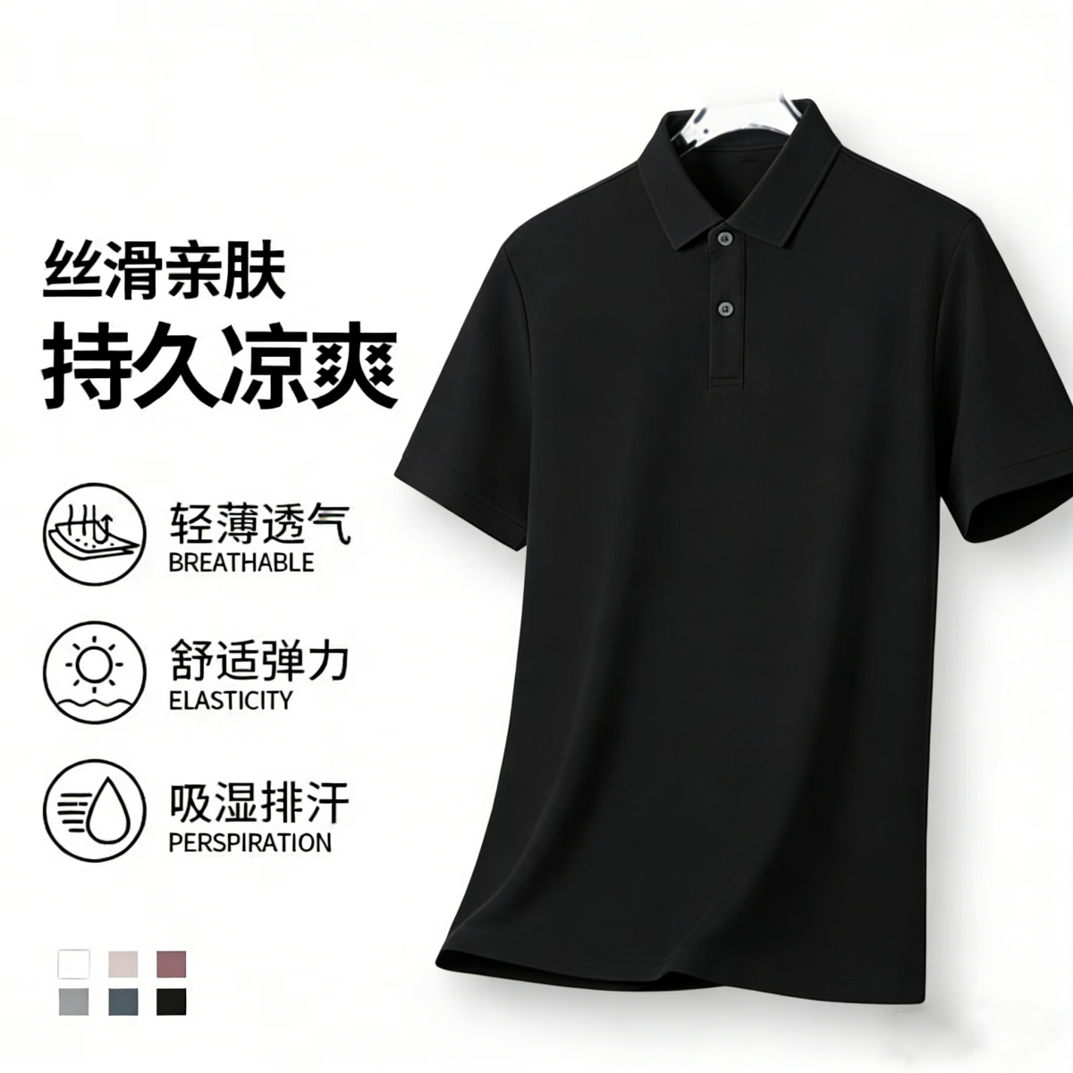 【轻奢商务】运动T恤POLO衫大码短袖百搭纯色宽松上衣休闲打底衫 黑色 2XL 建议130-150斤
