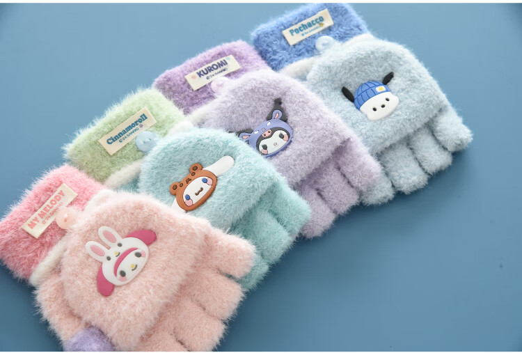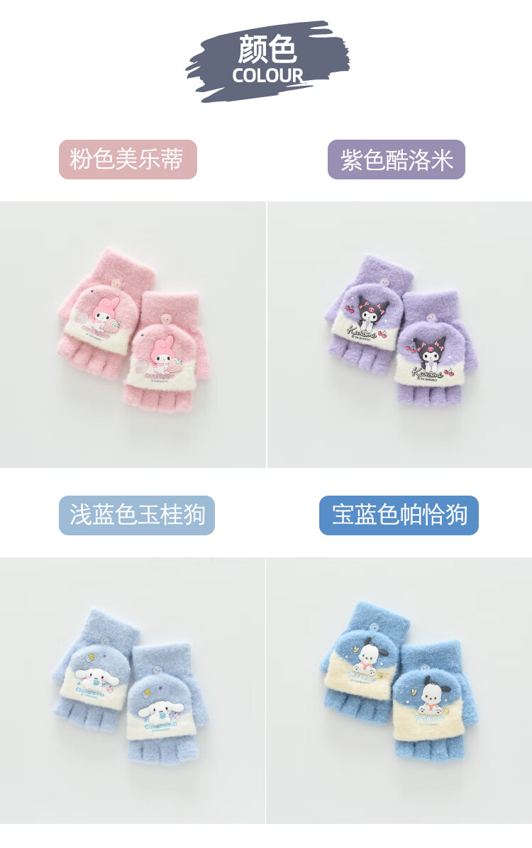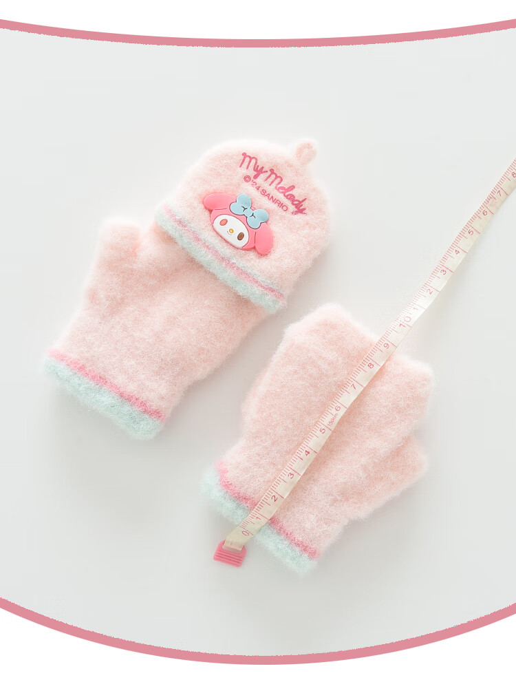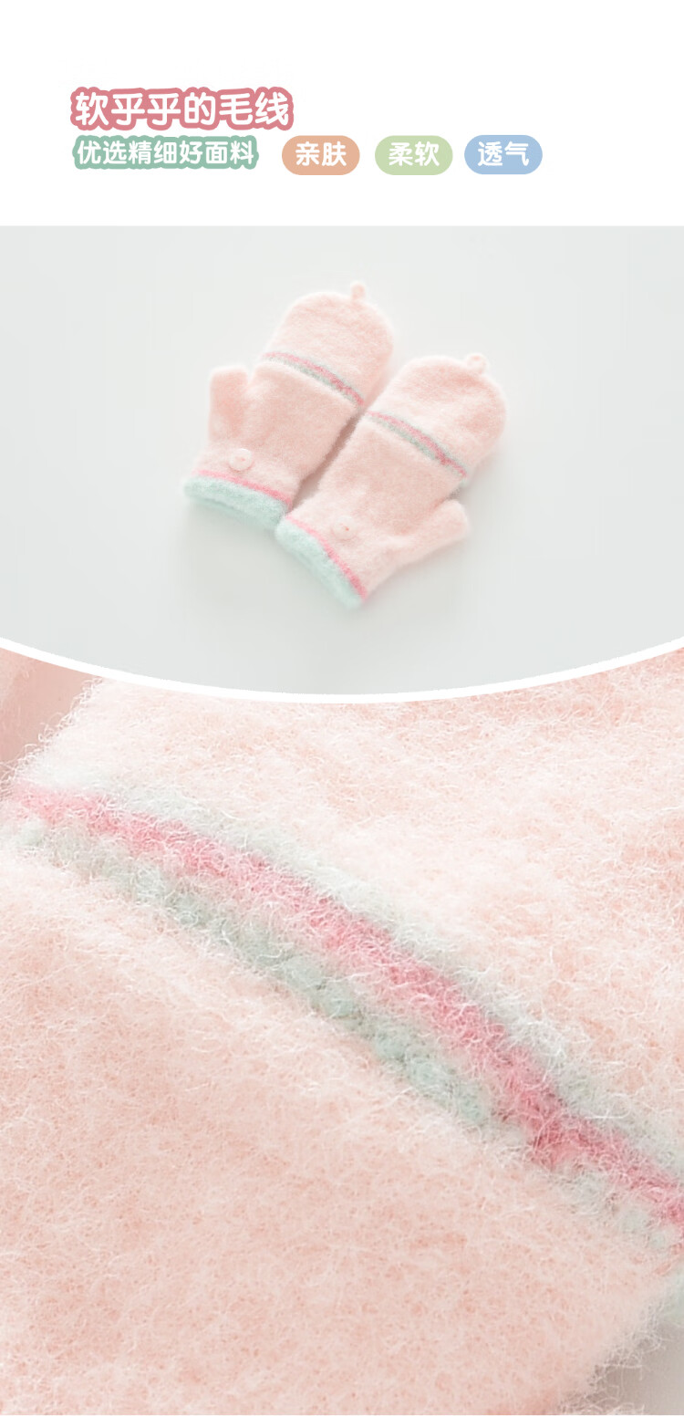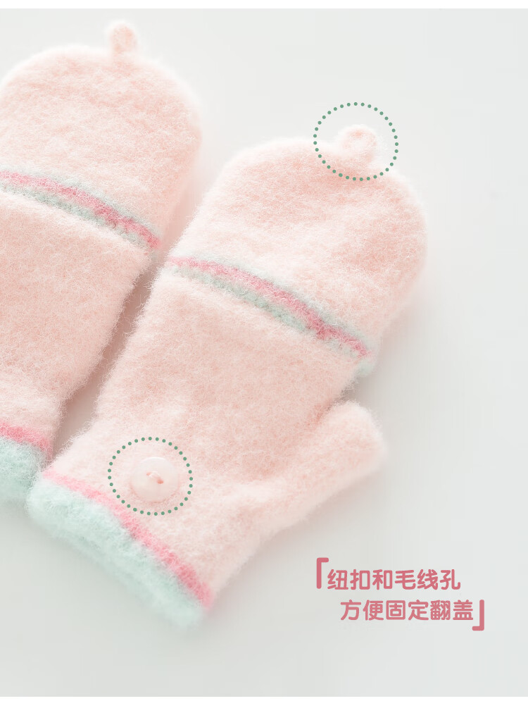 G.duck小黄鸭秋冬季儿童翻盖半指手套冬天保暖宝宝婴幼儿薄款1-3-5-8岁 美乐蒂 粉色 0-3岁 建议参考年龄