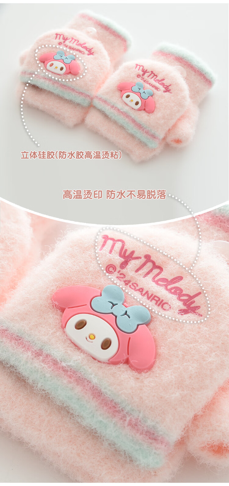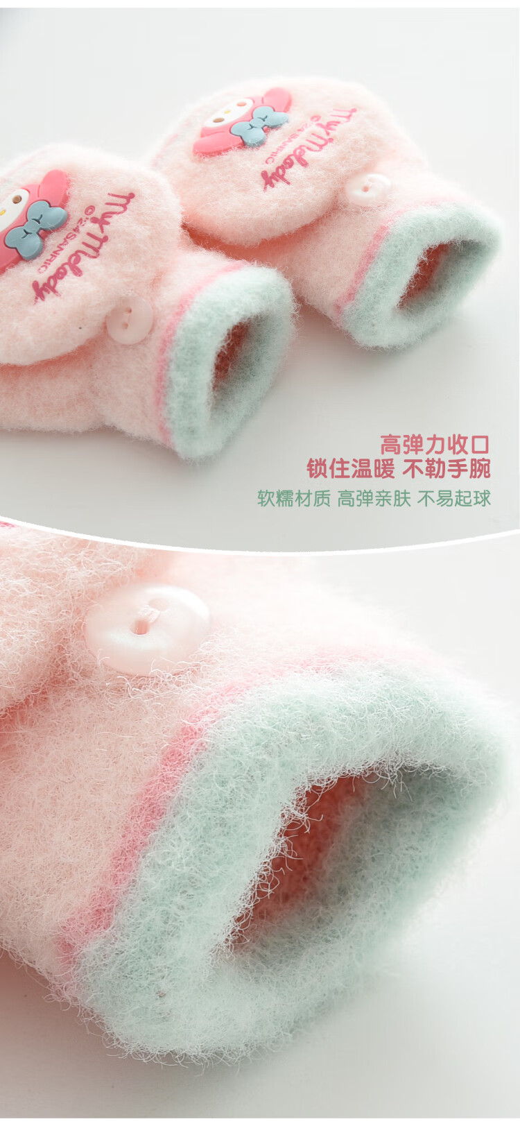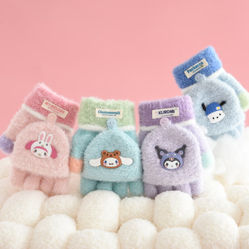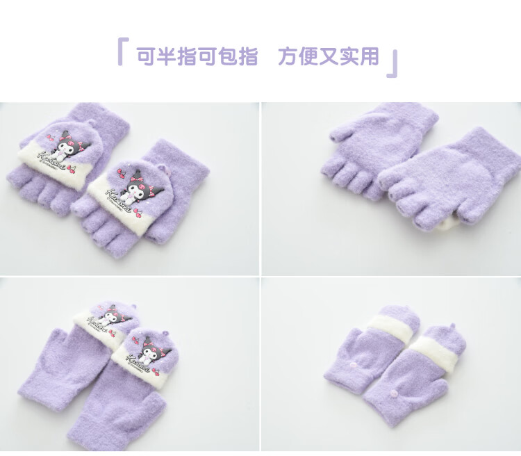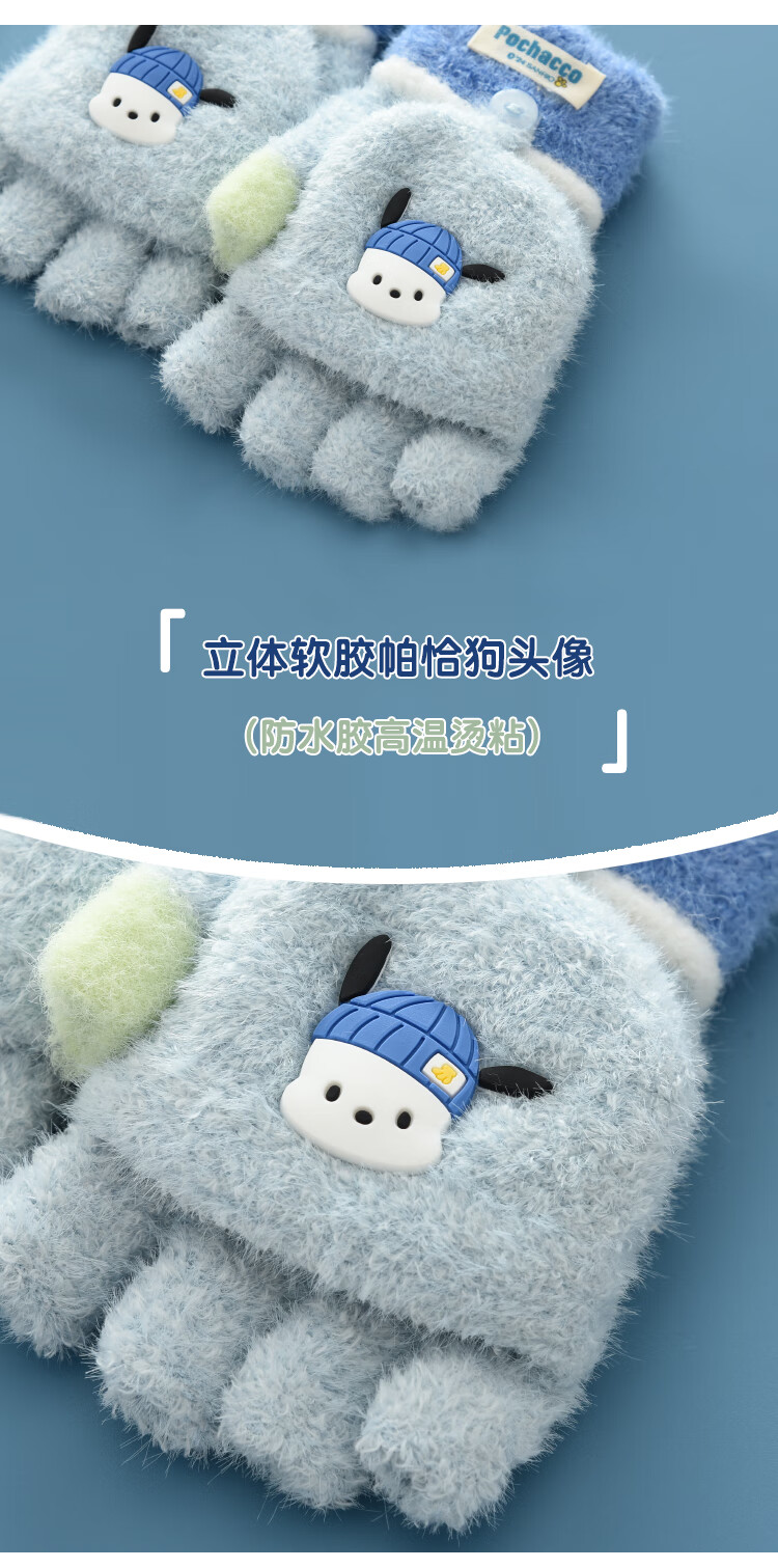 G.duck小黄鸭秋冬季儿童翻盖半指手套冬天保暖宝宝婴幼儿薄款1-3-5-8岁 美乐蒂 粉色 0-3岁 建议参考年龄