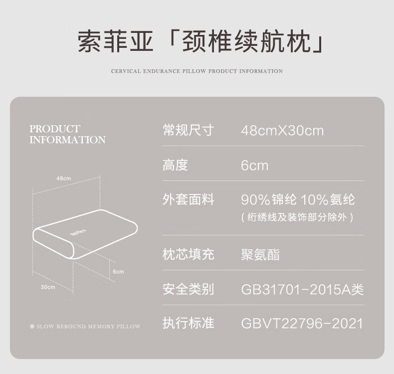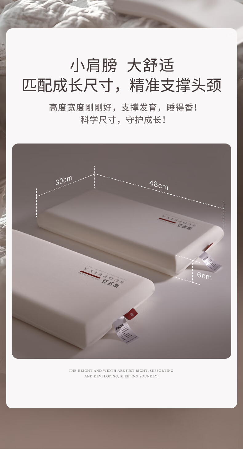 索菲亚记忆枕儿童枕头A类舒压记忆棉成长枕护颈椎枕芯护颈椎午睡枕 单只装 中枕 6cm 48*30cm