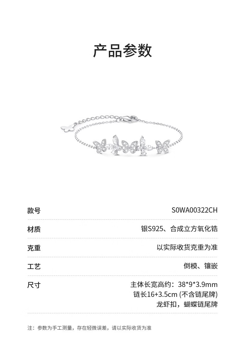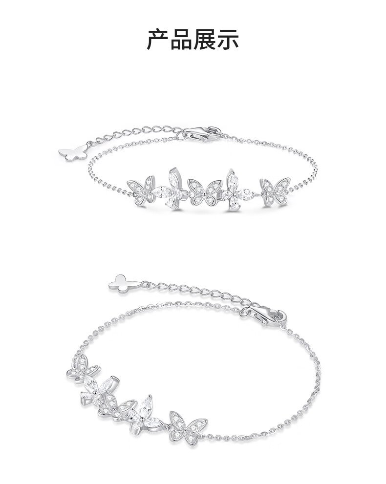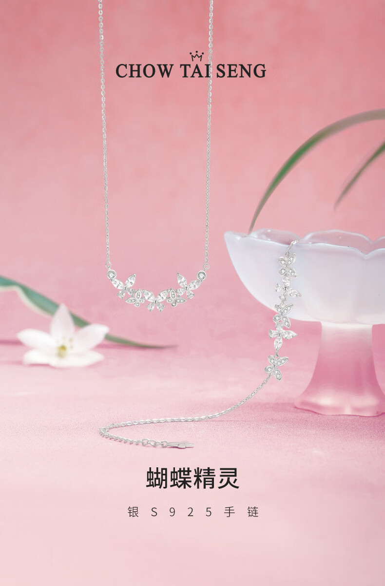 周大生紫藤花蝴蝶精灵手链女款纯银S925轻奢高级感手饰生日礼物送女友