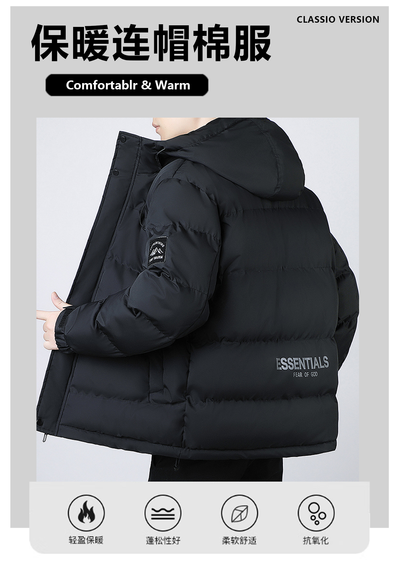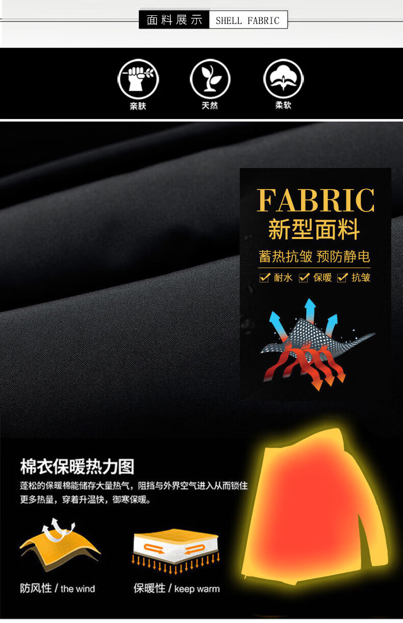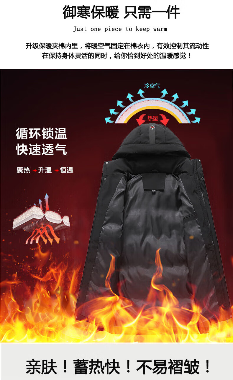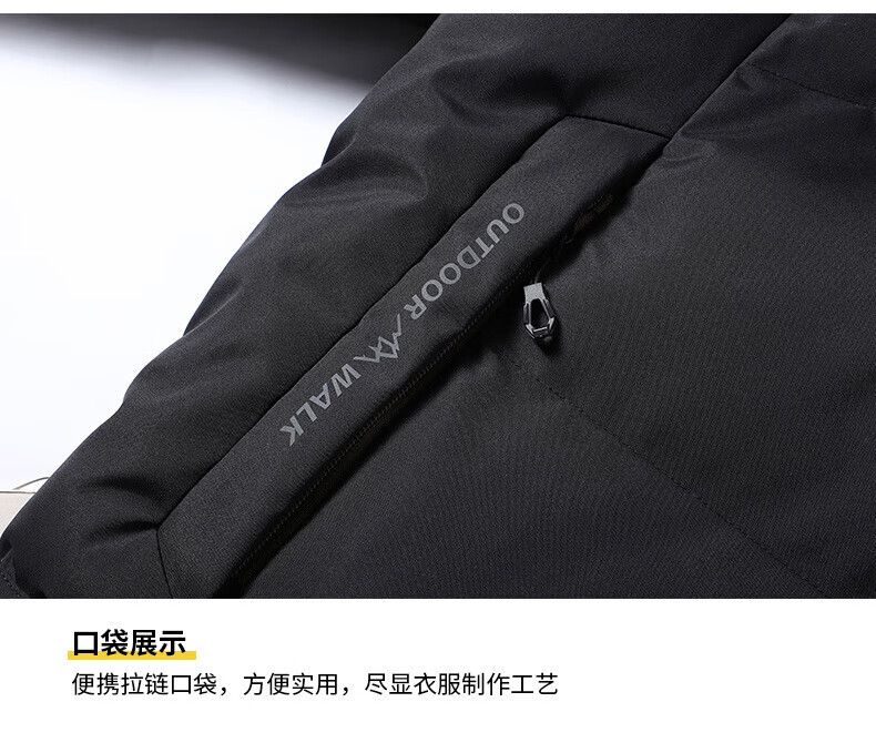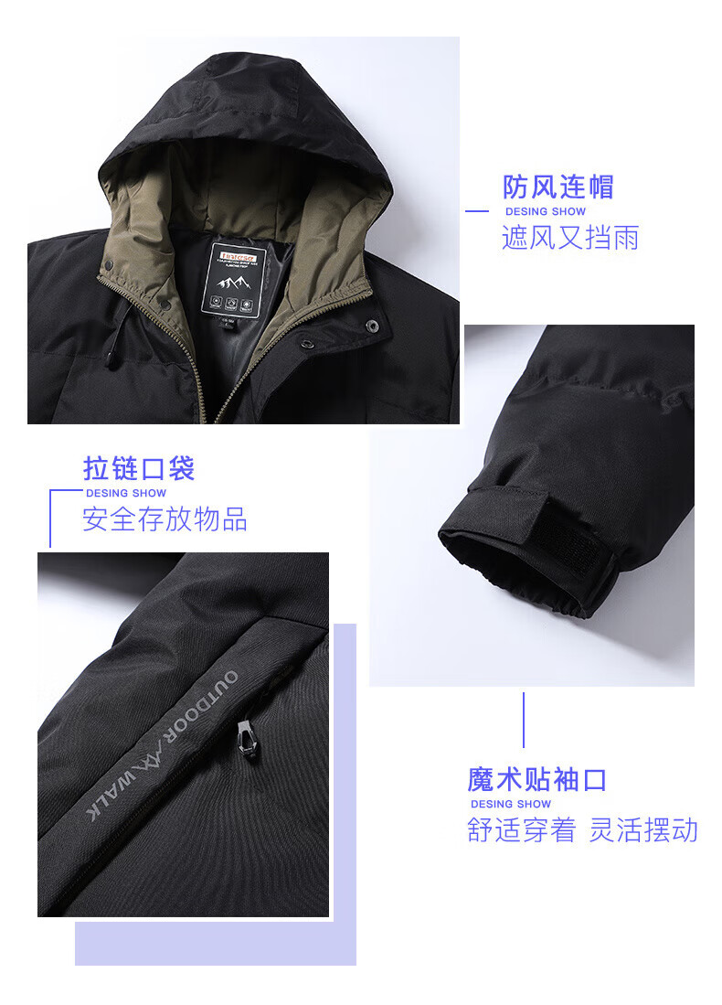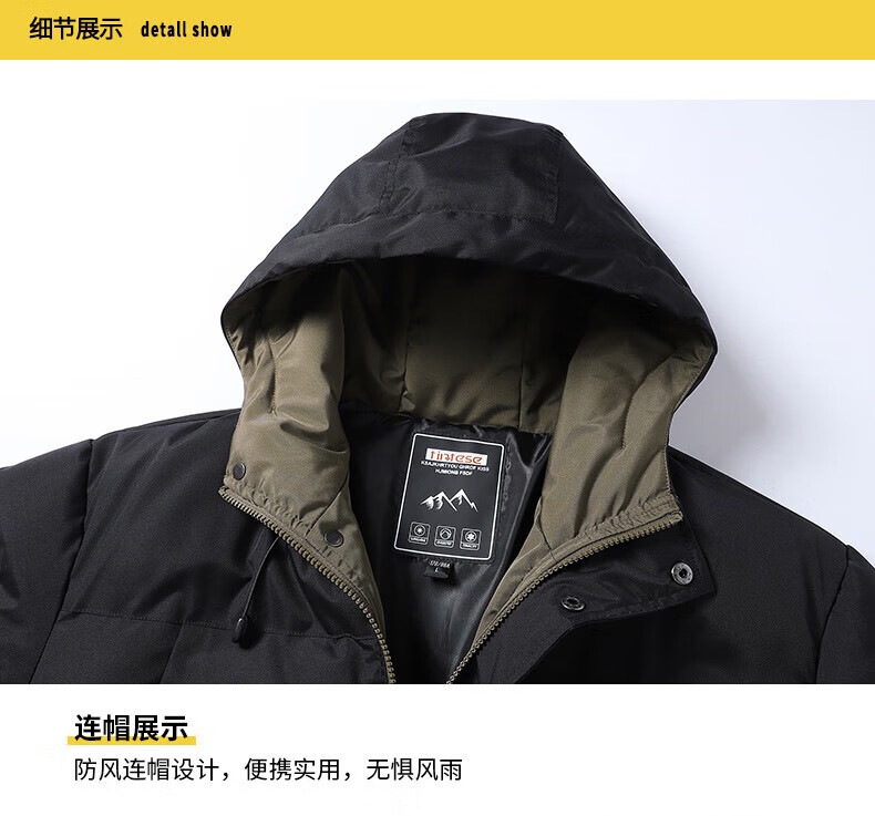 FEAE官方品牌棉服男冬季羽绒棉服休闲外套连帽加厚保暖宽松防寒棉袄 奢华黑-加厚款 商场同款 3XL 码 (建议190-210斤)