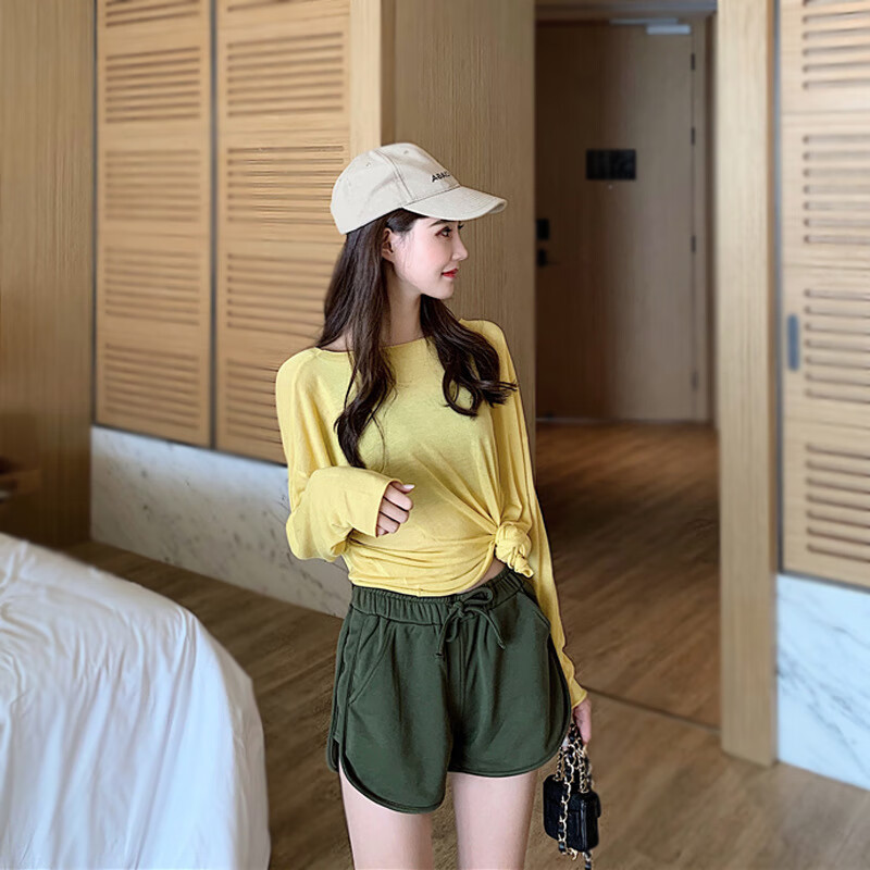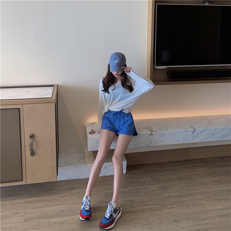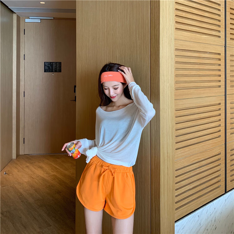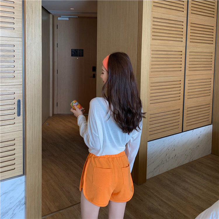 【精选好物】新款居家休闲高腰短裤包臀运动热裤直筒宽松裤子女外 白色 S