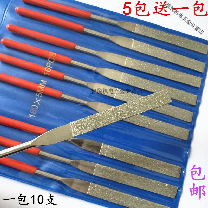 初啸金钢石锉刀180X5MM 金刚石整形锉 平板锉 什锦锉刀 玉器 模具打磨 尖平锉3*140(10支)