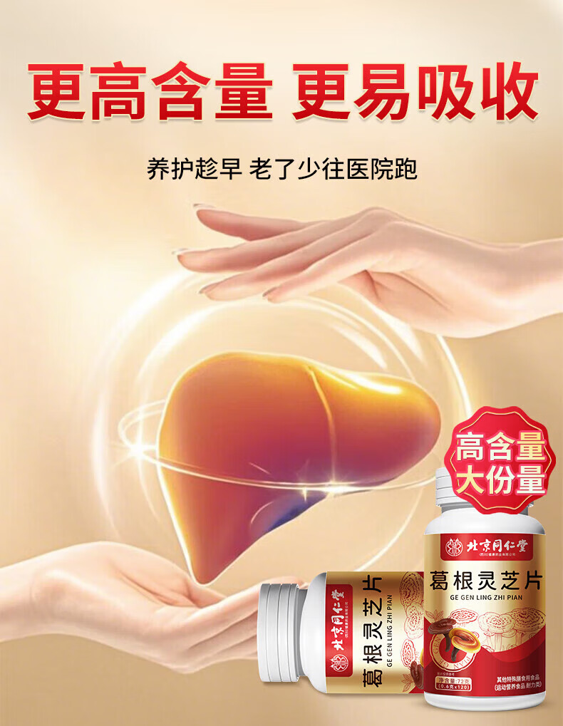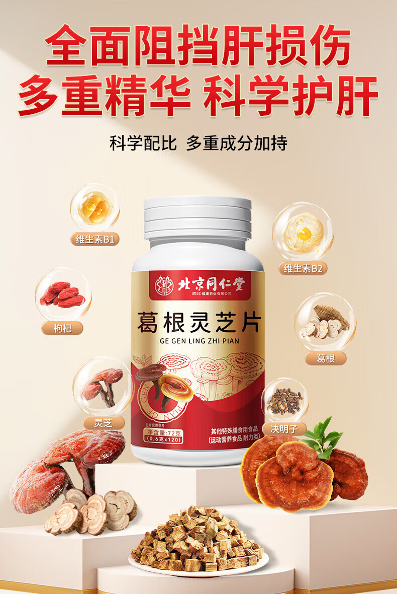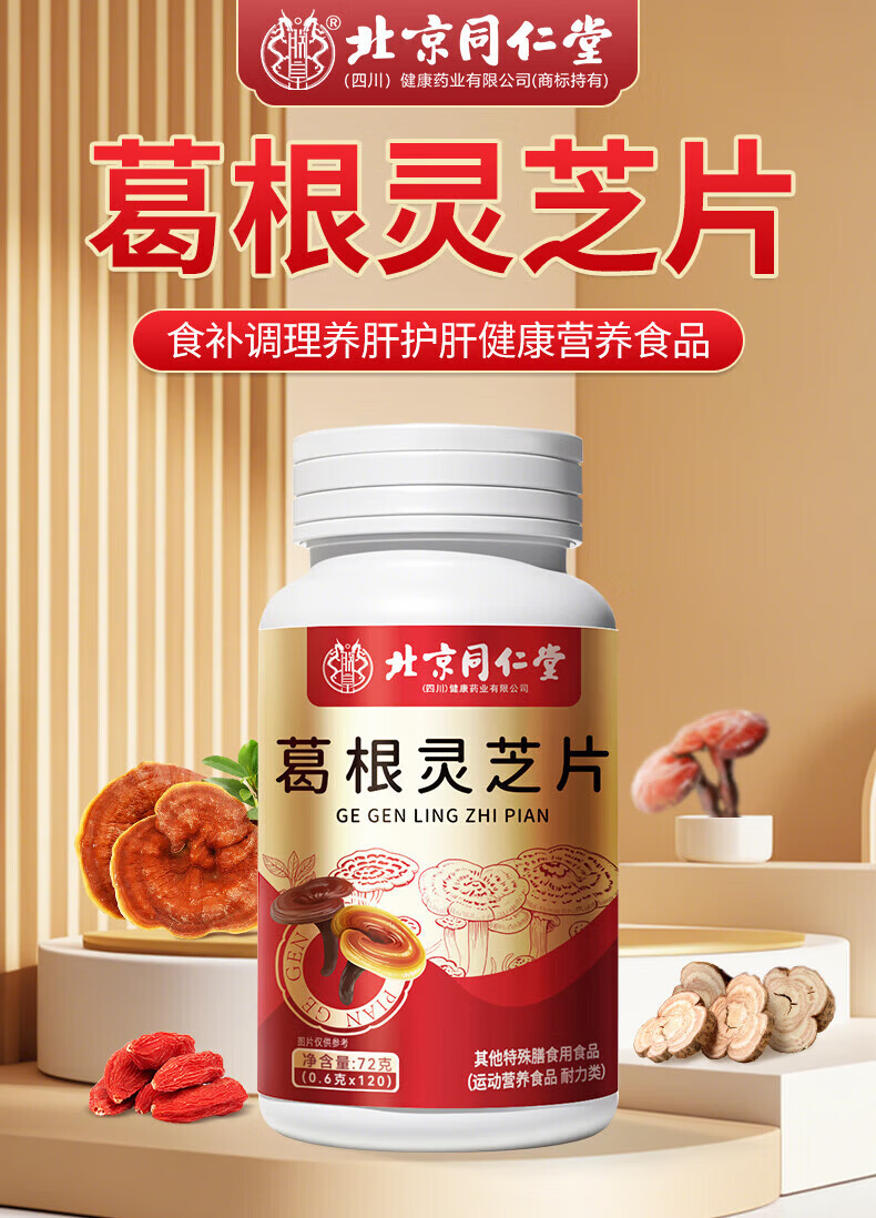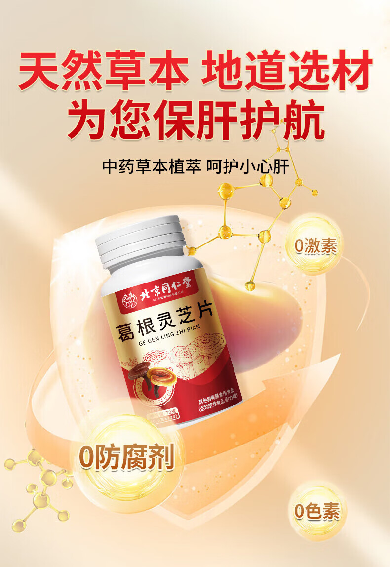 朕皇北京同仁堂葛根灵芝片养肝护肝片口苦口臭熬夜常备清肝调理 【2瓶分享装】 120粒*2瓶