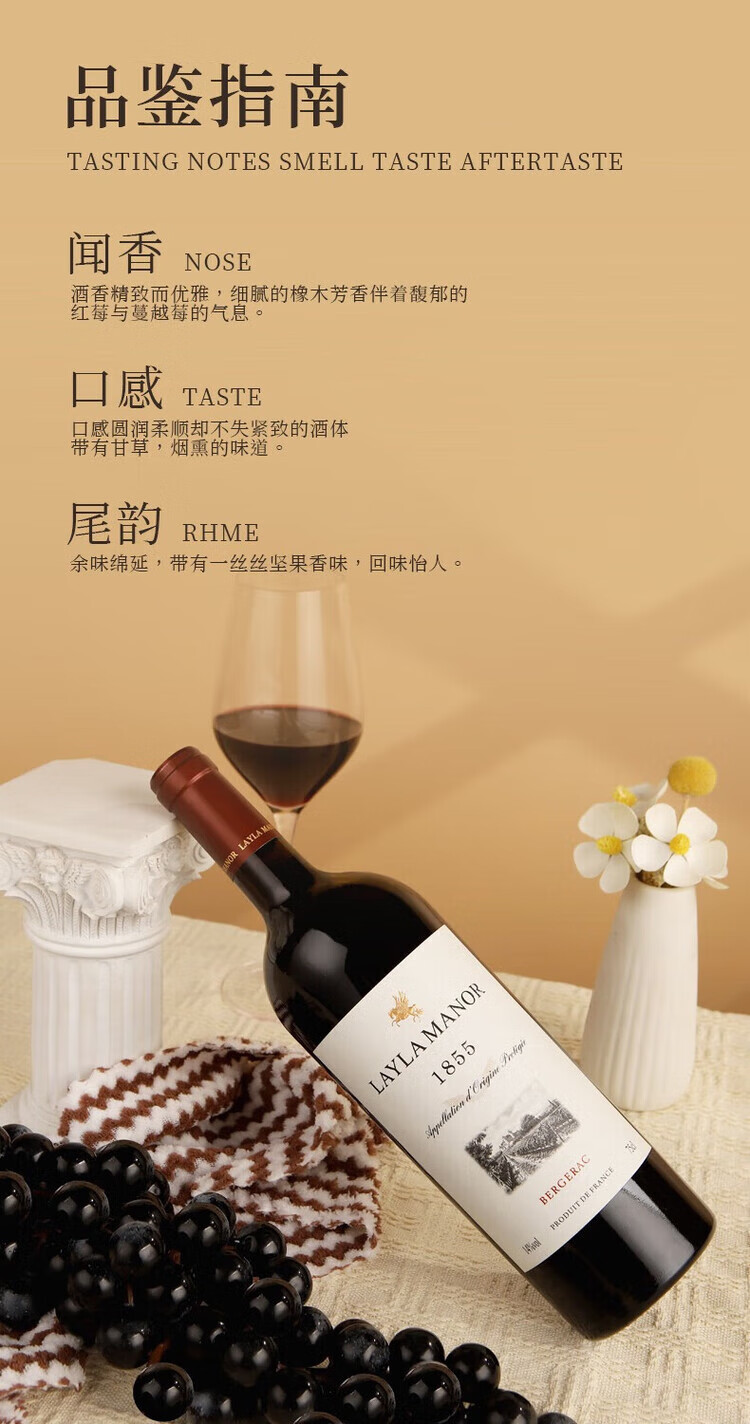 LAYLA【法国蕾拉】进口红酒14度AOP级老藤干红葡萄酒750mlX6支礼盒装