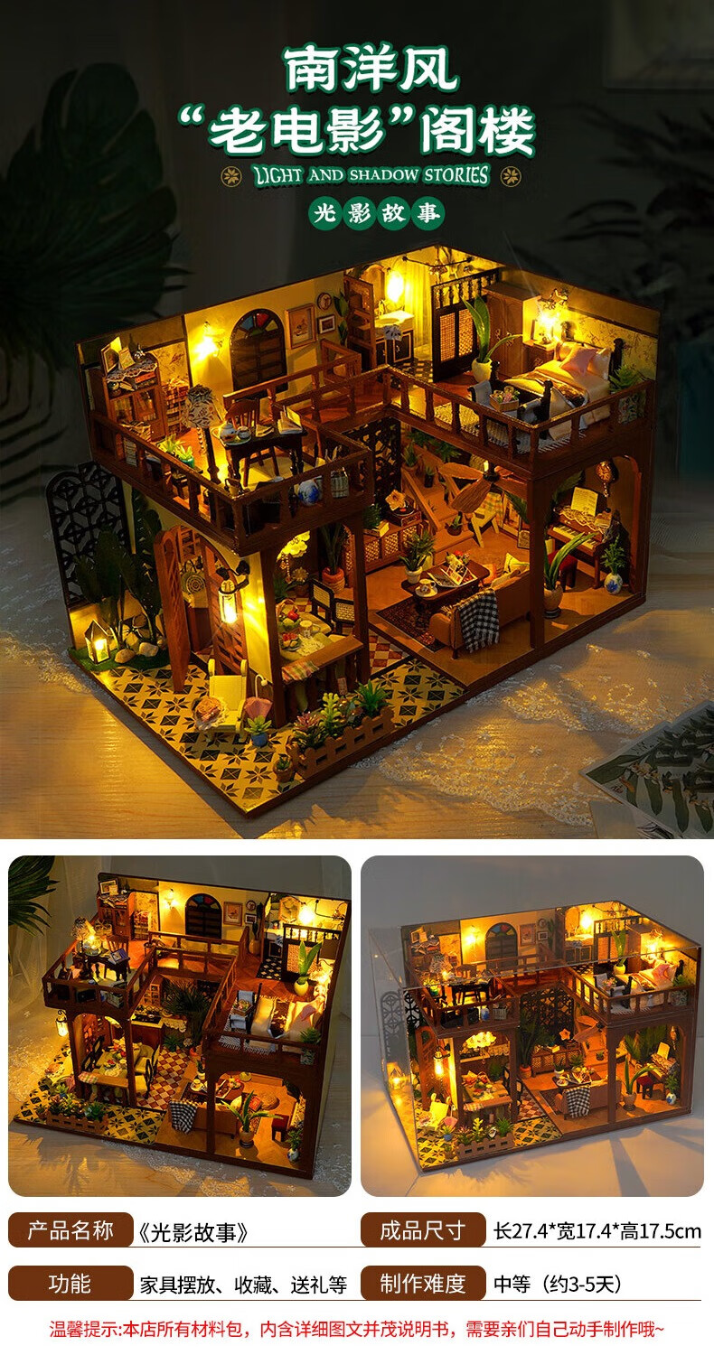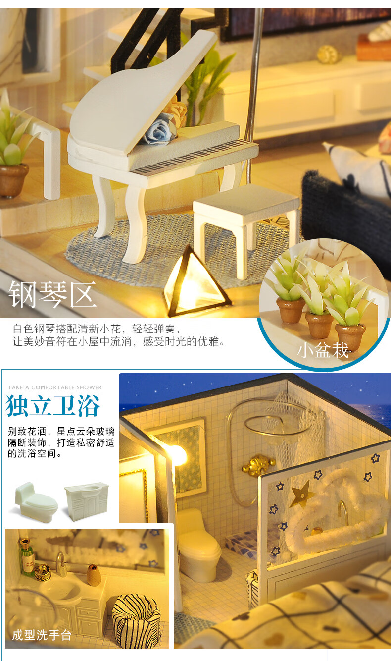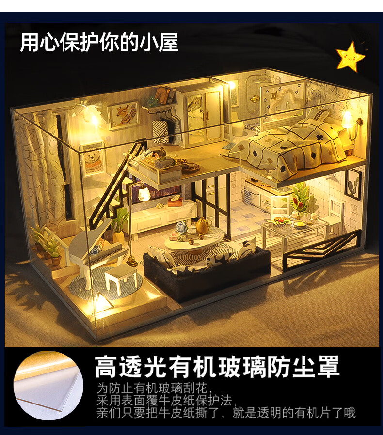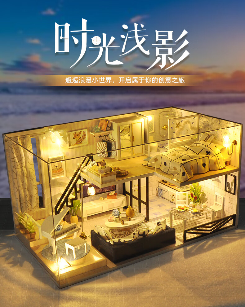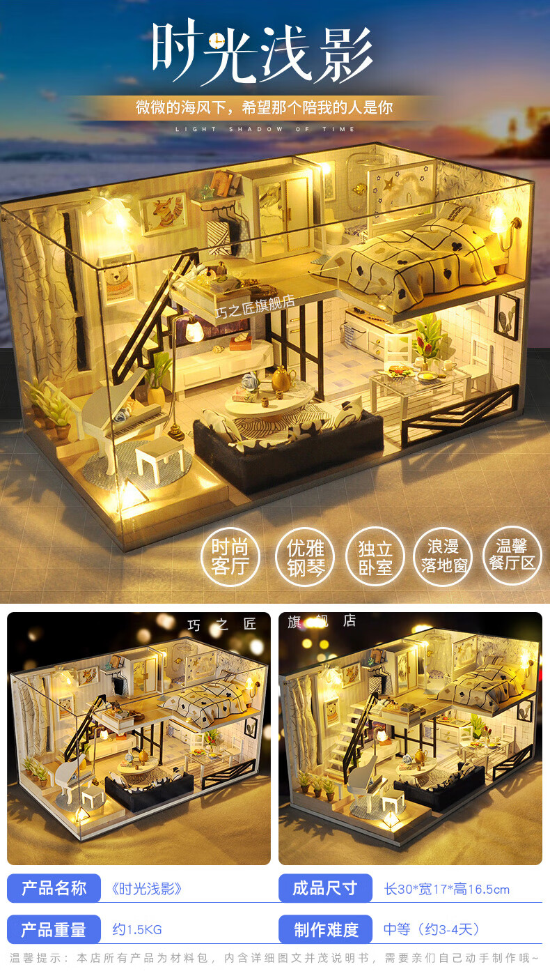 巧之匠diy小屋拼图立体3d模型积木拼装玩具微缩场景摆件手工生日礼物 【音乐款】时光浅影+工具+音乐+防尘罩