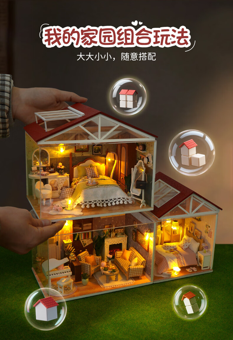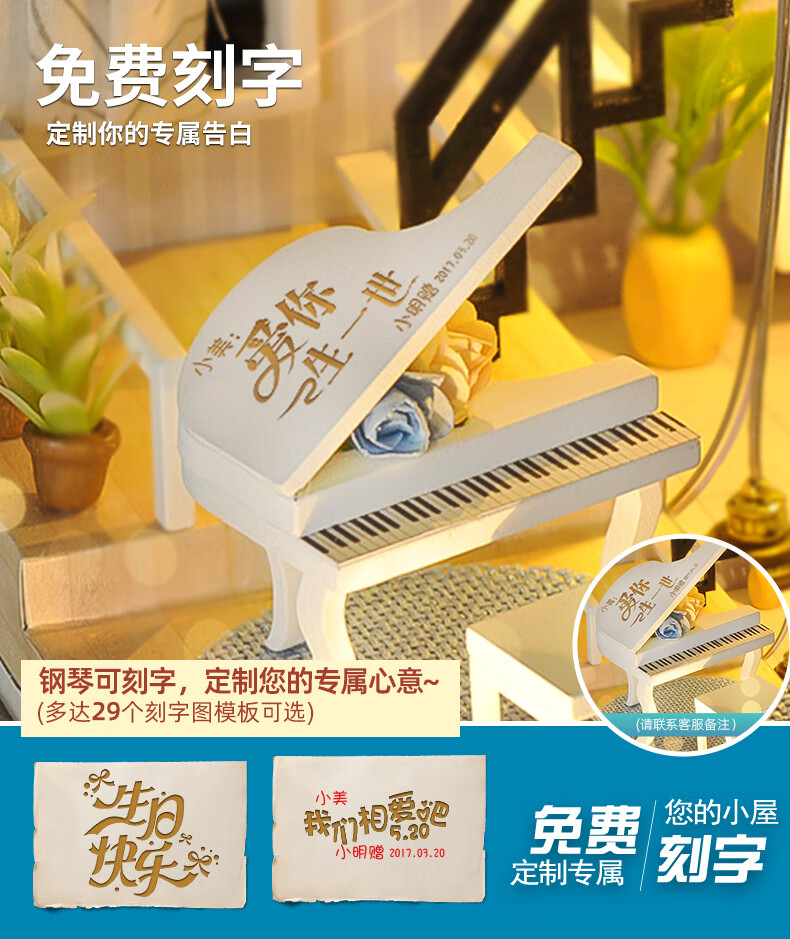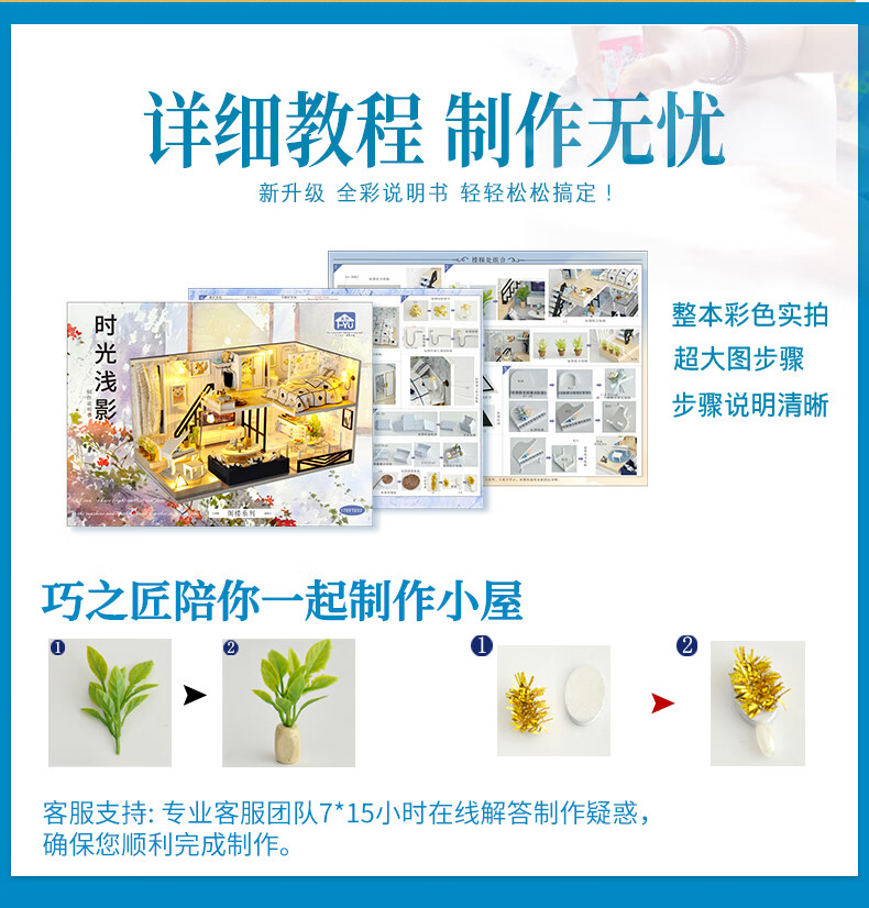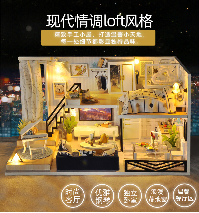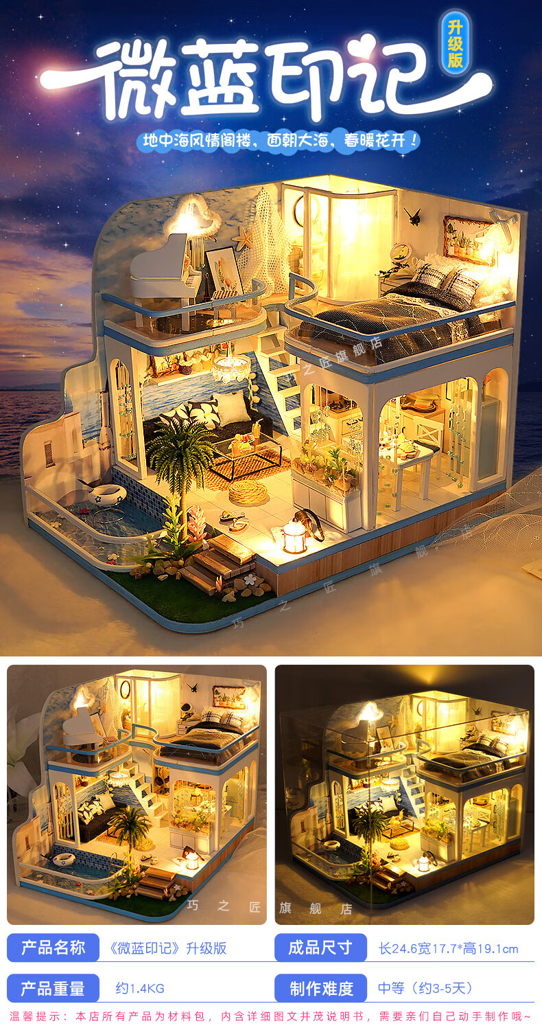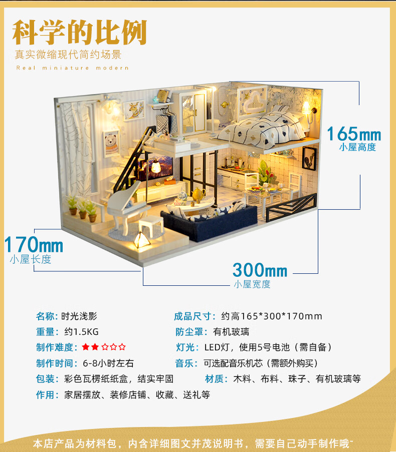巧之匠diy小屋拼图立体3d模型积木拼装玩具微缩场景摆件手工生日礼物 【音乐款】时光浅影+工具+音乐+防尘罩