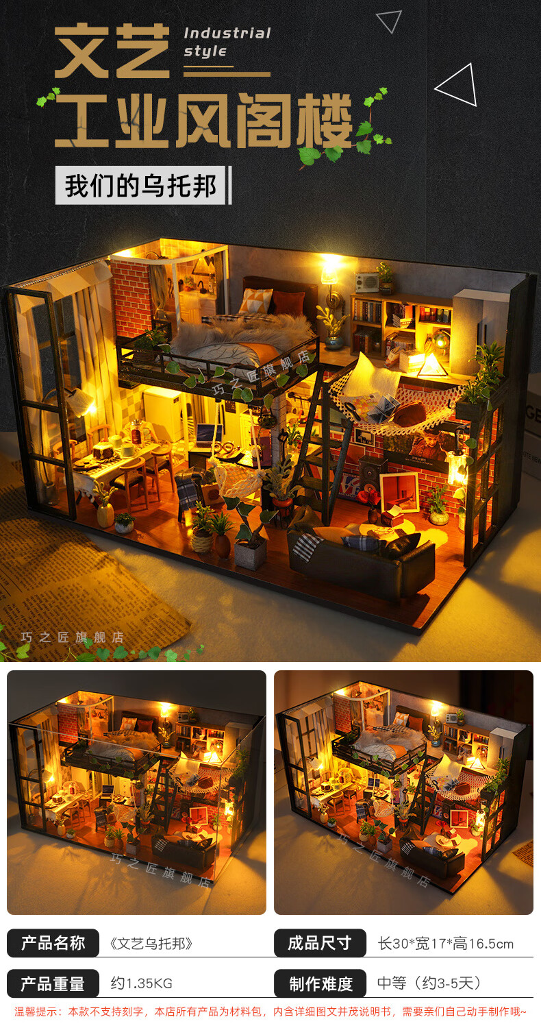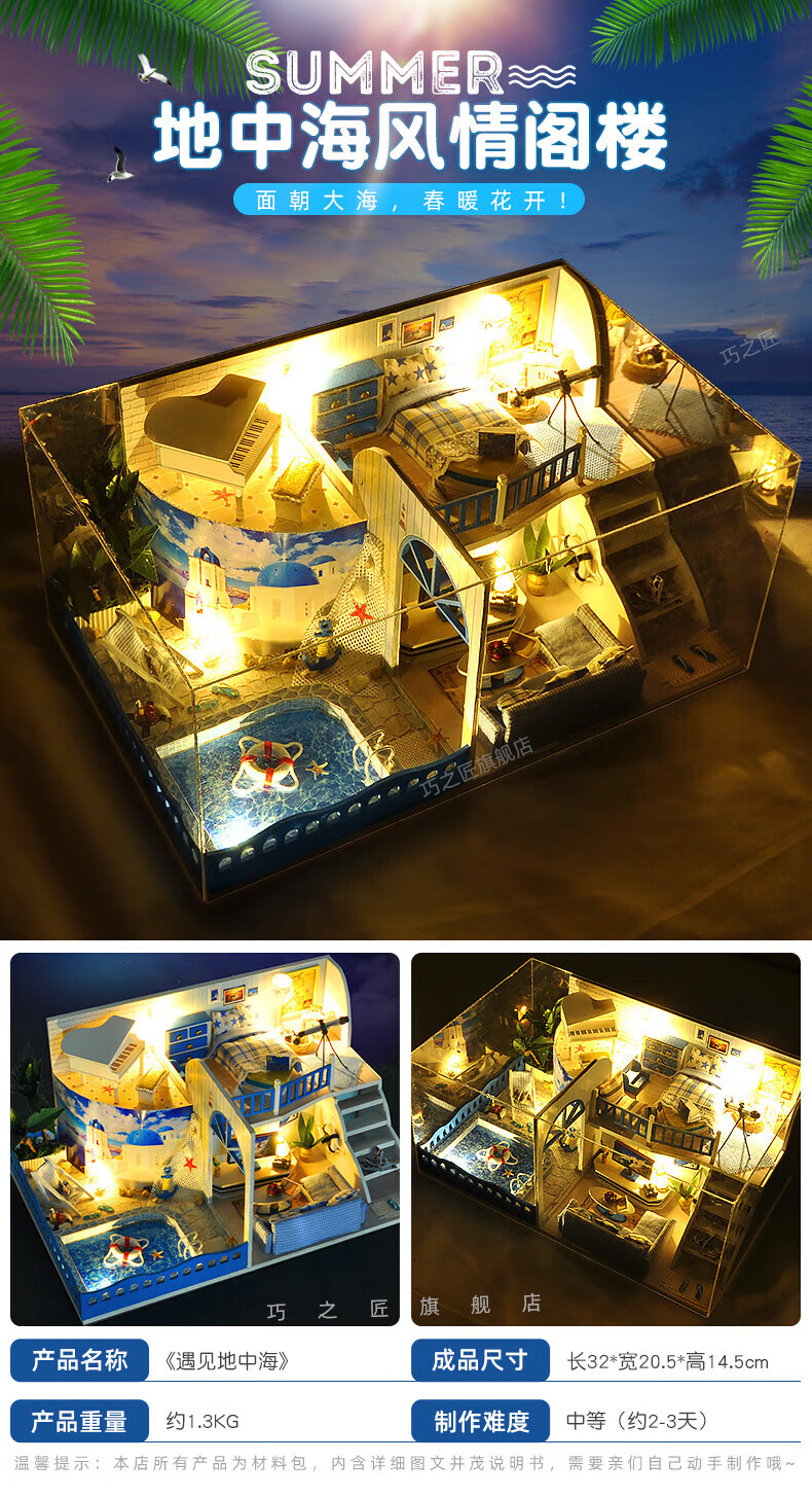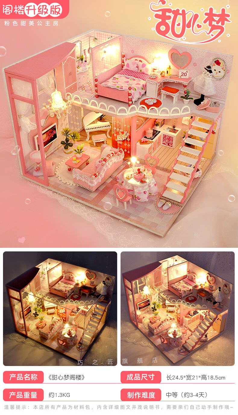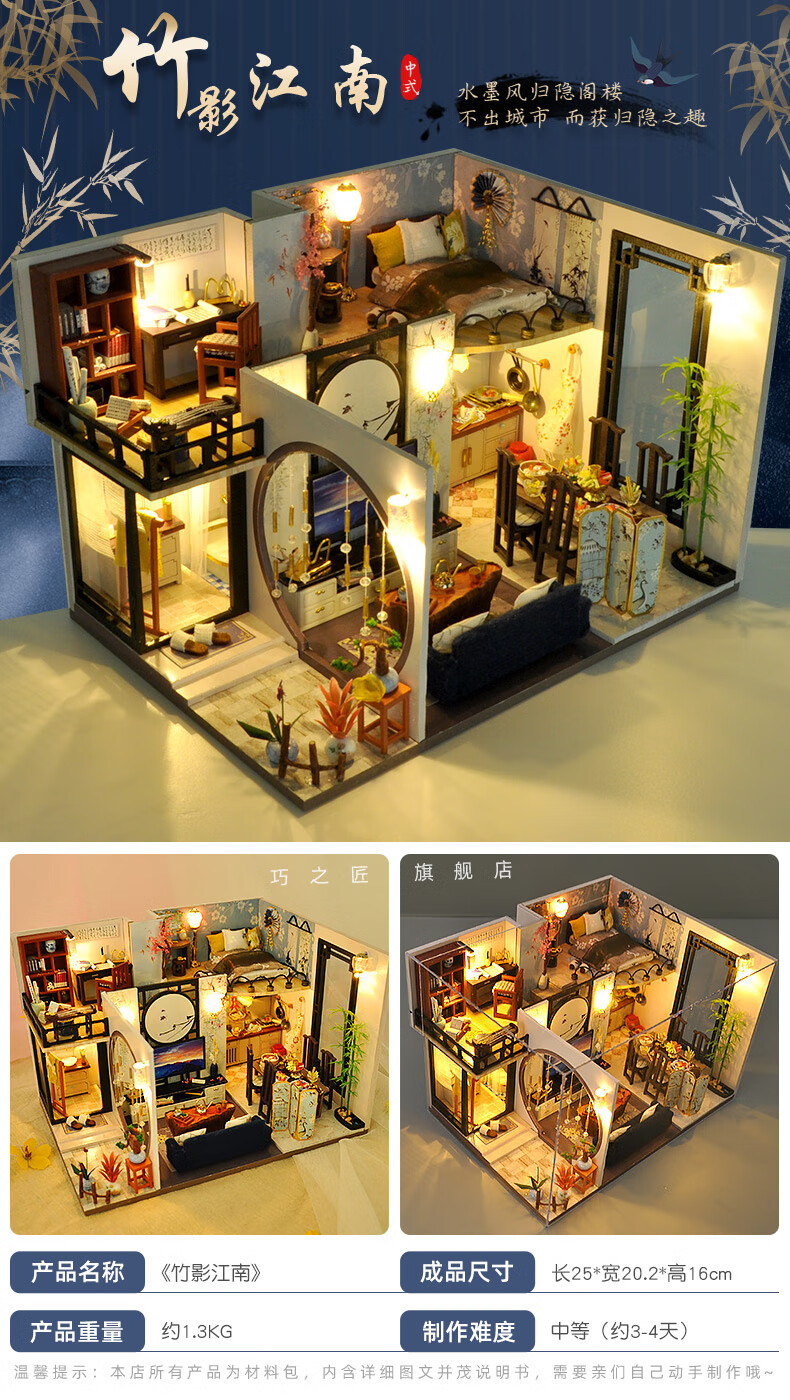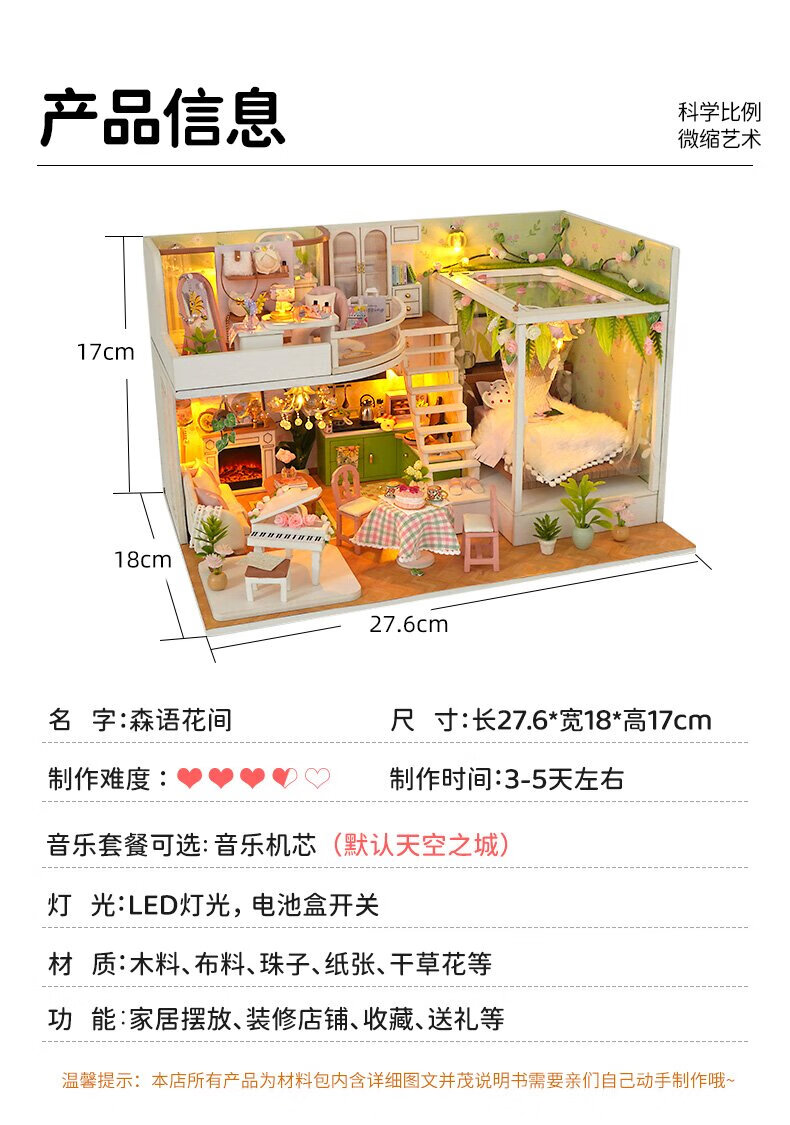 巧之匠diy小屋拼图立体3d模型积木拼装玩具微缩场景摆件手工生日礼物 【音乐款】时光浅影+工具+音乐+防尘罩