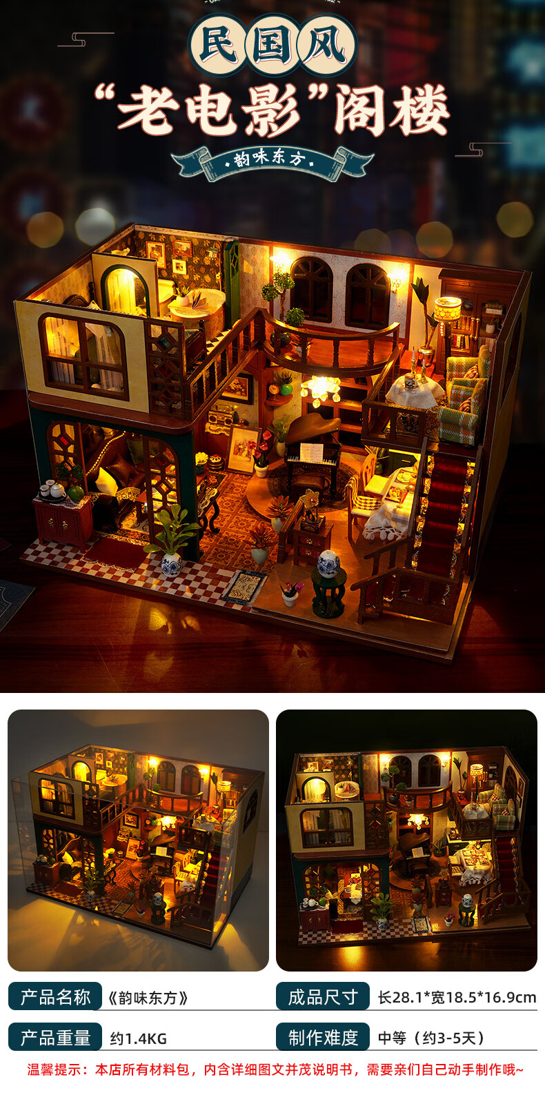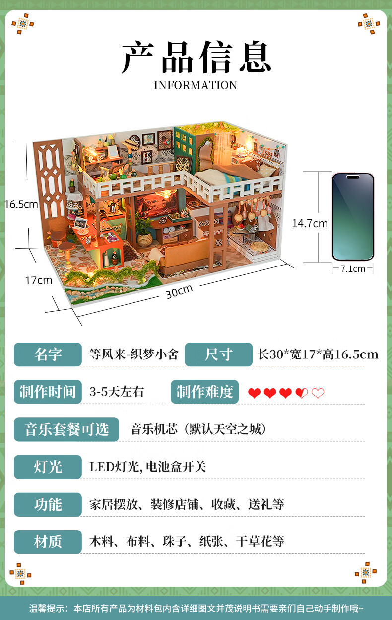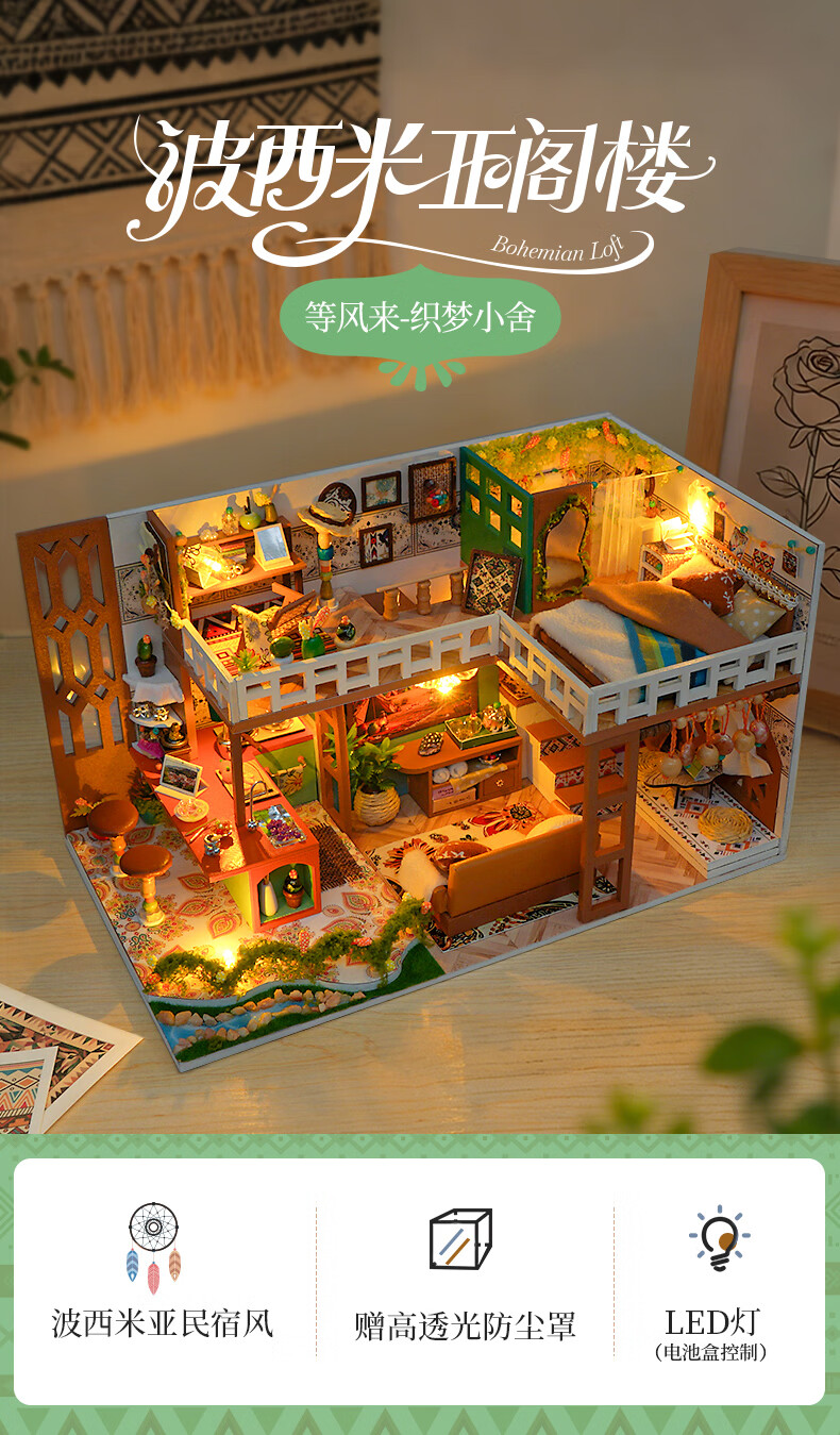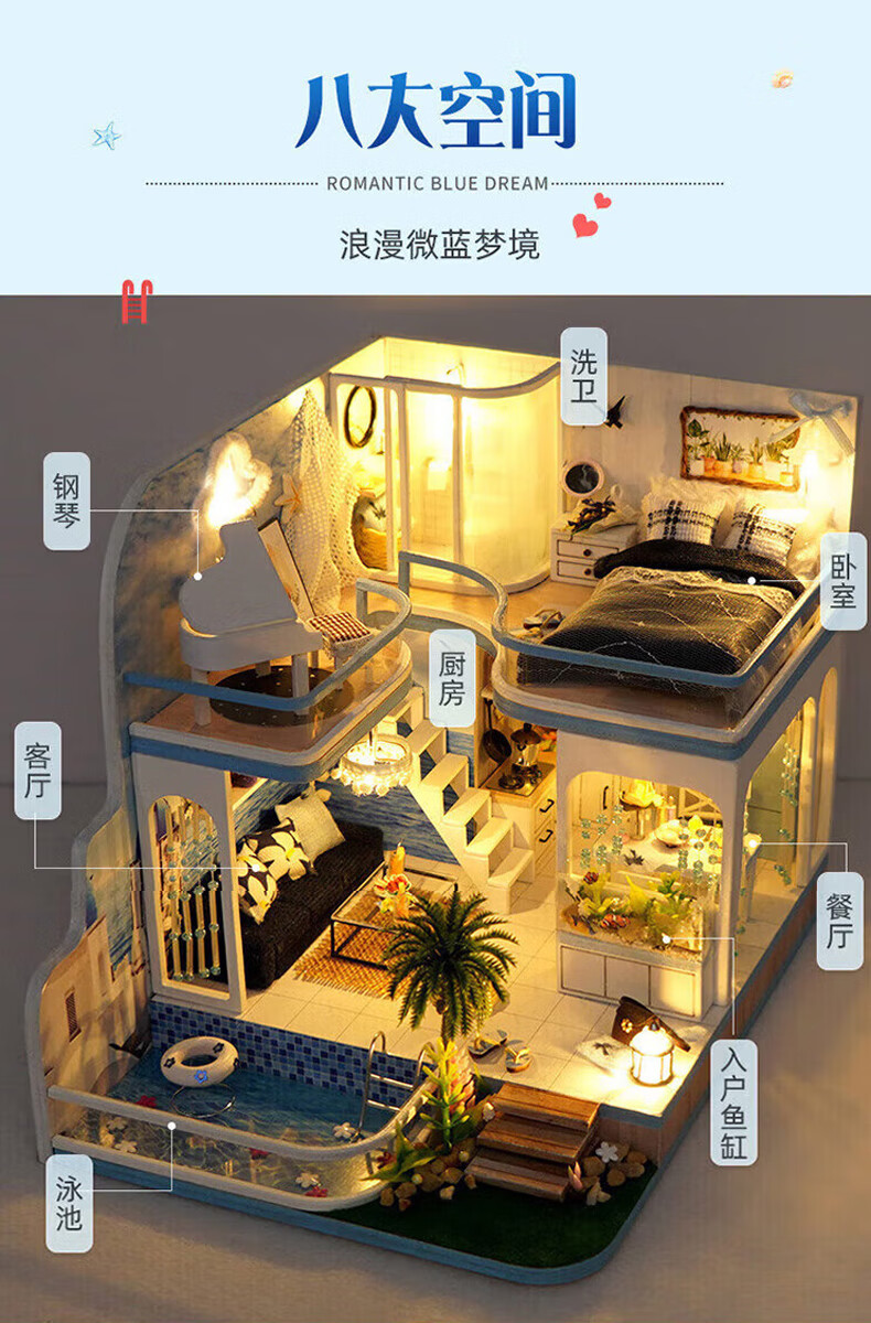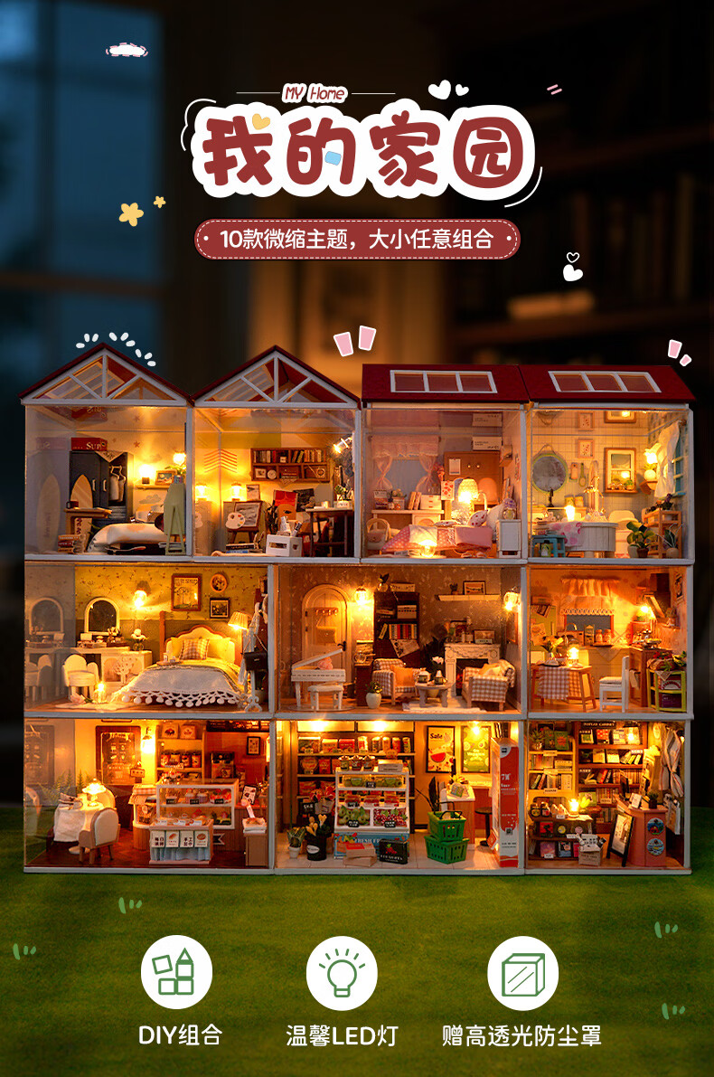 巧之匠diy小屋拼图立体3d模型积木拼装玩具微缩场景摆件手工生日礼物 【音乐款】时光浅影+工具+音乐+防尘罩