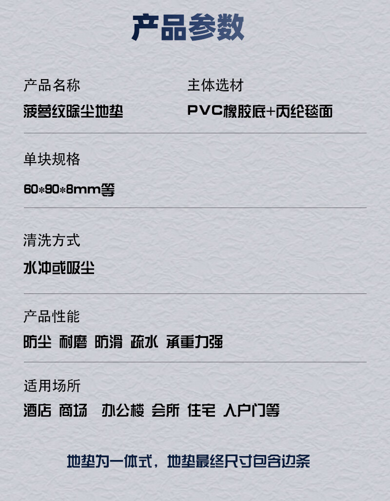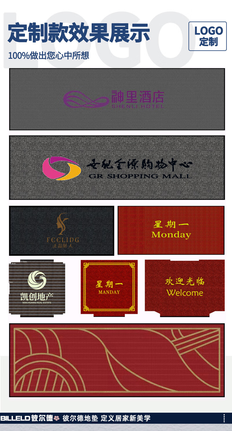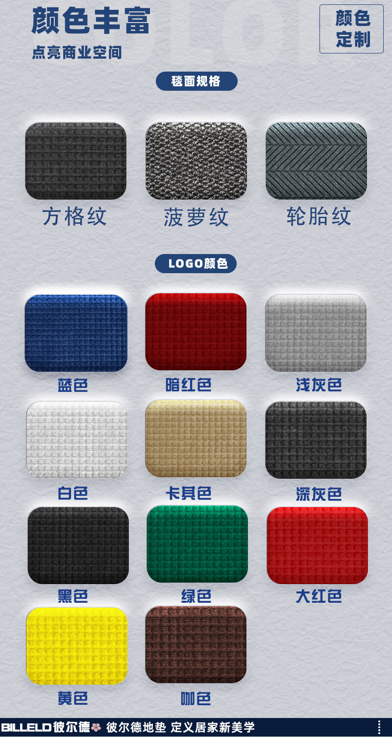 彼尔德高级入户门口地垫门外大门口高端脚垫可裁剪防滑可冲洗除尘室外 方格蓝色【支持定制 任意裁剪】 60cm*120cm 1件数 【加厚收边】