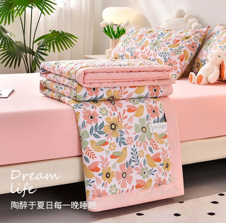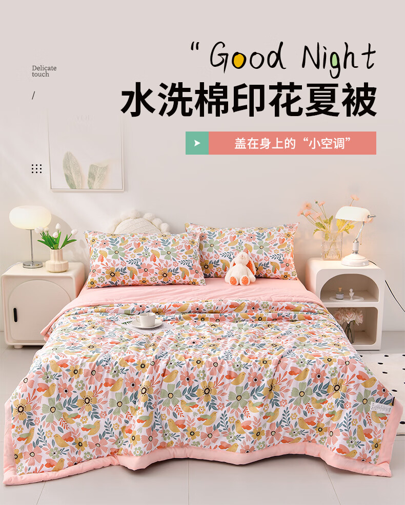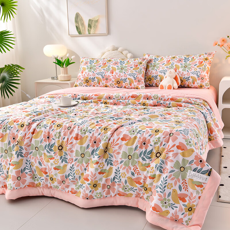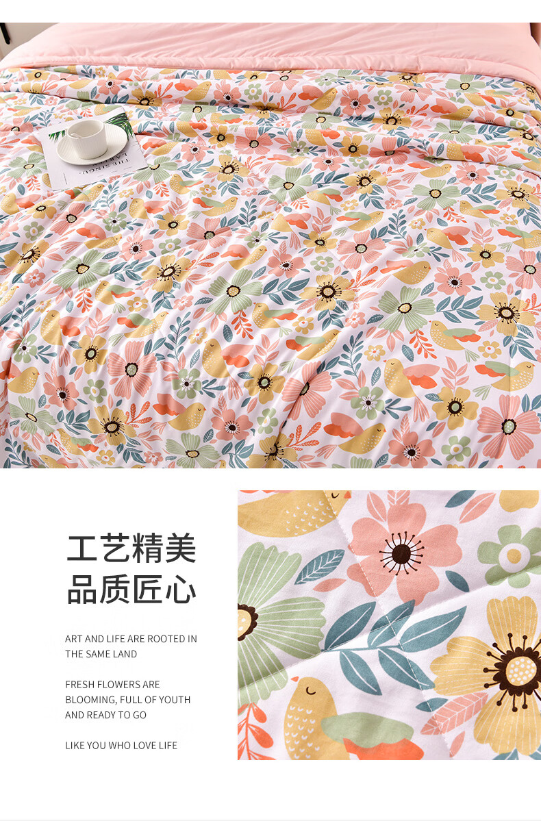 雅鹿软糯水洗棉夏被学生夏天凉被子 莓丽人生 150*200单夏被