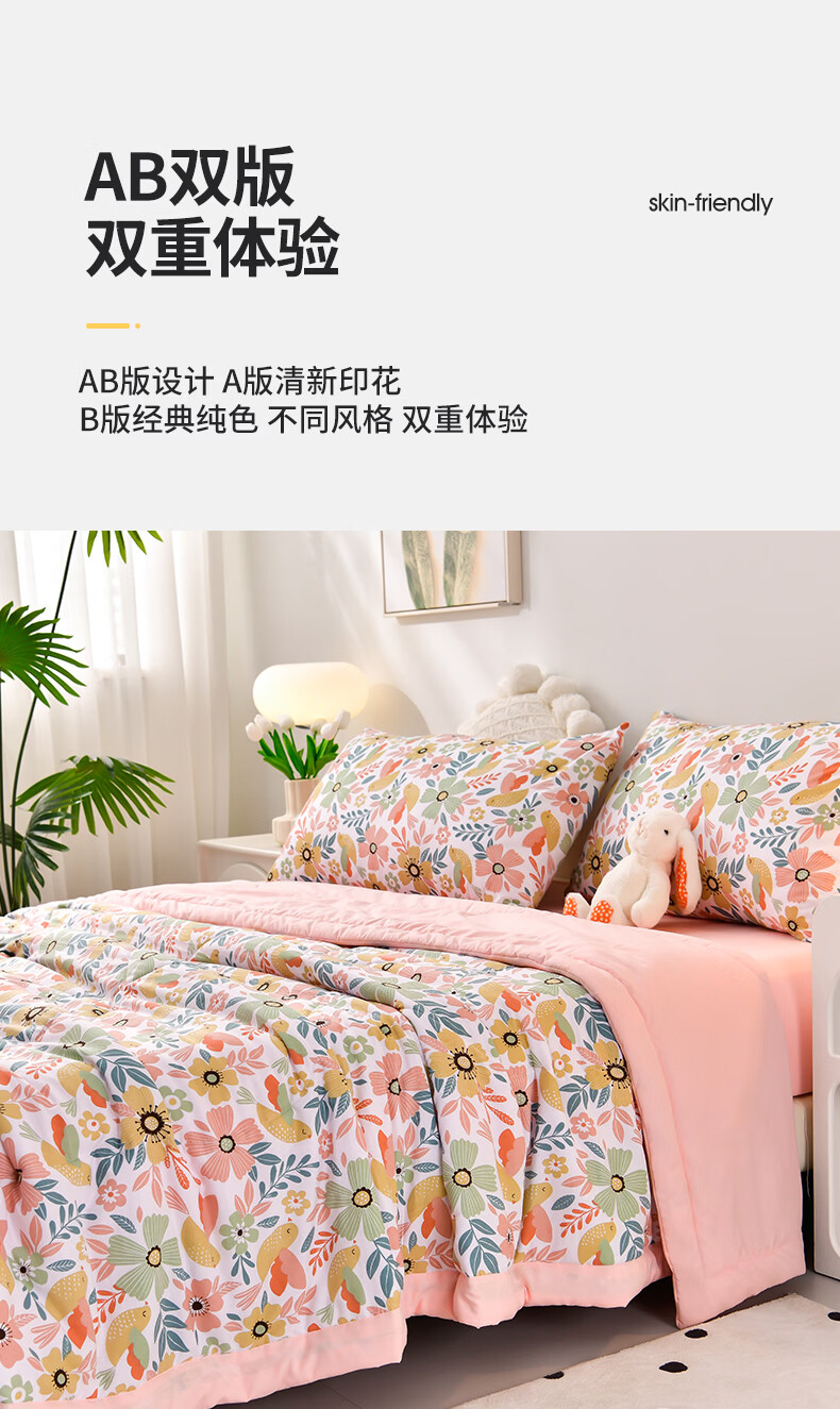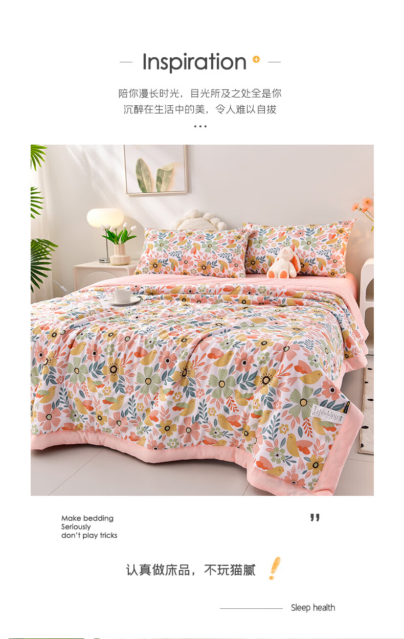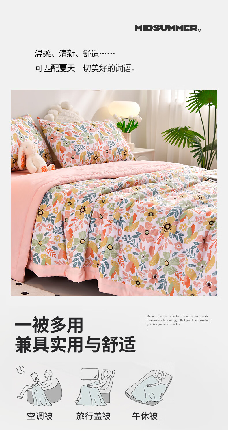 雅鹿软糯水洗棉夏被学生夏天凉被子 莓丽人生 150*200单夏被