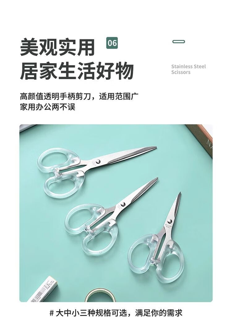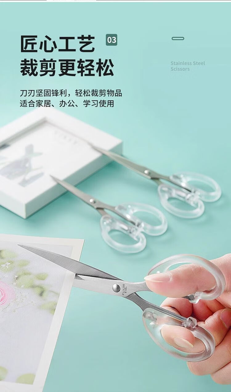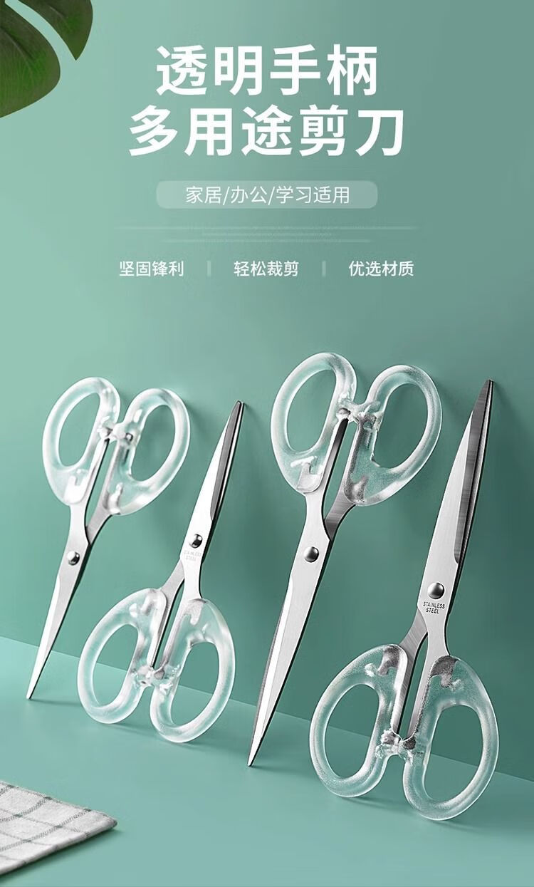 【甄选】文具剪刀办公家用厨房缝纫剪纸刀大中小号不锈钢手工透明 透明磨砂剪刀丨高颜值丨超耐用 【大号1把】