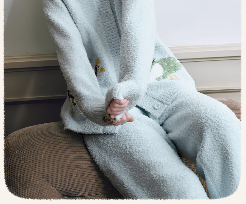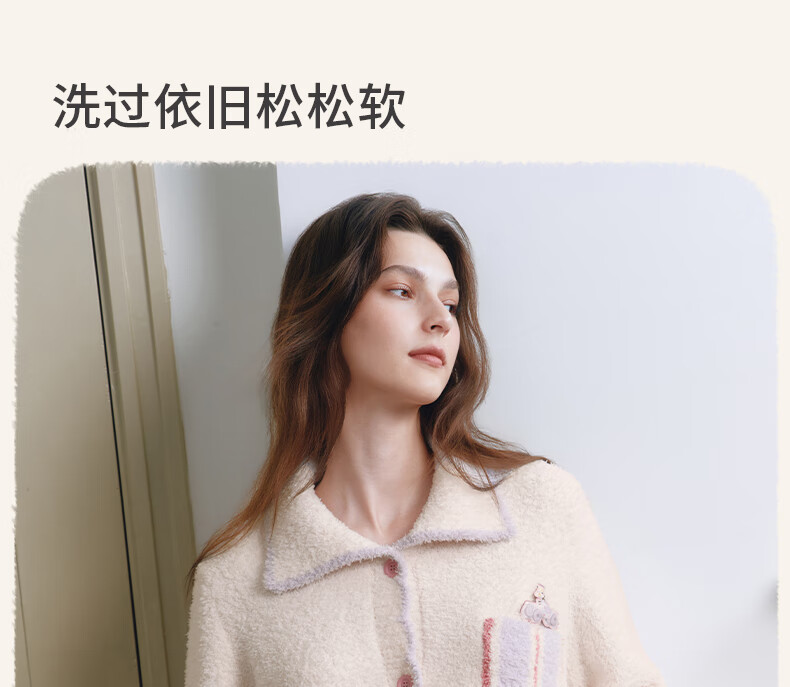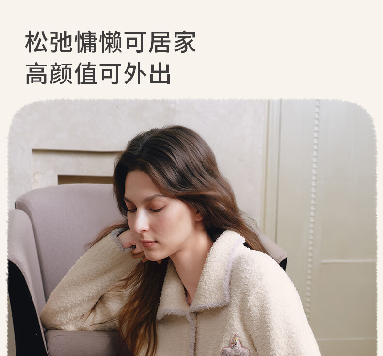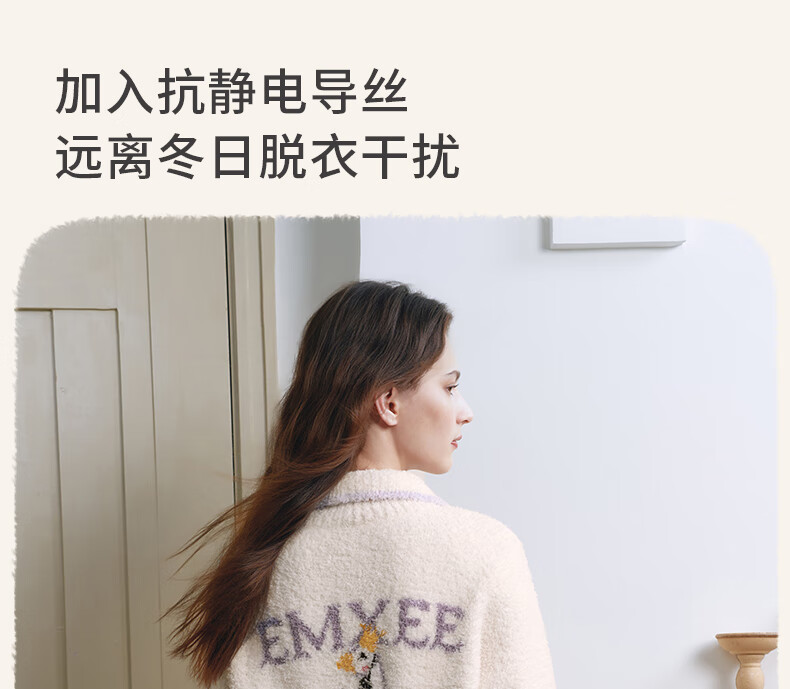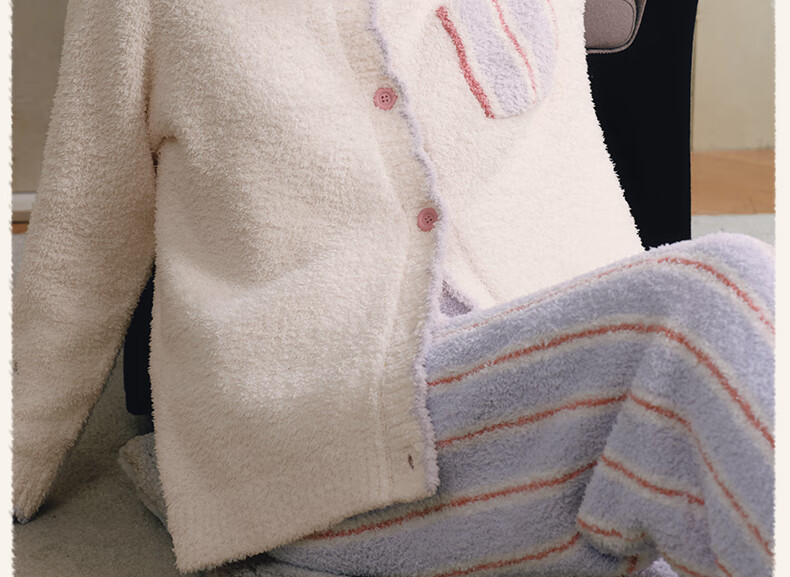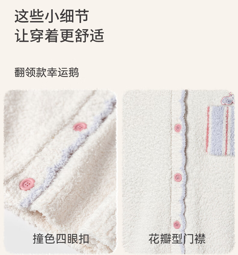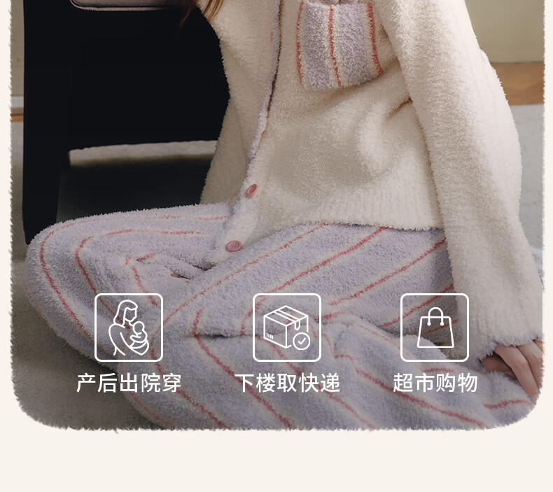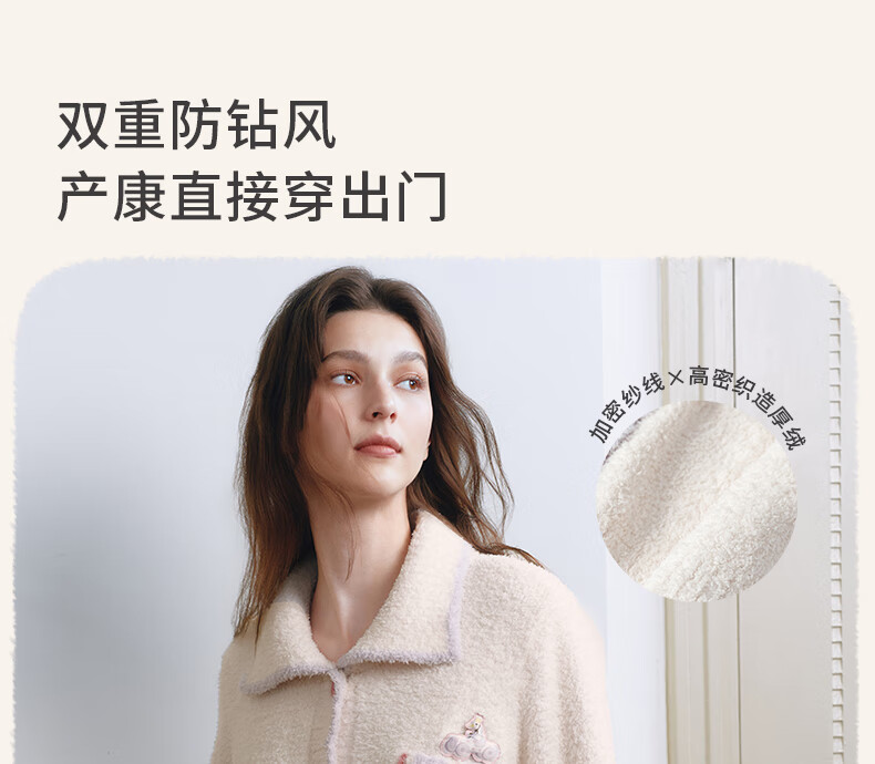 嫚熙(EMXEE)新品幸运鹅秋冬牛油果半边绒月子服加绒产妇哺乳孕妇睡衣家居服 可可熊-燕麦奶(有调节带) L