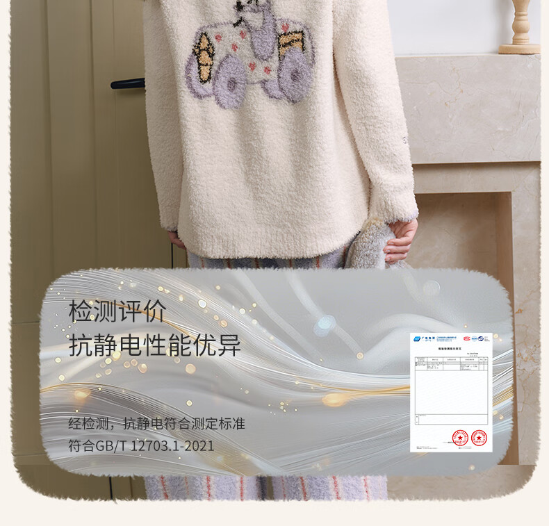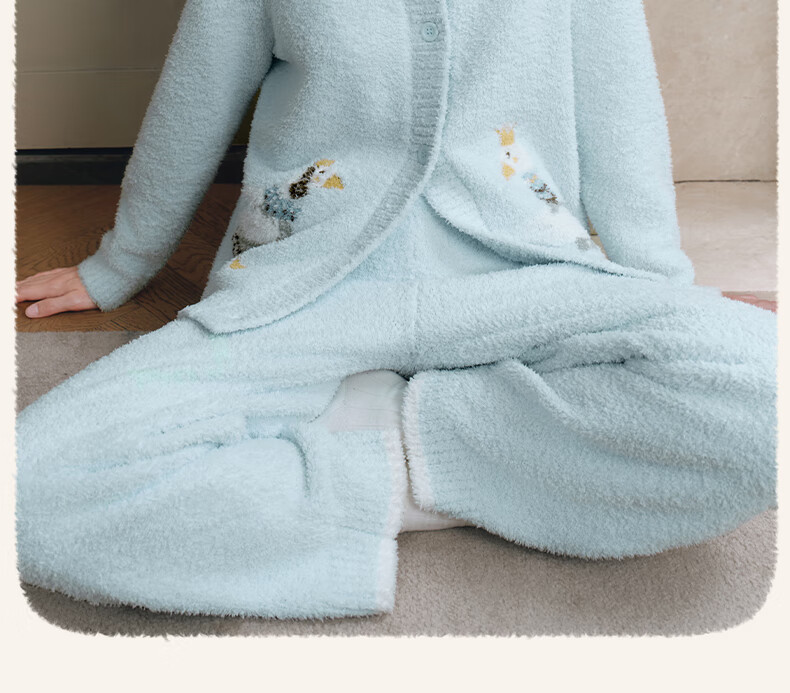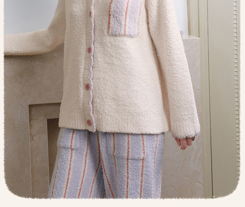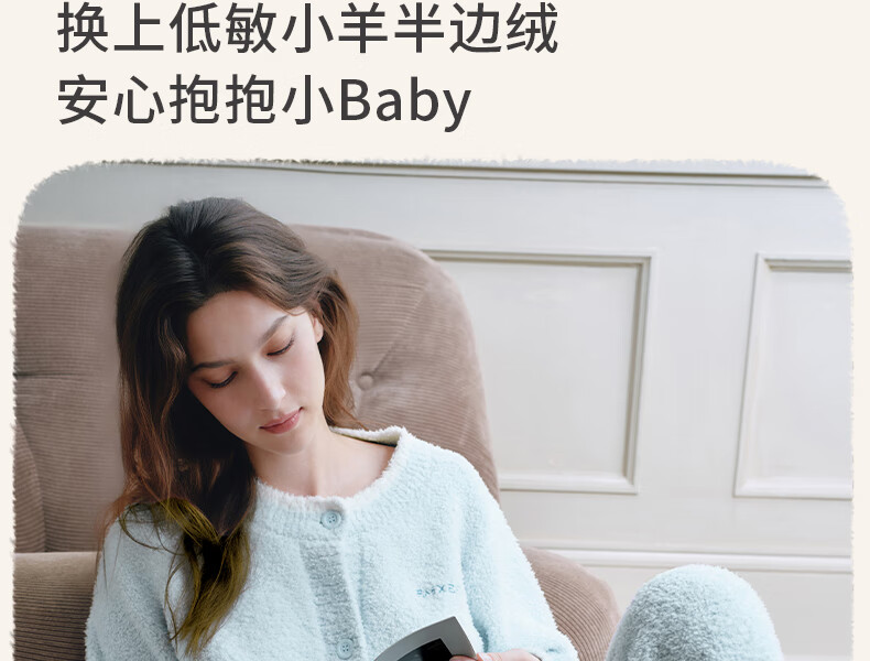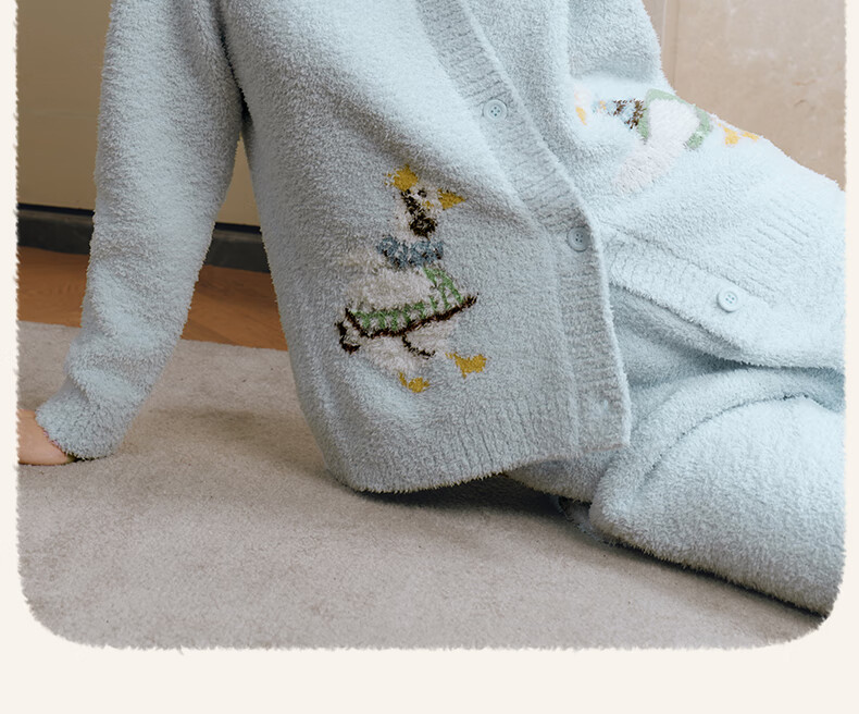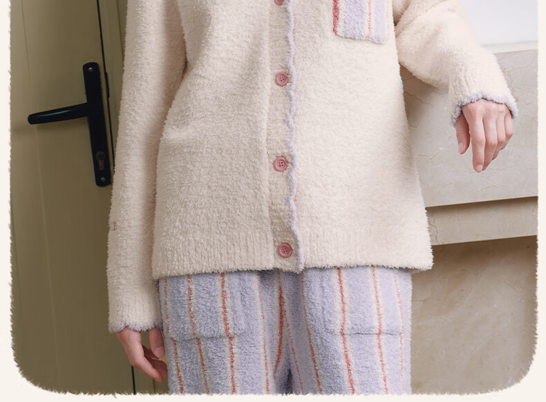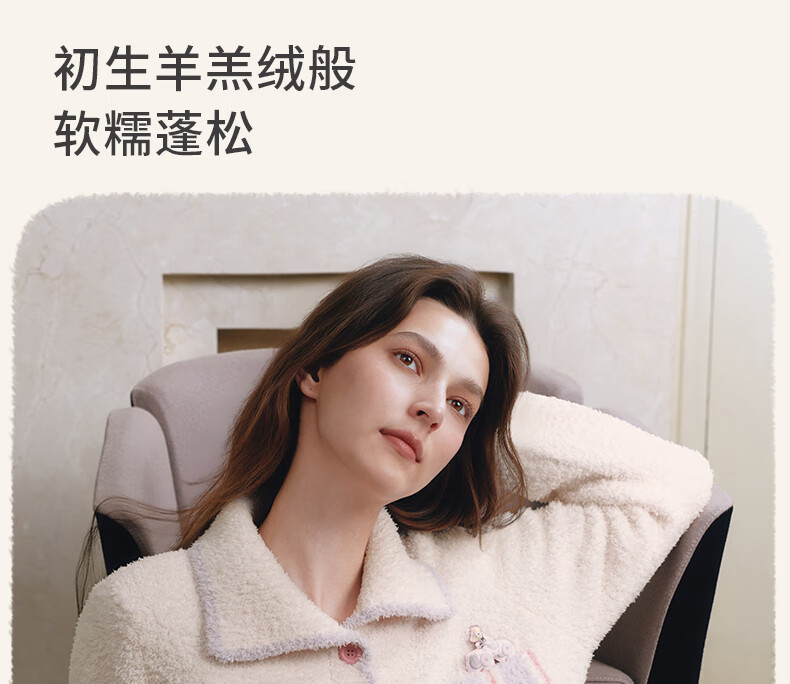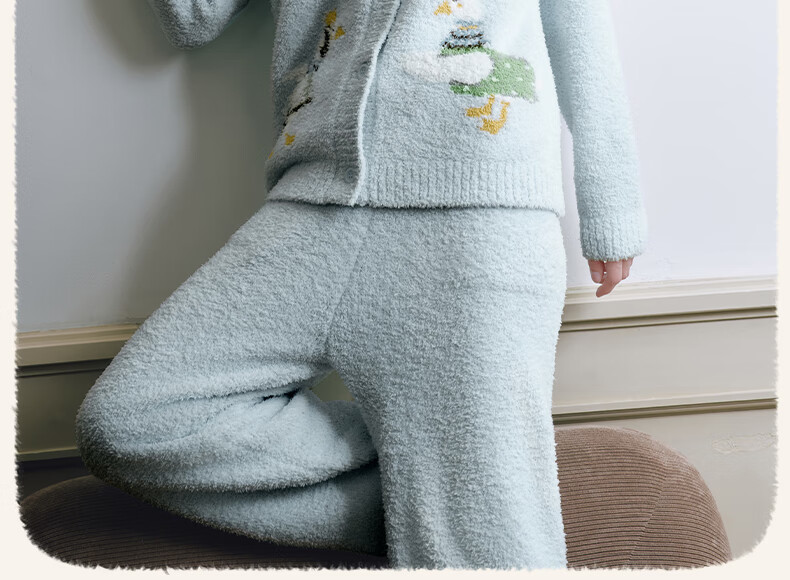 嫚熙(EMXEE)新品幸运鹅秋冬牛油果半边绒月子服加绒产妇哺乳孕妇睡衣家居服 可可熊-燕麦奶(有调节带) L