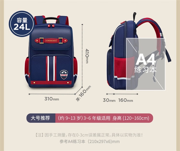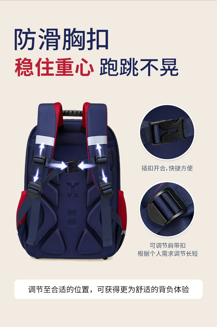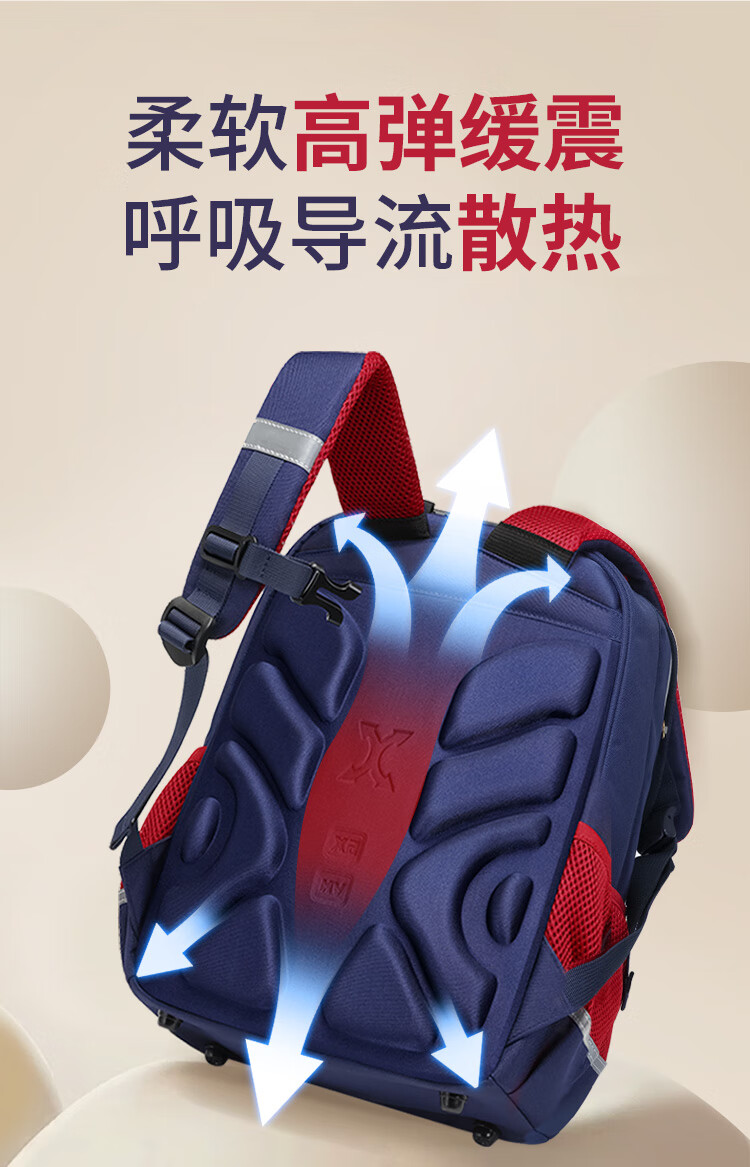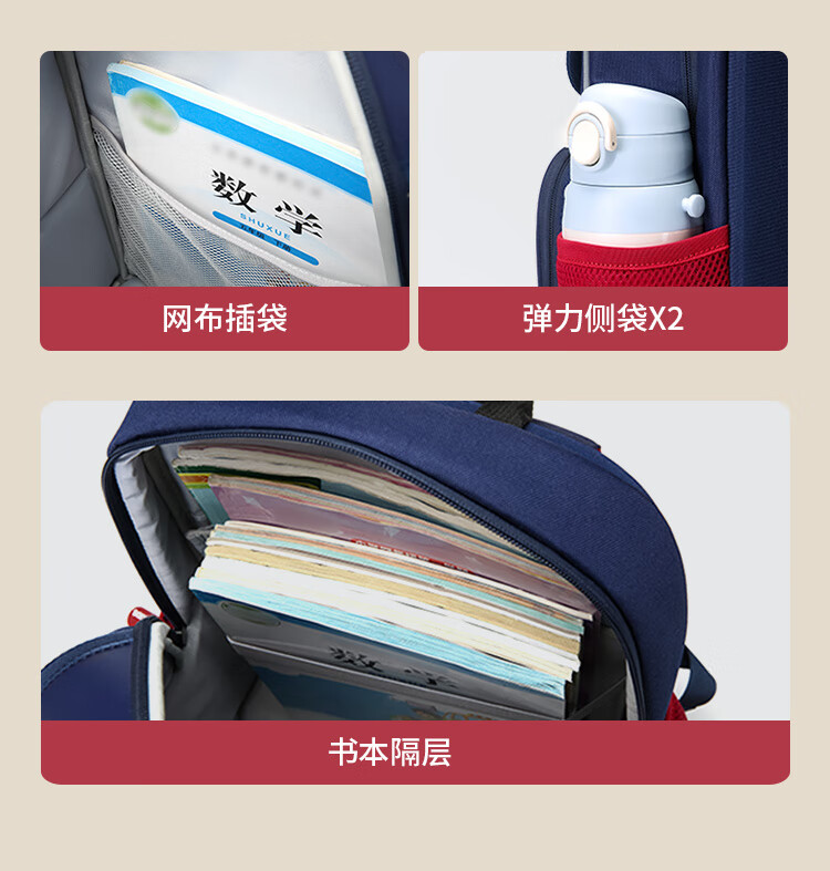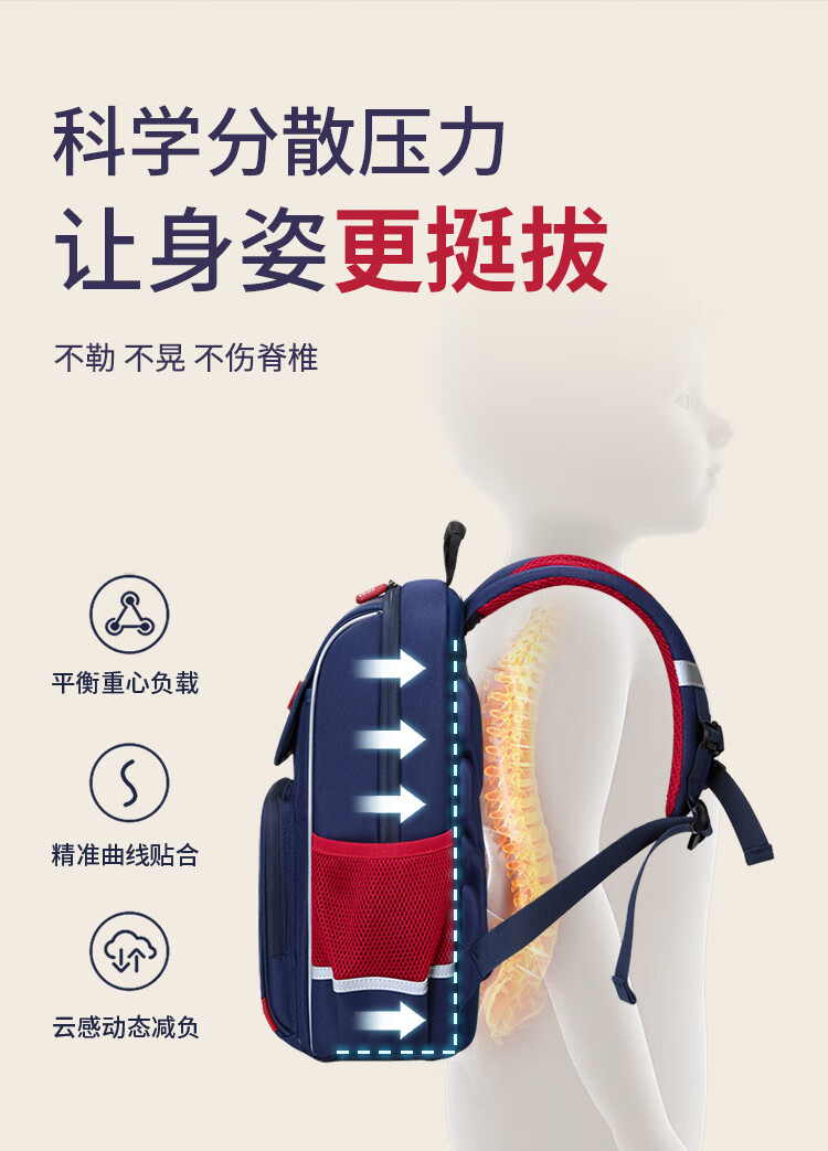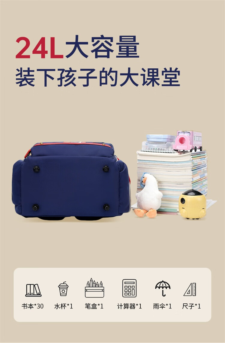 卡拉羊小学生1-6年级防下坠减负风琴书包大容量高颜值双肩包儿童书包 【精灵】藏青 【容量20L】身高135cm以上