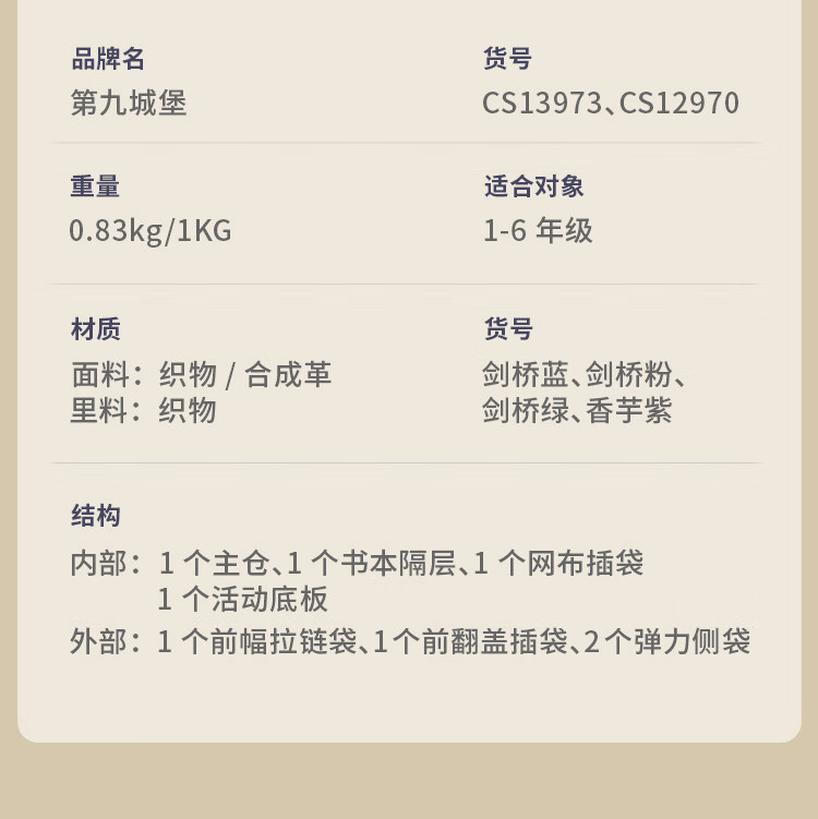第九城堡书包小学生男孩护脊儿童书包1-3-6年级英伦风女生减负双肩背包