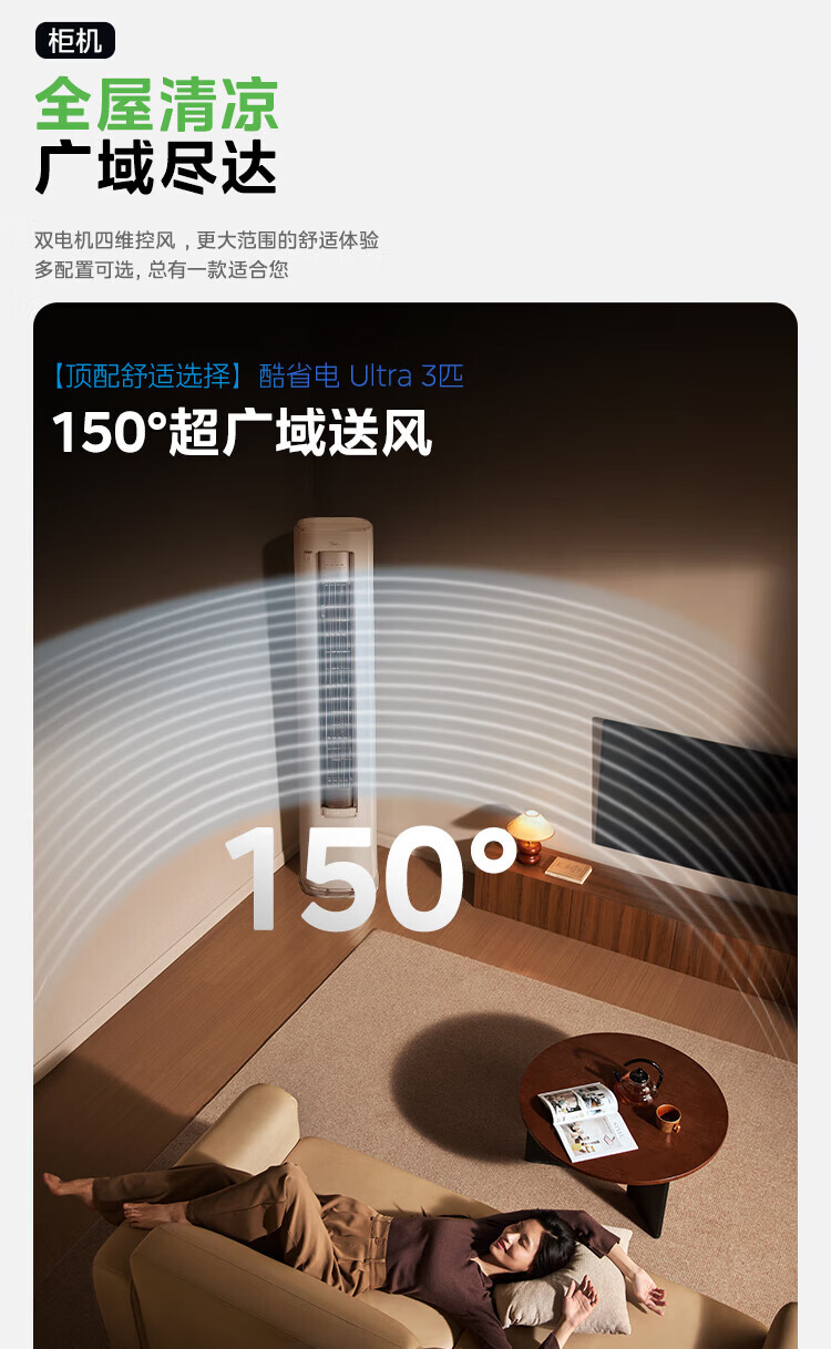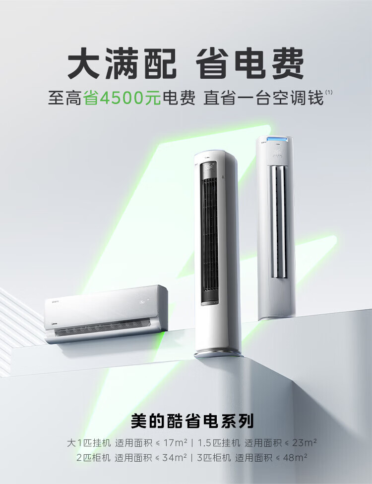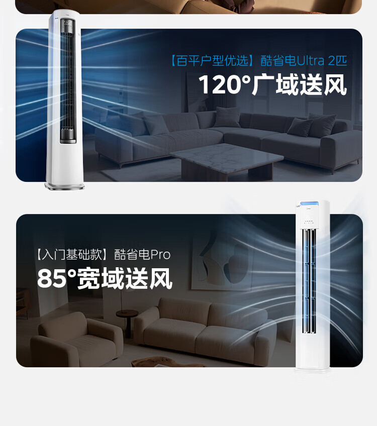 美的空调套装 酷省电Ultra系列 一套购齐 新一级能效 变频冷暖 智能省电 挂机+立式柜机组合 一室一厅(酷省电2025款+酷省电Ultra柜机)