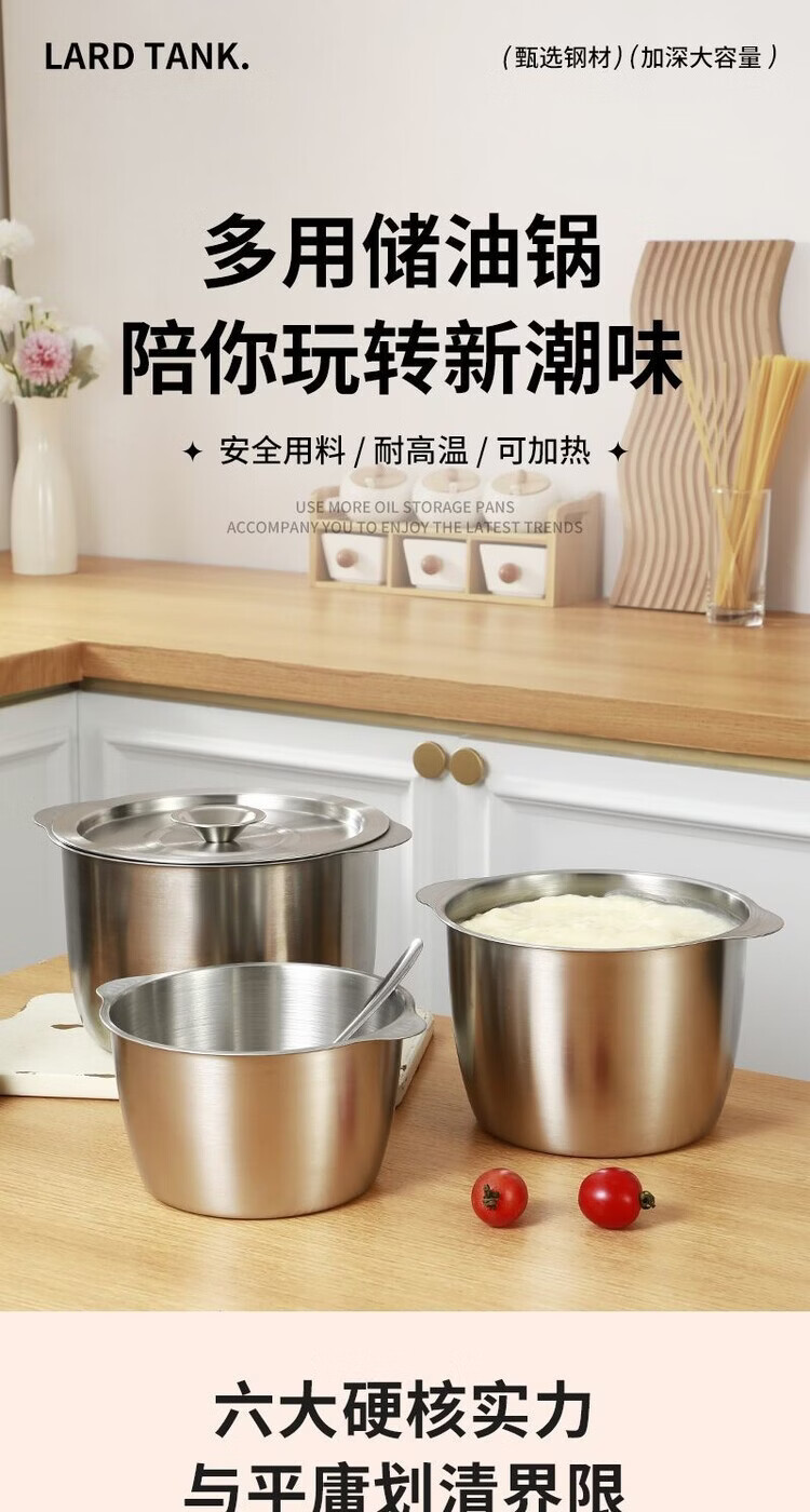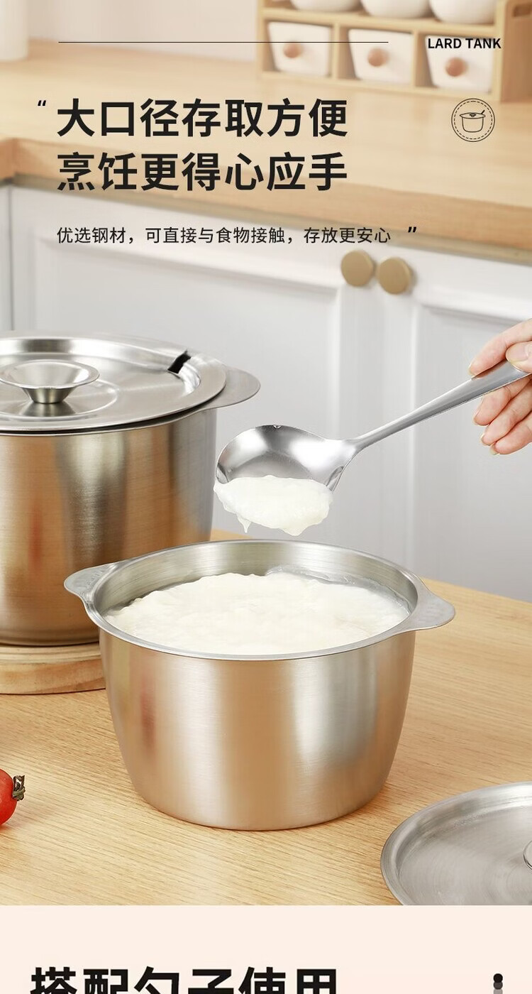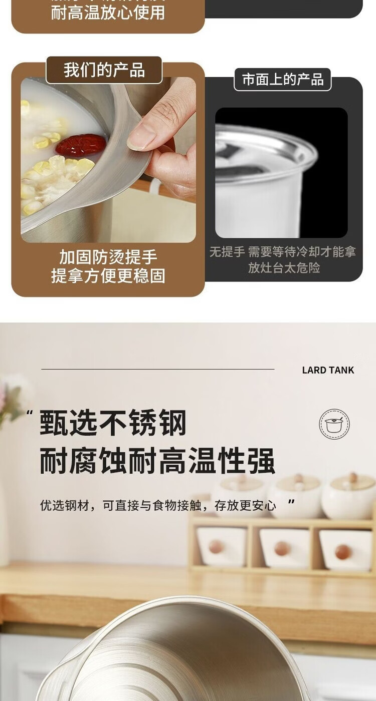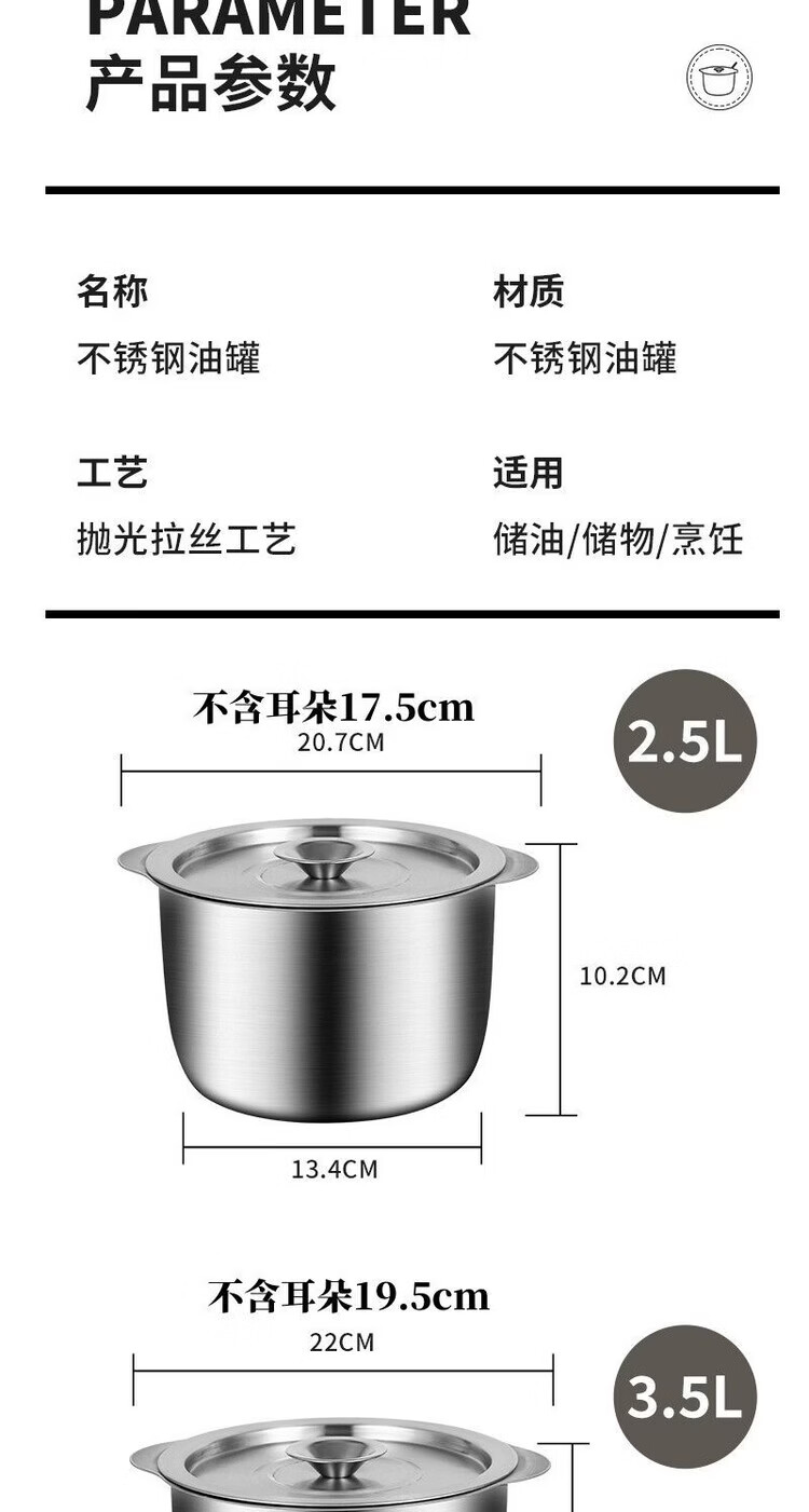咏夏【双耳防烫】不锈钢油罐油锅滤网带盖家用耐高温大容量油桶油罐 爆款:双耳特深2600毫升【带开口盖+勺子】