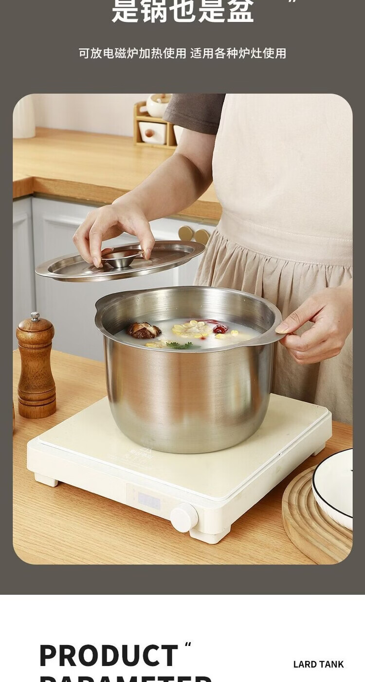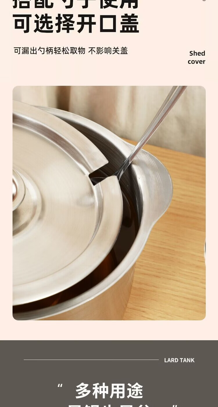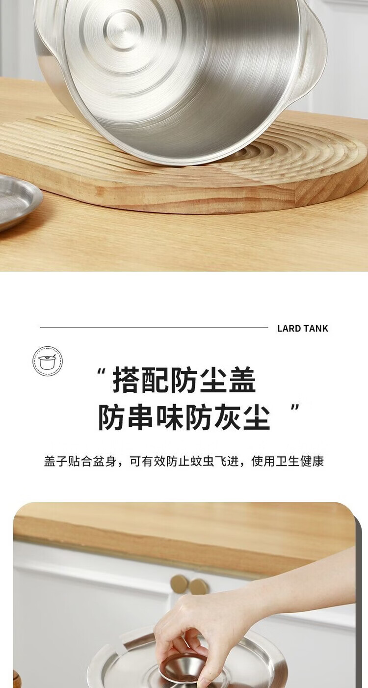 咏夏【双耳防烫】不锈钢油罐油锅滤网带盖家用耐高温大容量油桶油罐 爆款:双耳特深2600毫升【带开口盖+勺子】