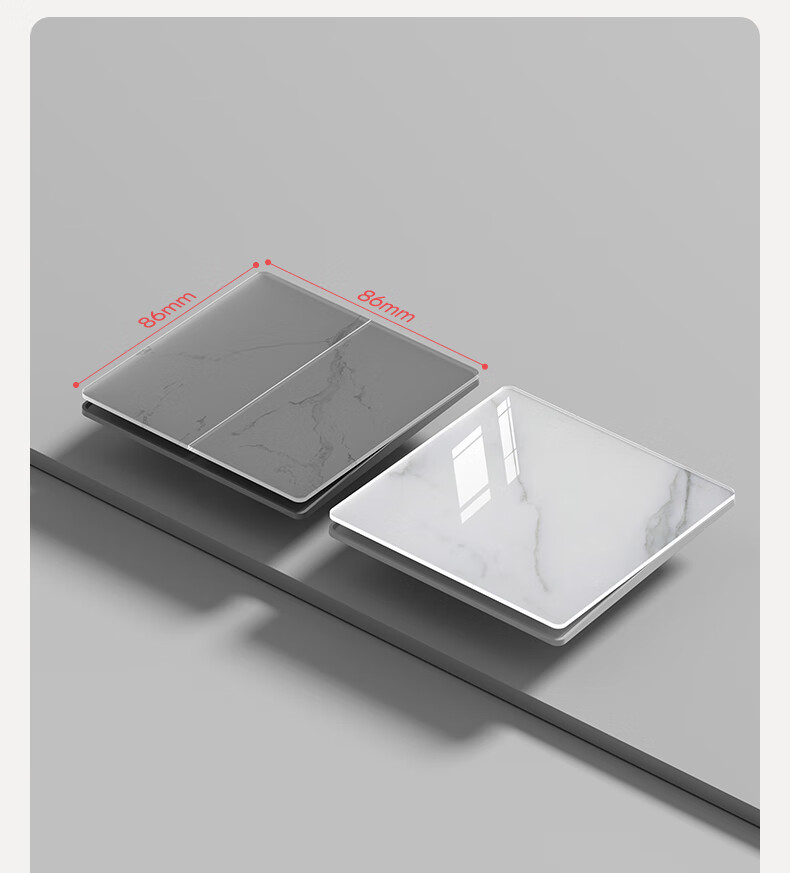 国际电工86型暗装高颜值水转印纹理开关面板超薄钢化玻璃大理石灰电源插座 一开五孔双控