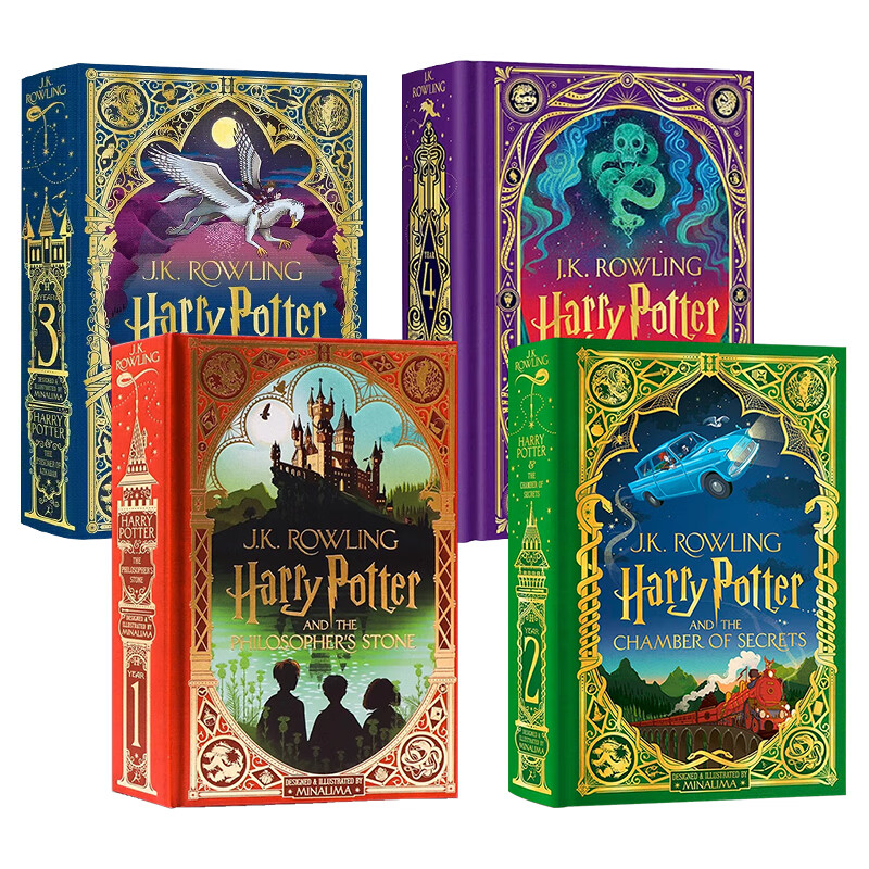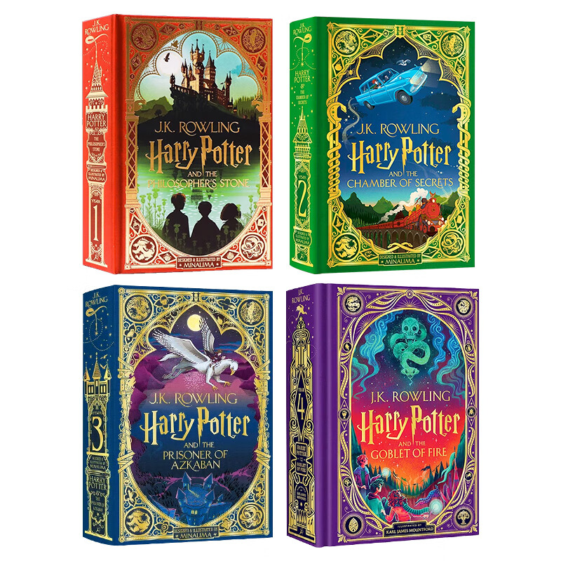 哈利波特精装全彩互动书4册套装英文原版 Harry Potter 1/2/3/4魔法石+密室+阿兹卡班的囚徒+火焰杯 JK罗琳 MinaLima 英版周边小说 哈利波特与火焰杯