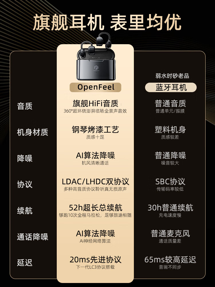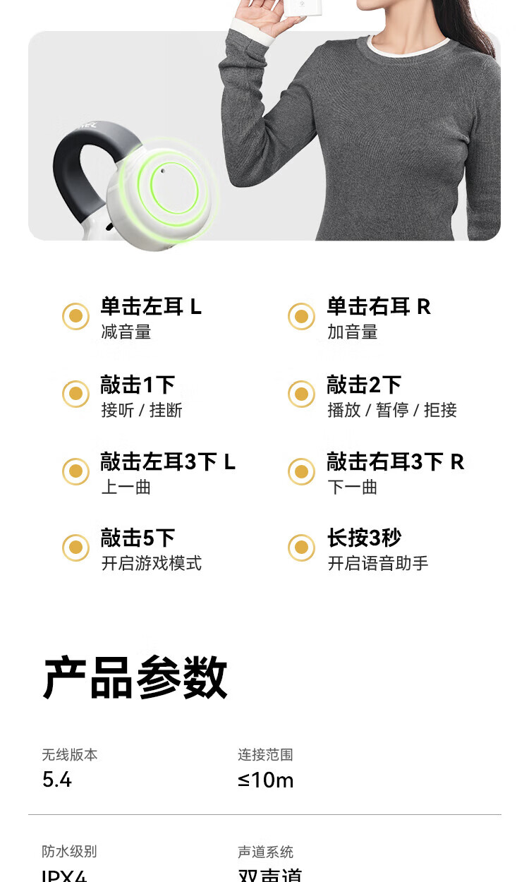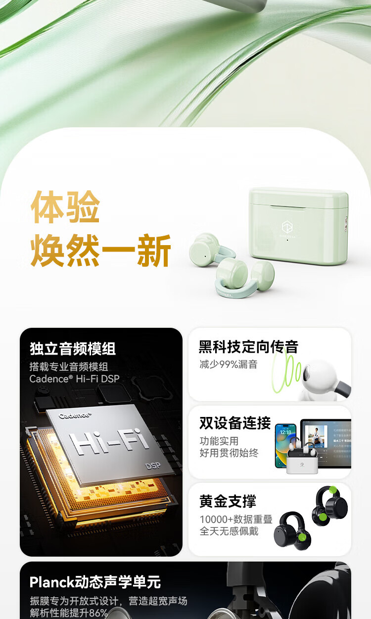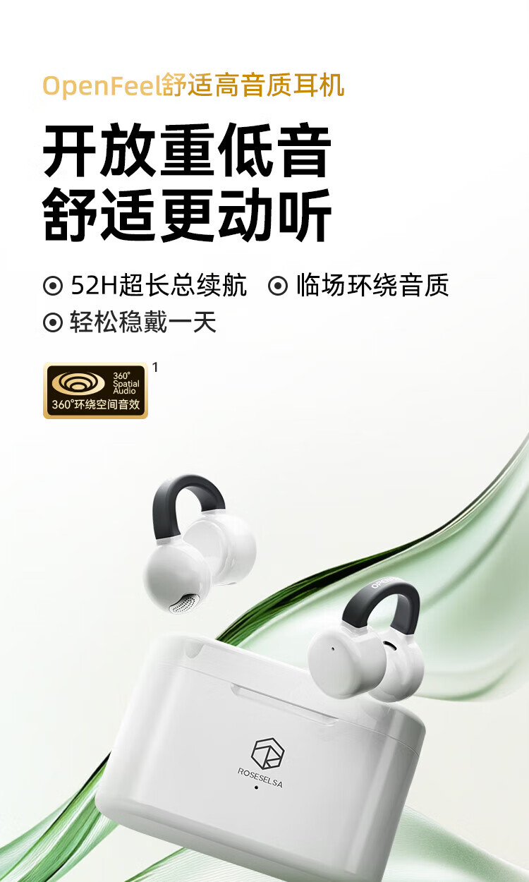 弱水时砂OpenFeel【周传雄推荐】蓝牙耳机耳夹式不入耳真无线开放式HIFi气骨传导概念通话降噪挂耳运动跑步