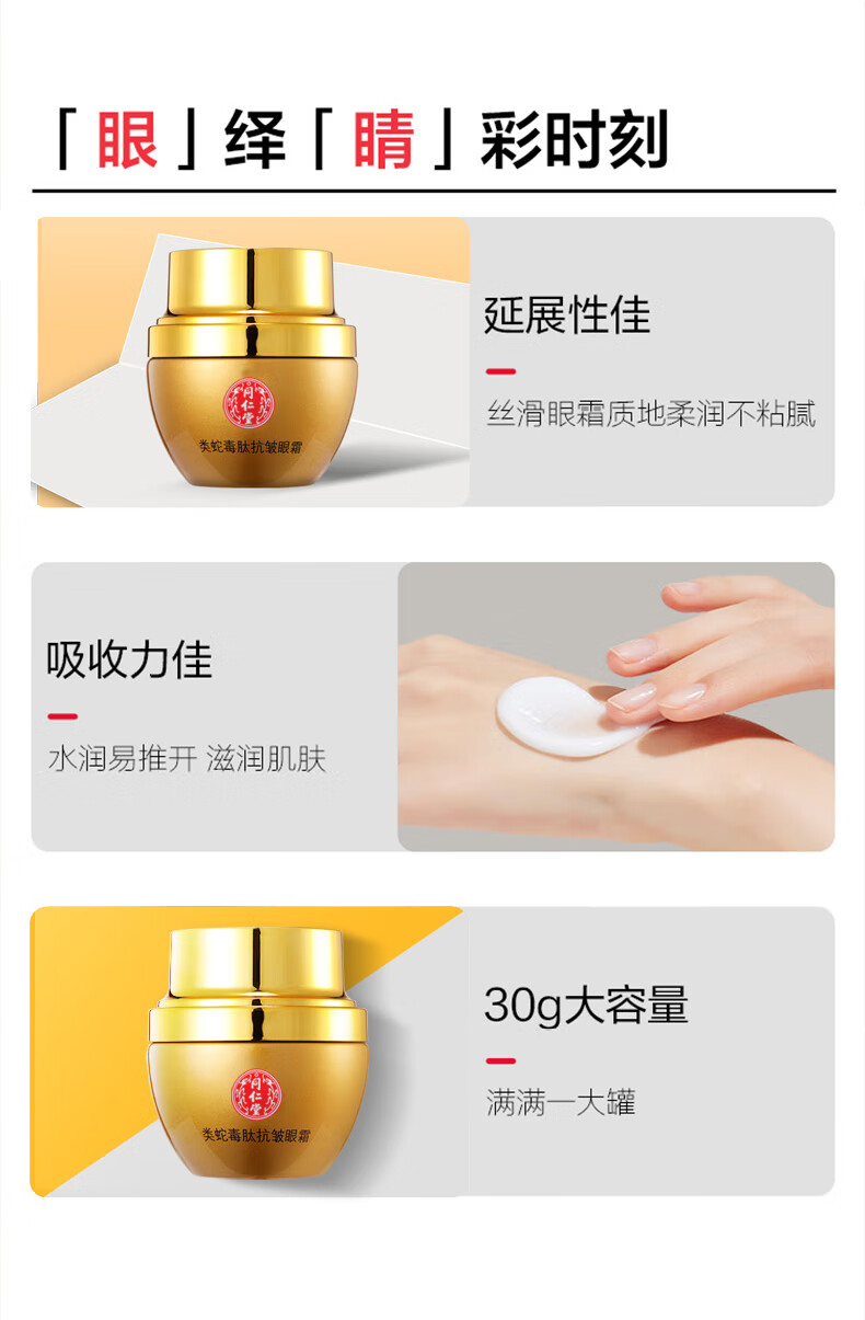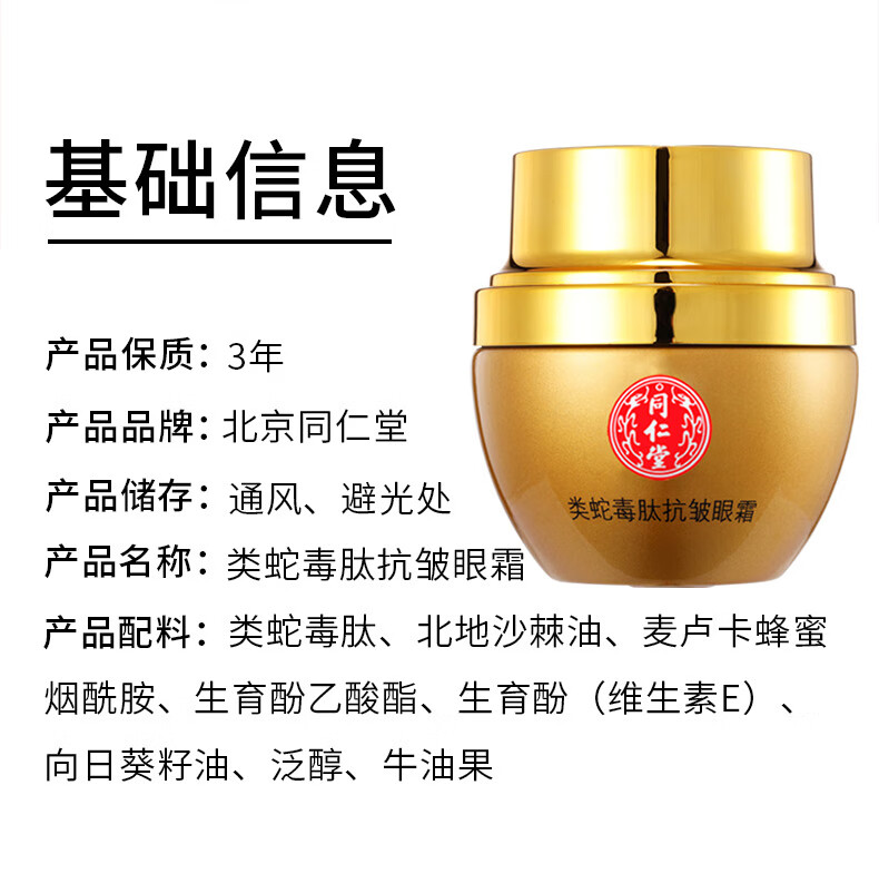 同仁堂(TRT)国货眼霜抗皱眼周保湿类蛇毒肽精华女士专用30g 1盒装