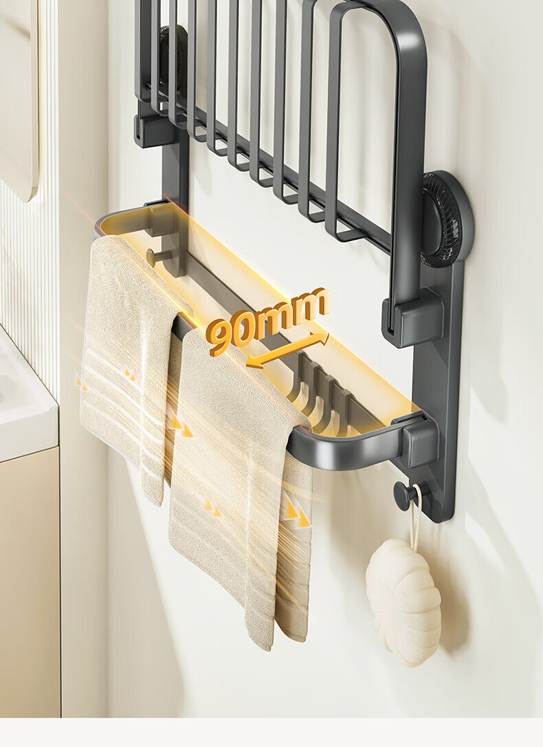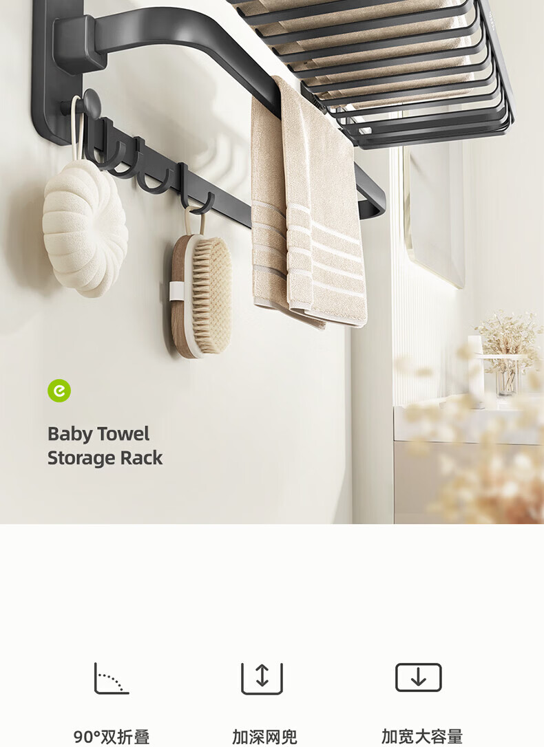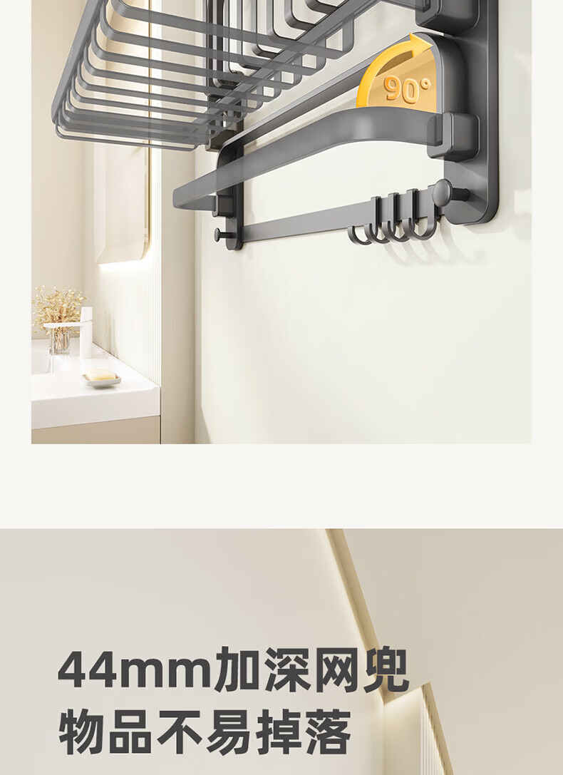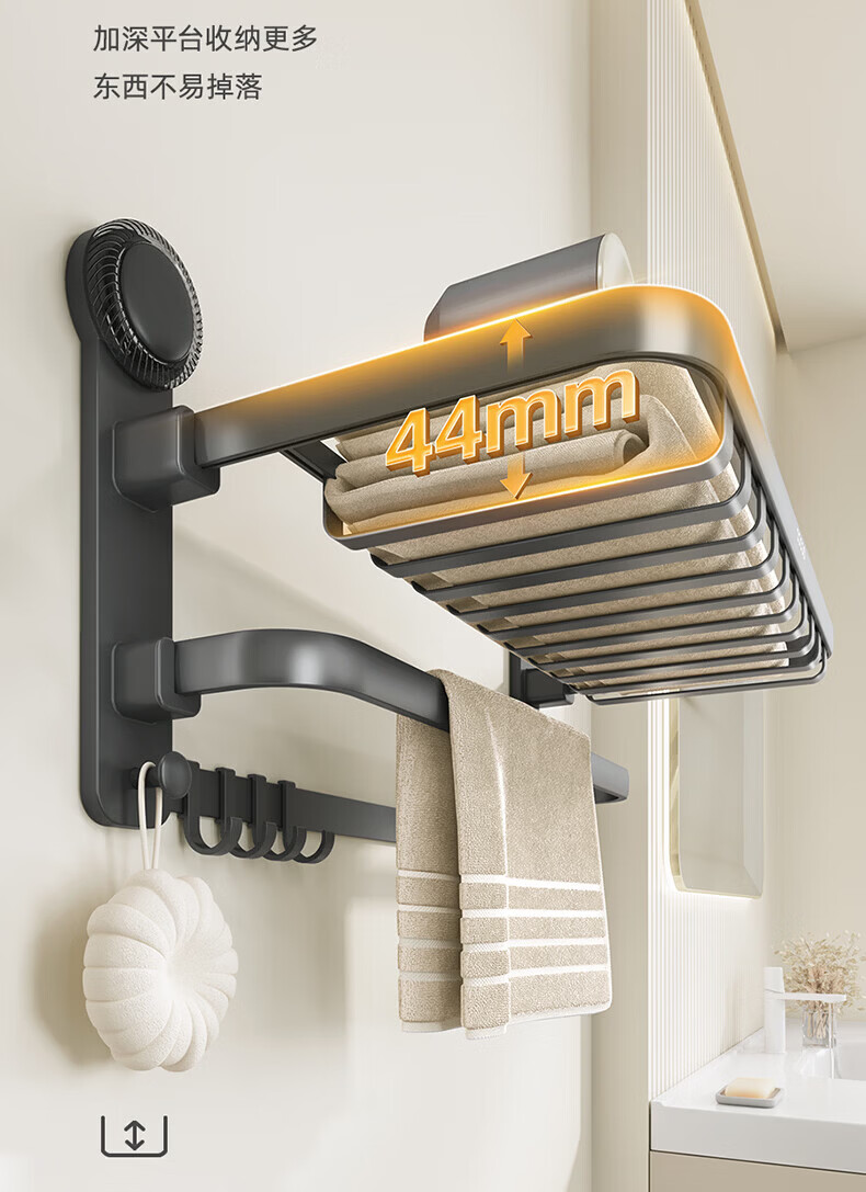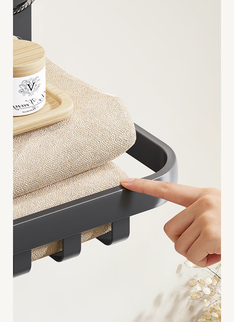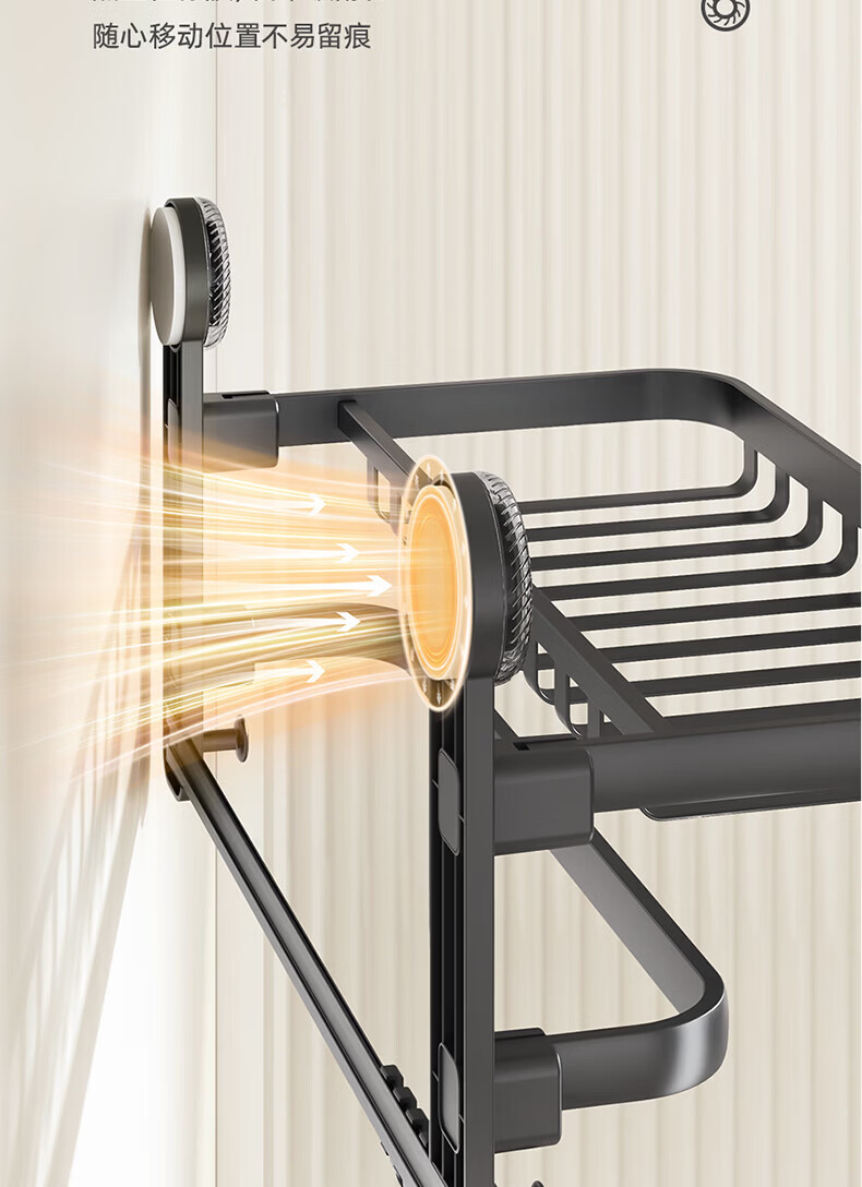 ecoco吸盘毛巾架卫生间收纳浴室置物架太空铝加厚免打孔厕所浴巾挂架 【/枪灰色】吸盘网兜款+移动挂钩 80cm