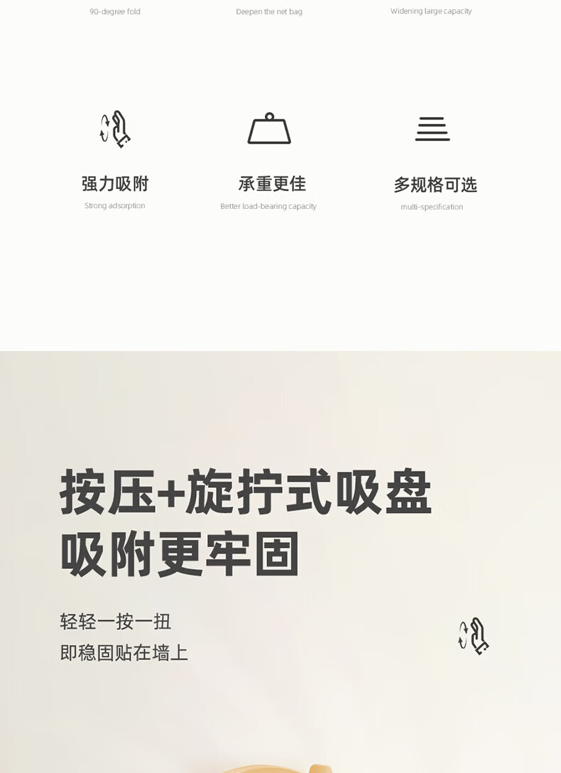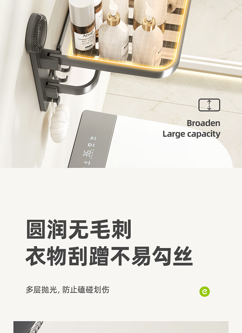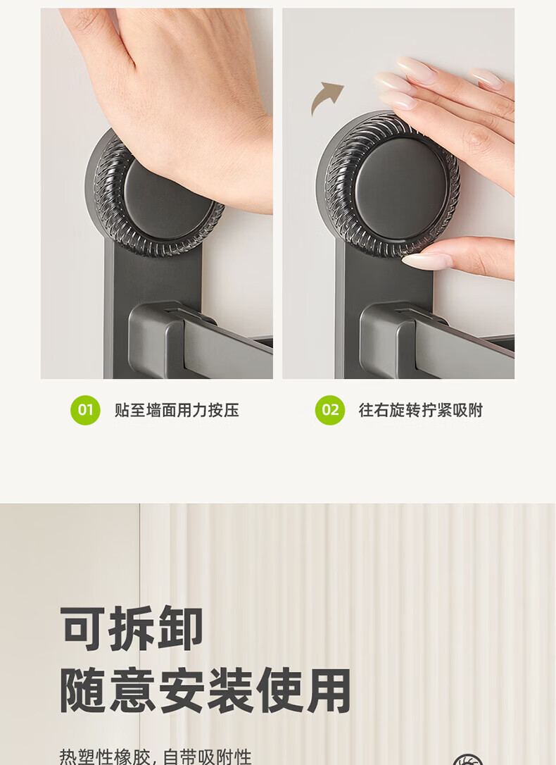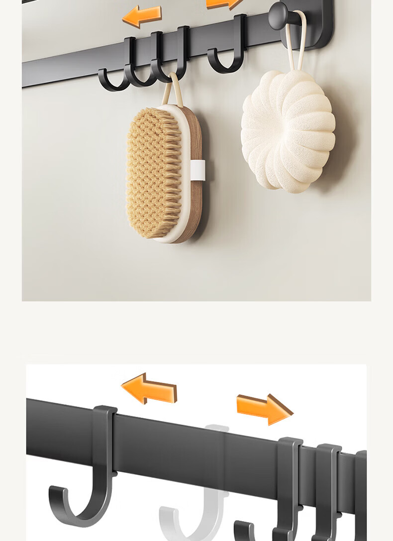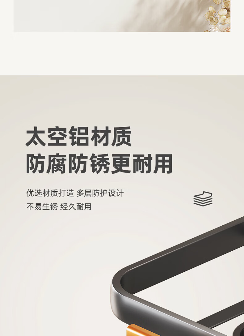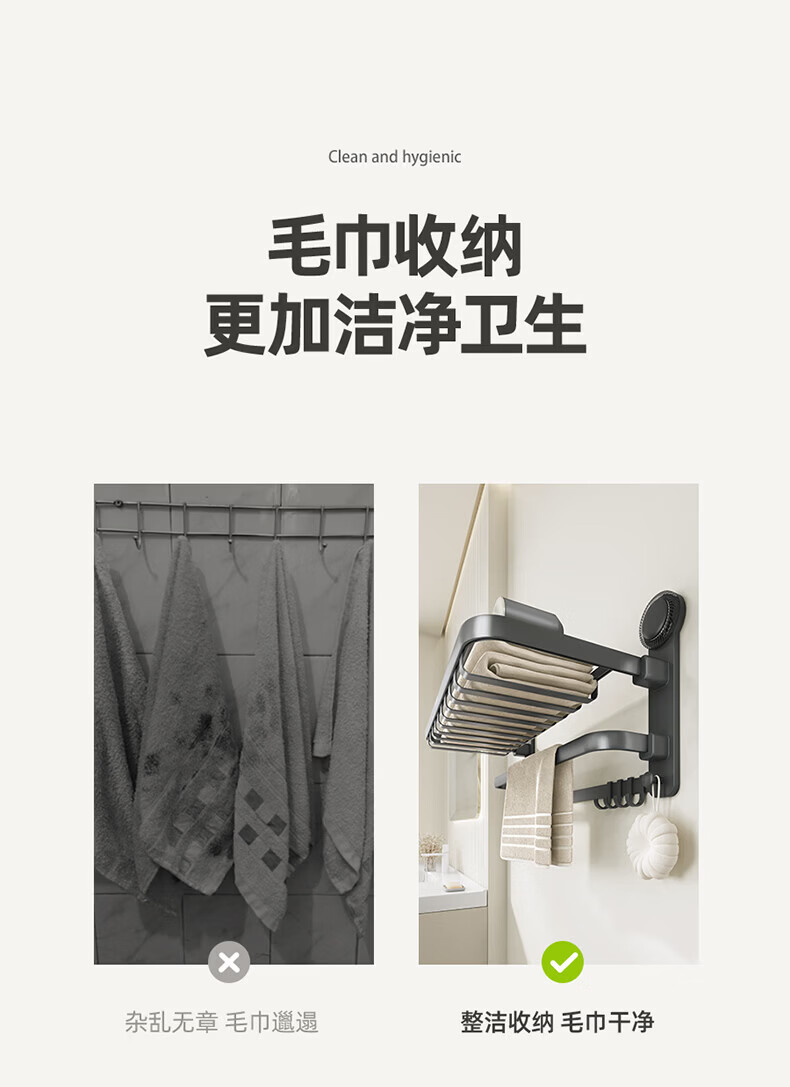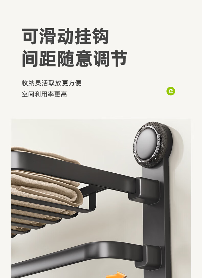 ecoco吸盘毛巾架卫生间收纳浴室置物架太空铝加厚免打孔厕所浴巾挂架 【/枪灰色】吸盘网兜款+移动挂钩 80cm