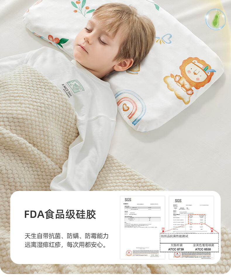 贝肽斯儿童硅胶枕头3个月-6岁透气定型宝宝枕头幼儿园婴儿四季通用 太空旅行-【3个月-1岁】抗菌防螨