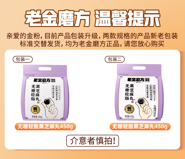 老金磨方【黑金系列】黑芝麻丸450g 九蒸九晒健康零食即食糕点 【高钙高蛋白】轻脂黑芝麻丸 450g*1袋