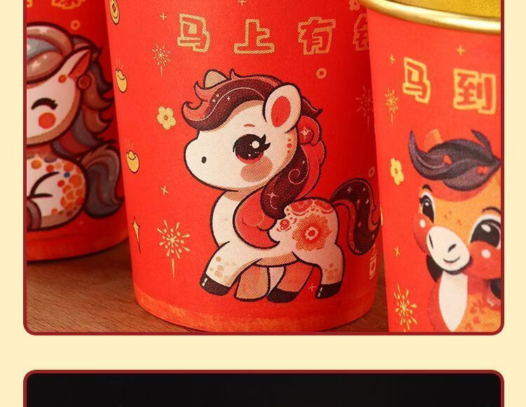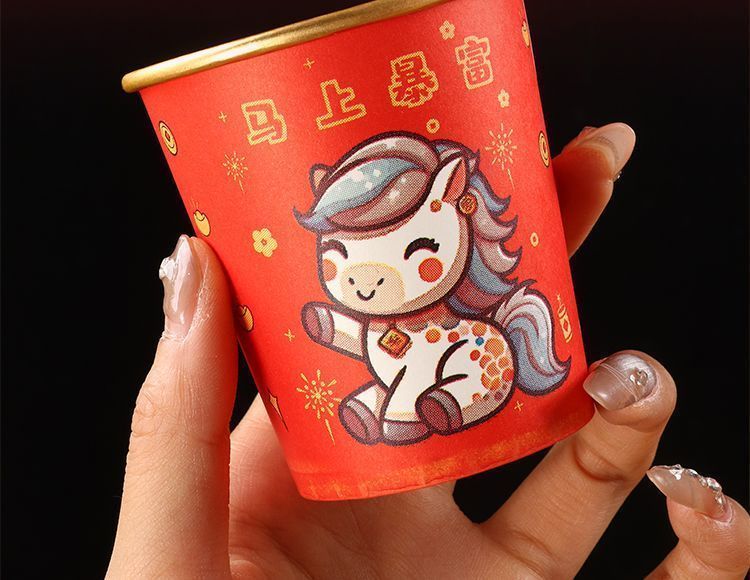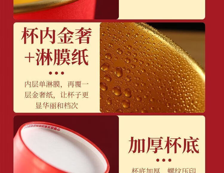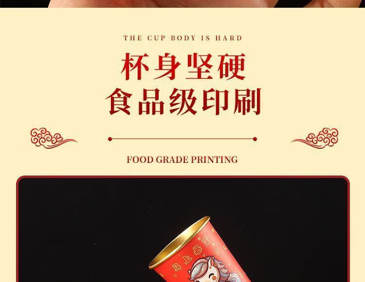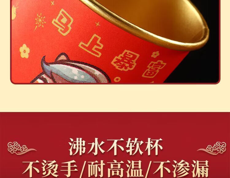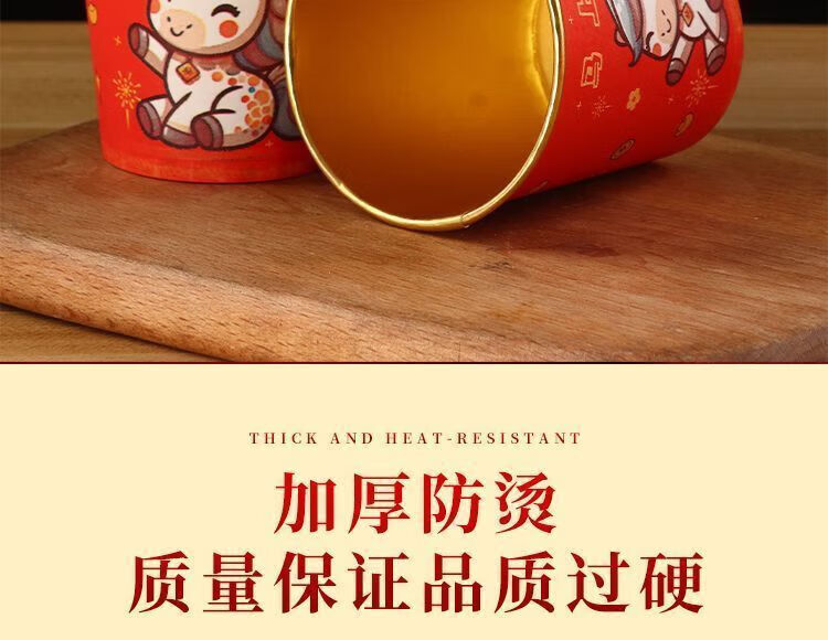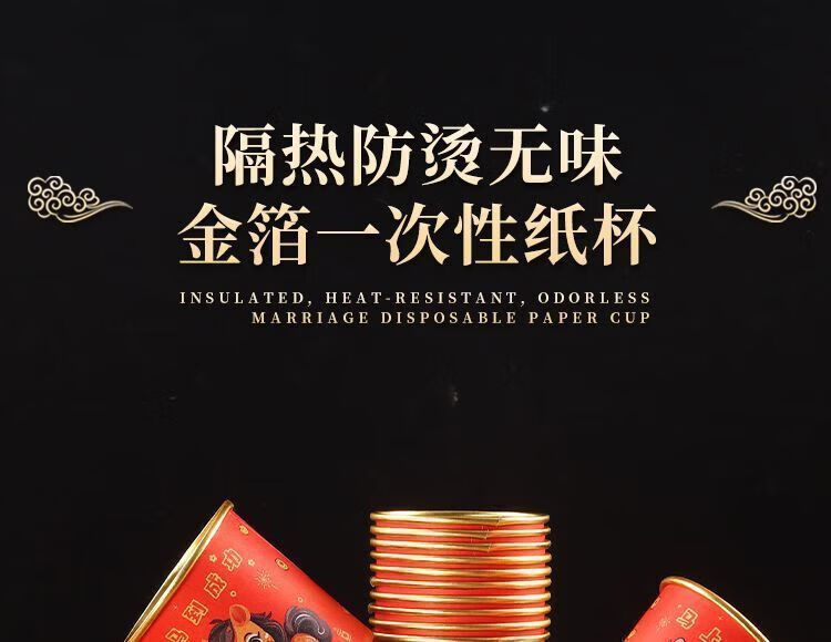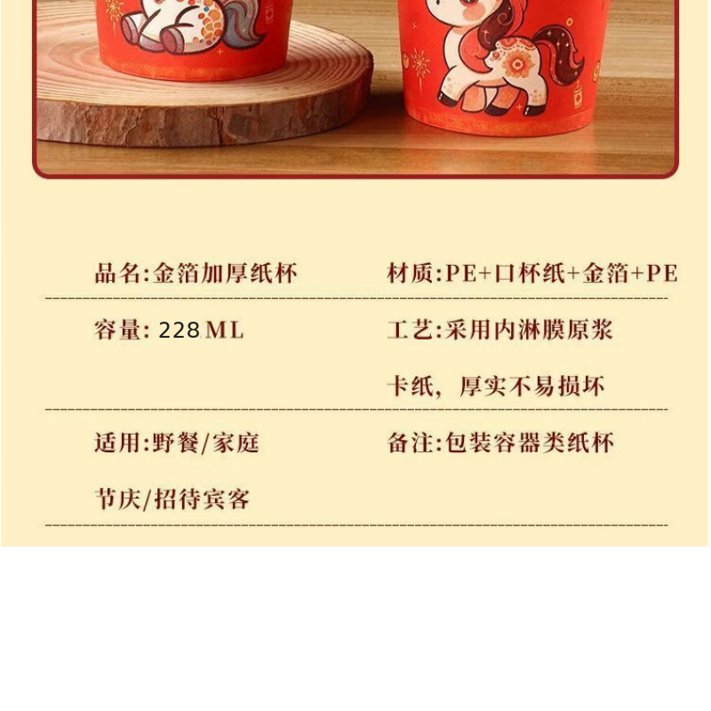 2026马年一次性加厚纸杯新年春节家用商用招待水杯喜庆金箔纸杯子 加厚金箔228ML【50】只装