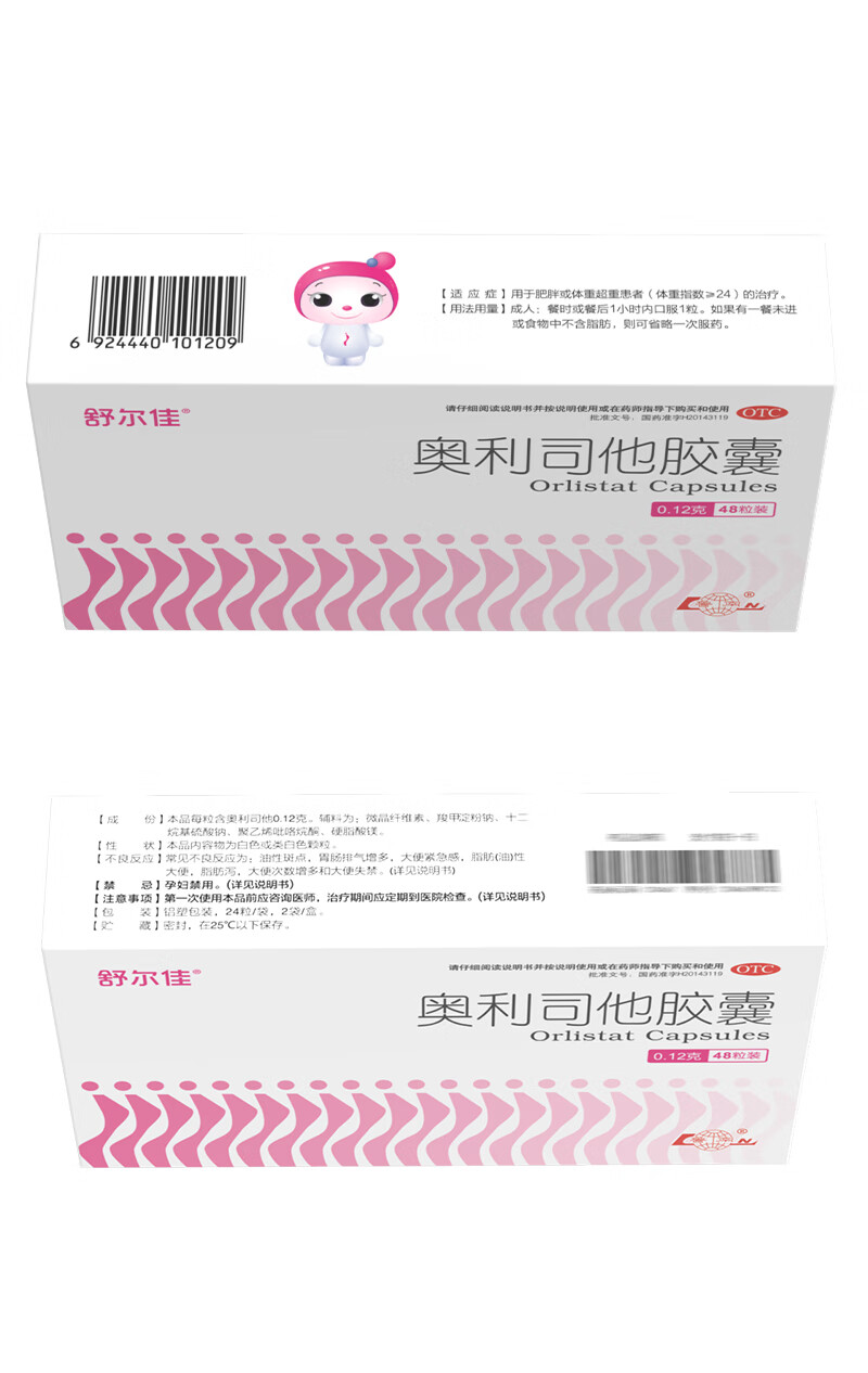 舒尔佳奥利司他胶囊120mg*48粒 减脂减重 减肥药 塑身排油瘦身 治疗肥胖