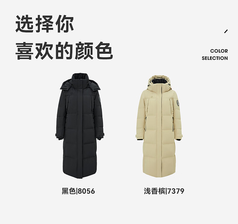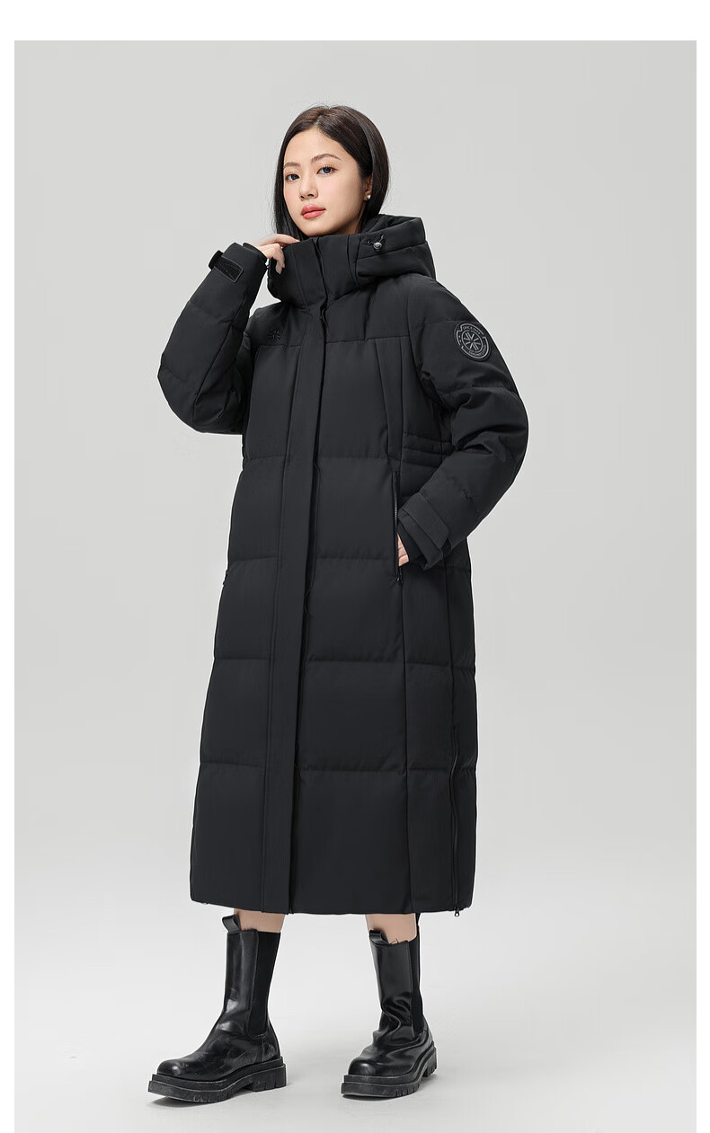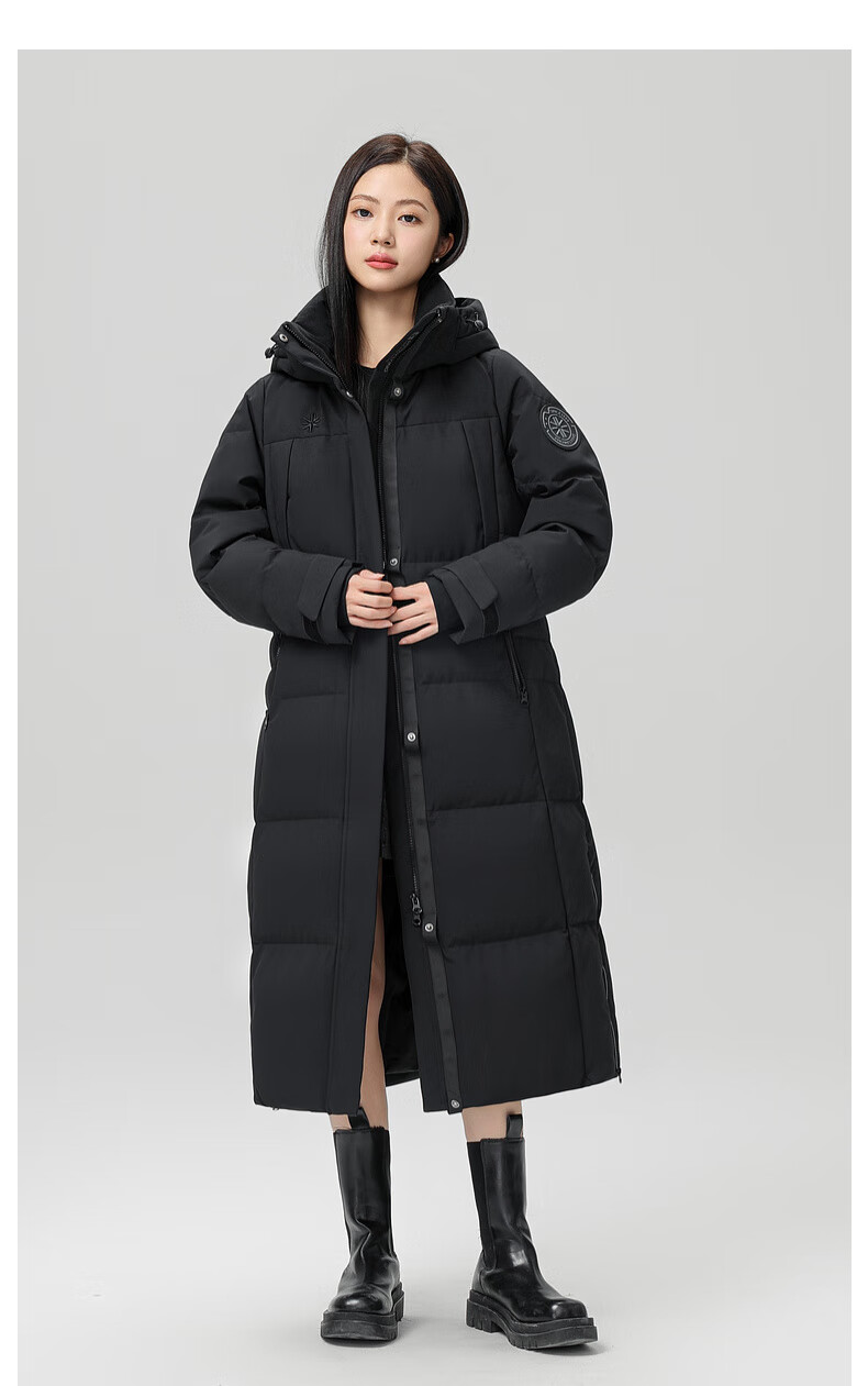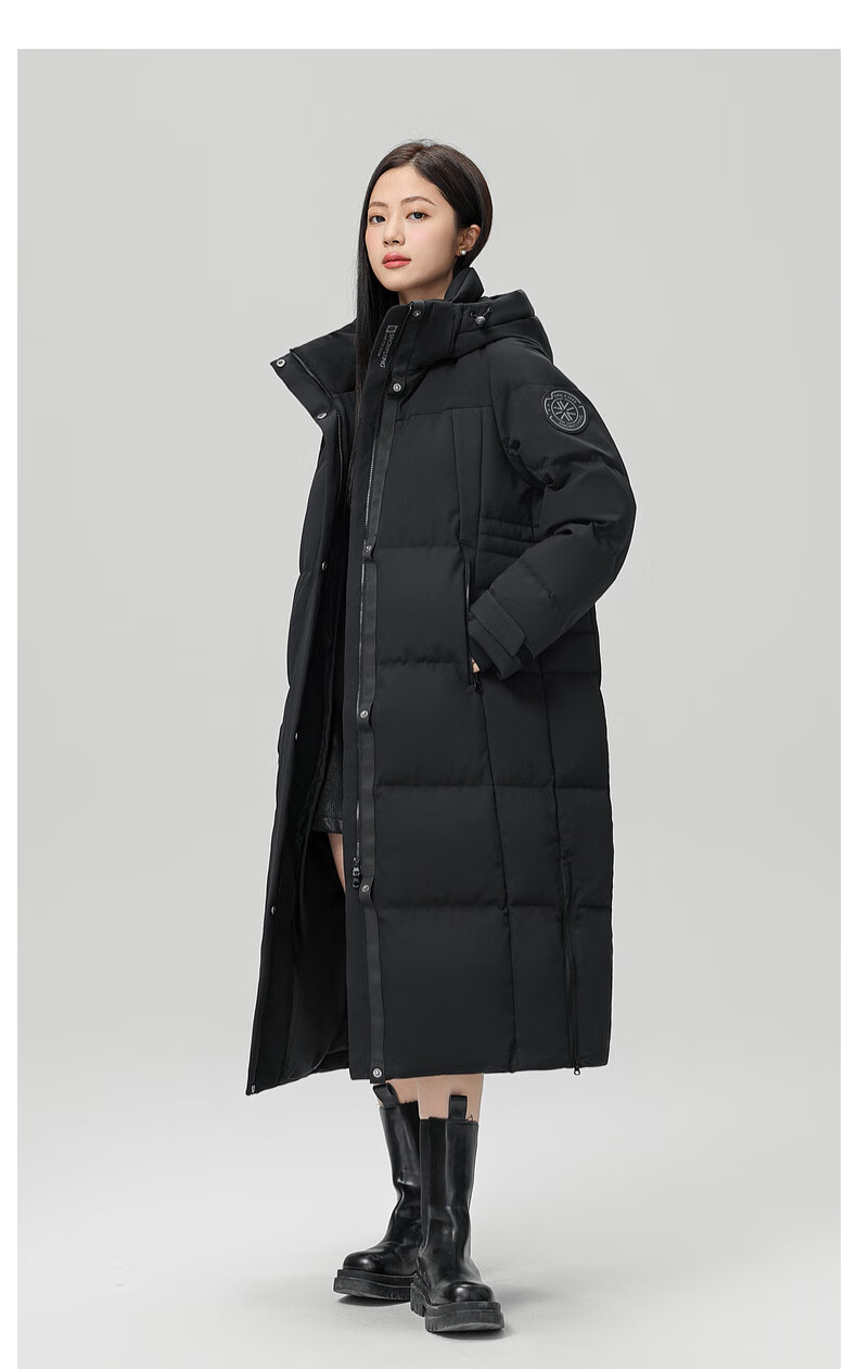 雪中飞【鹅绒】新款休闲百搭经典H版型时尚可脱卸帽长款羽绒服保暖防寒 黑色|8056 L /170/92A