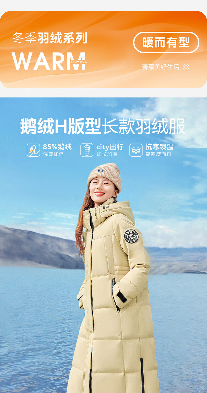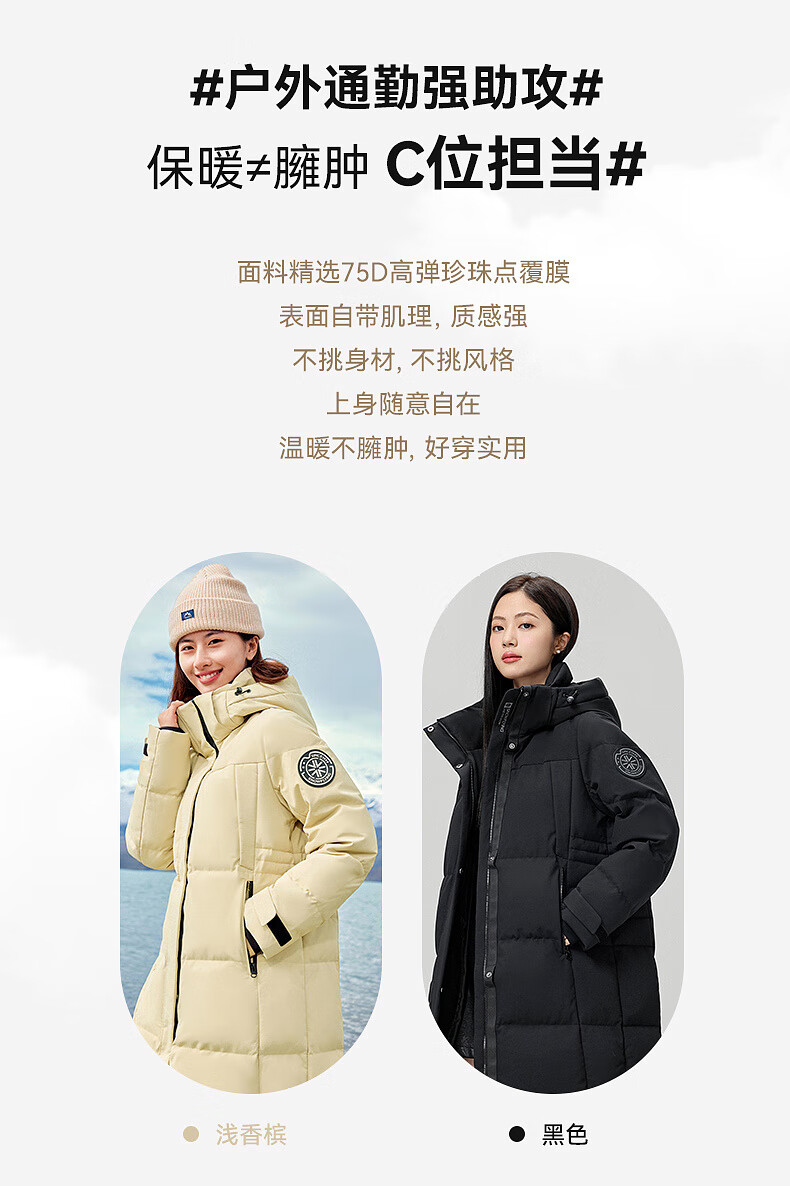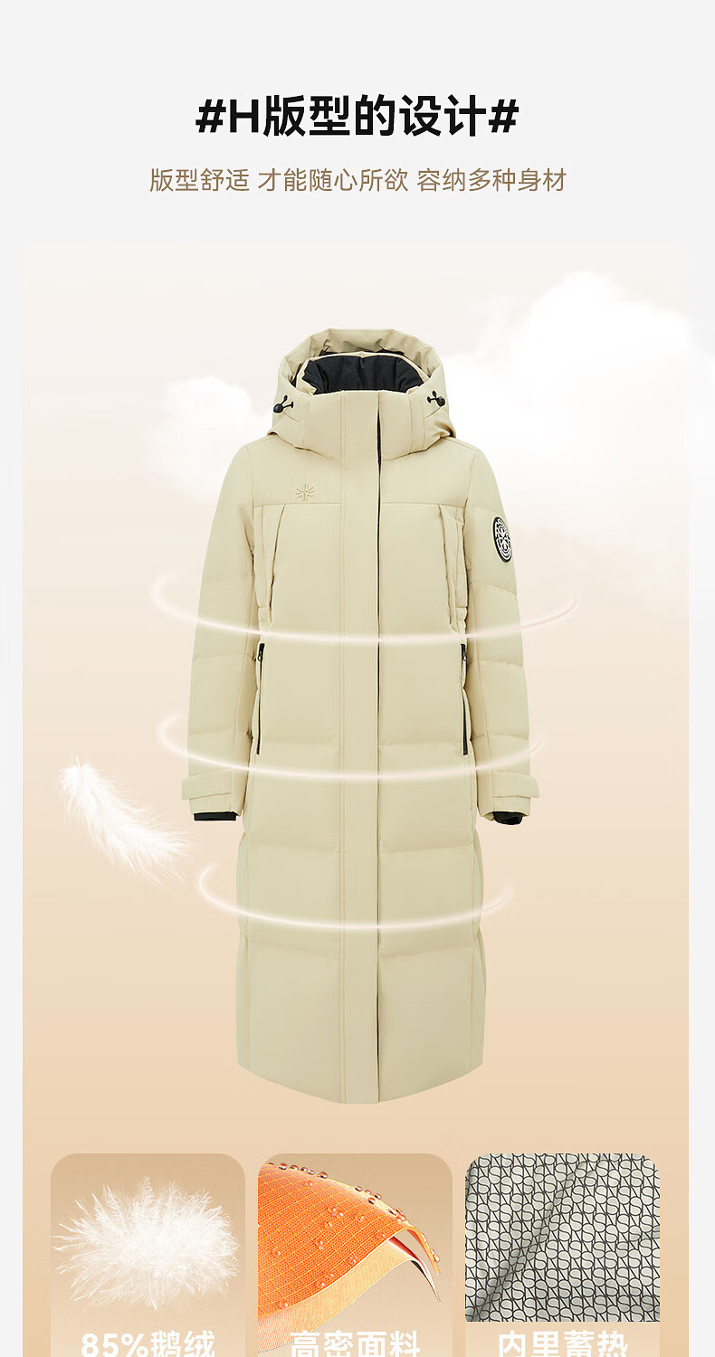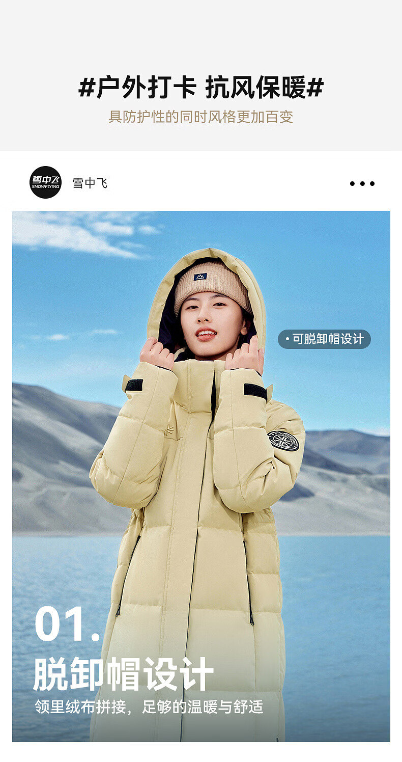 雪中飞【鹅绒】新款休闲百搭经典H版型时尚可脱卸帽长款羽绒服保暖防寒 黑色|8056 L /170/92A
