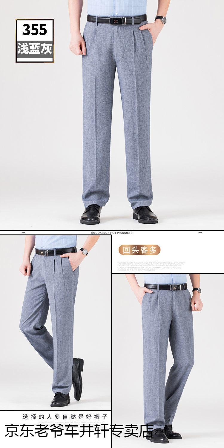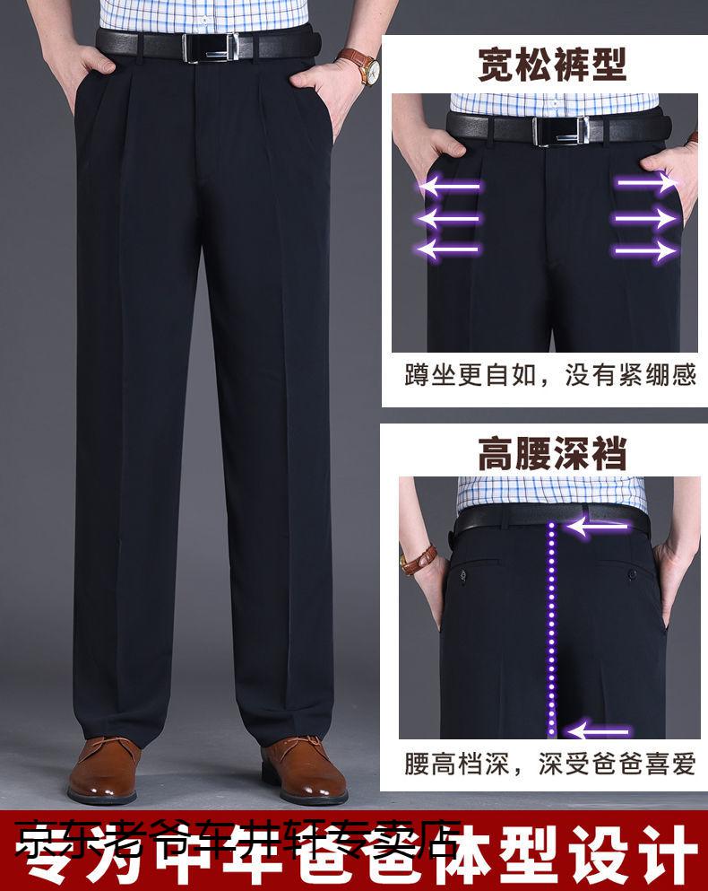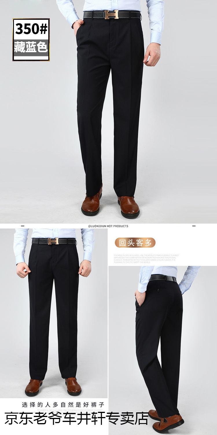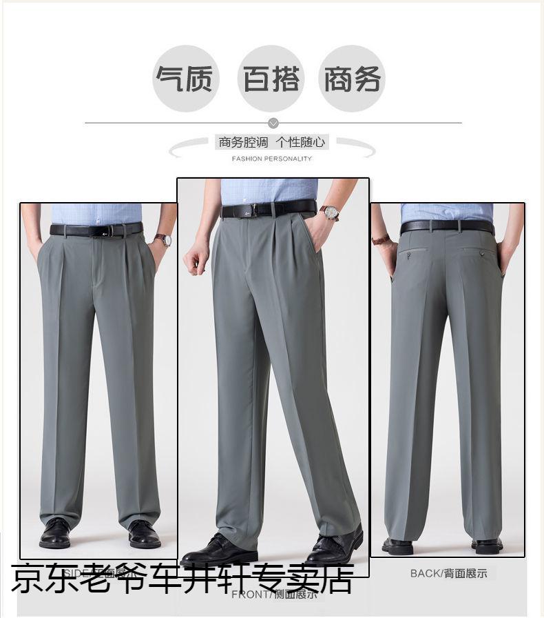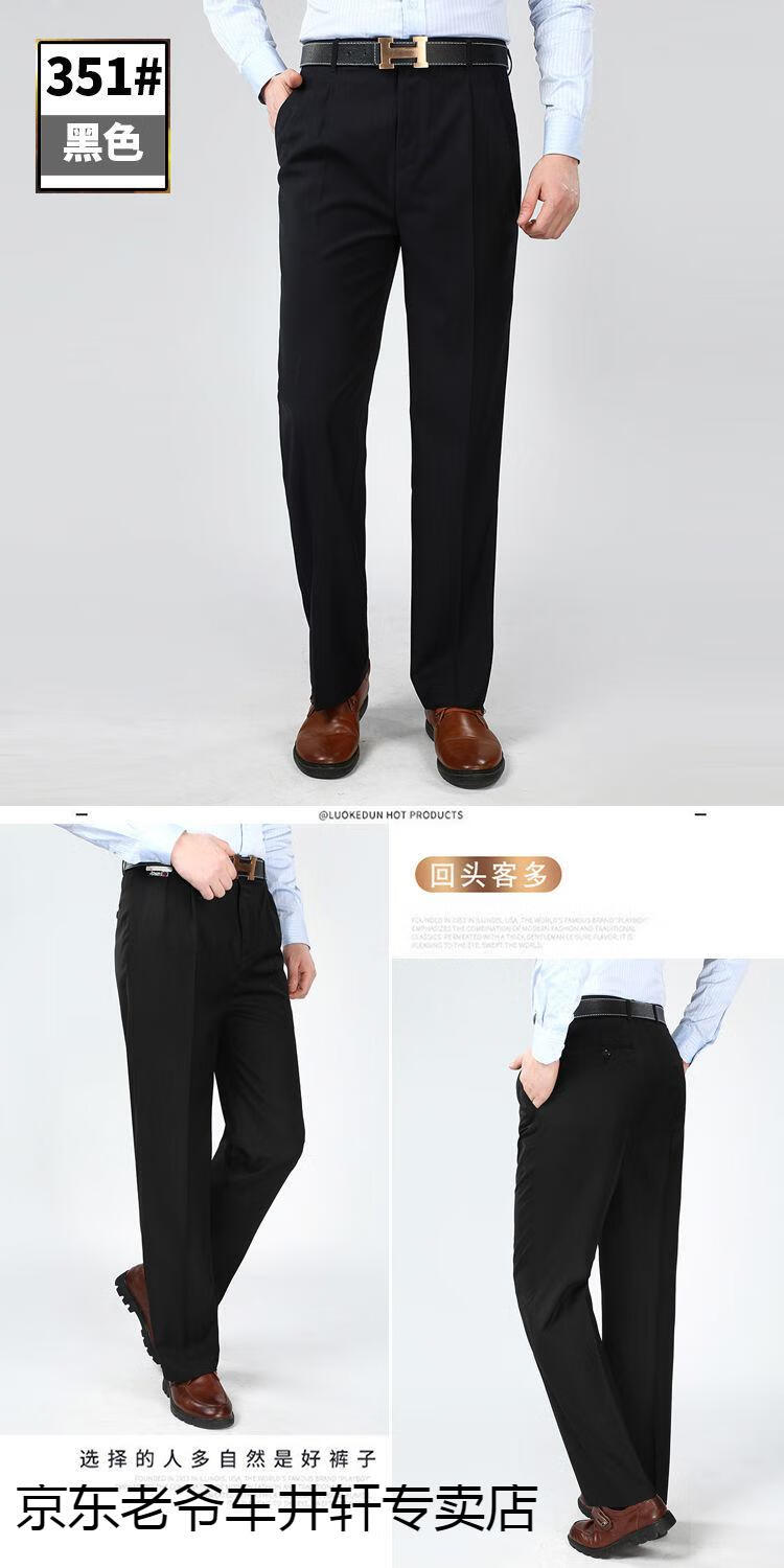 老爷车 加肥加大中老年男裤休闲大码宽松直筒裤爸爸夏季薄款冰丝西-裤男 351黑色-【双褶冰丝薄款】 36码2尺8腰围