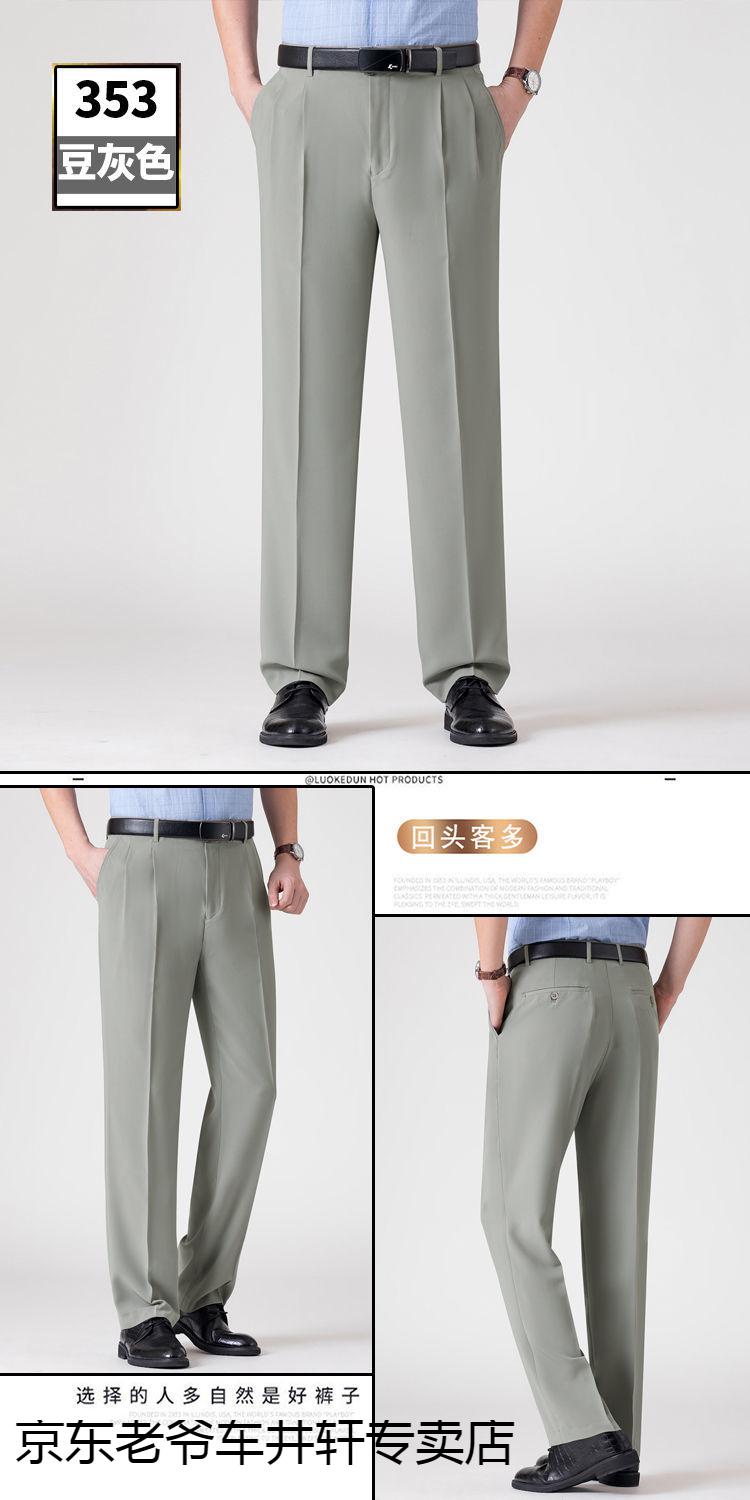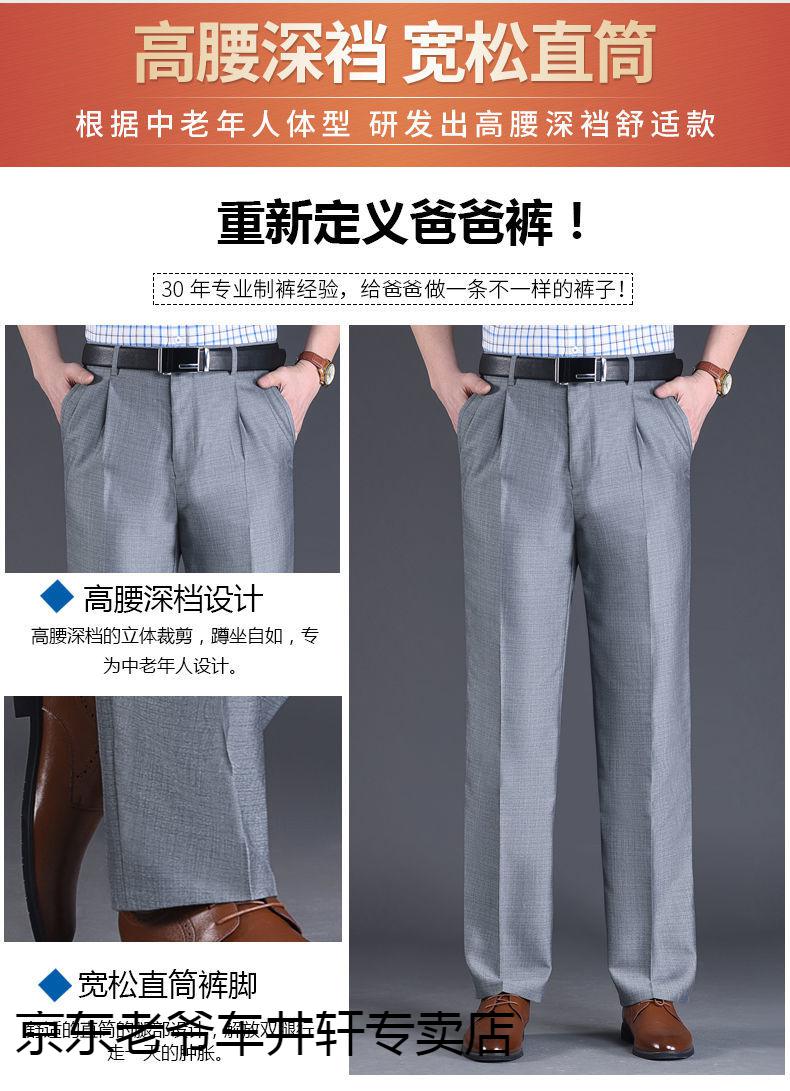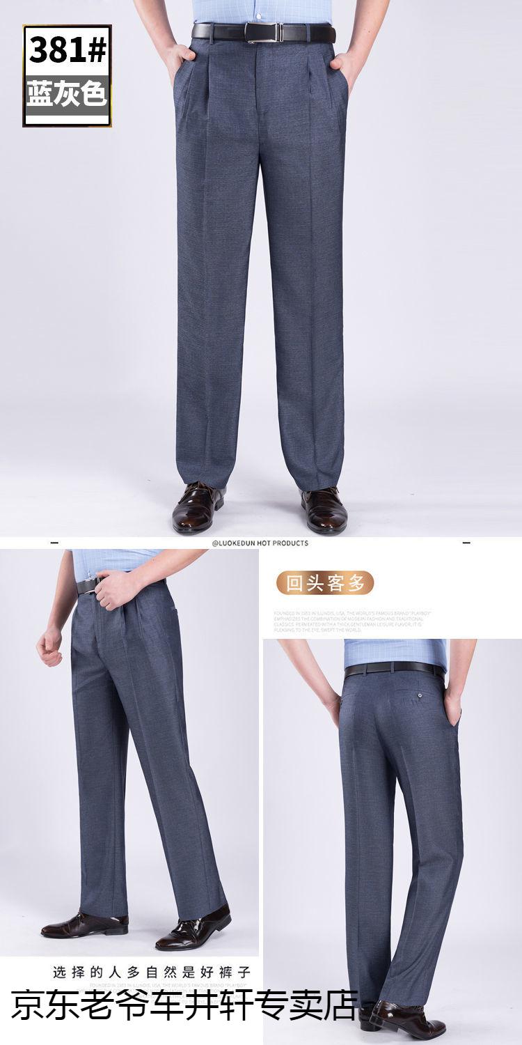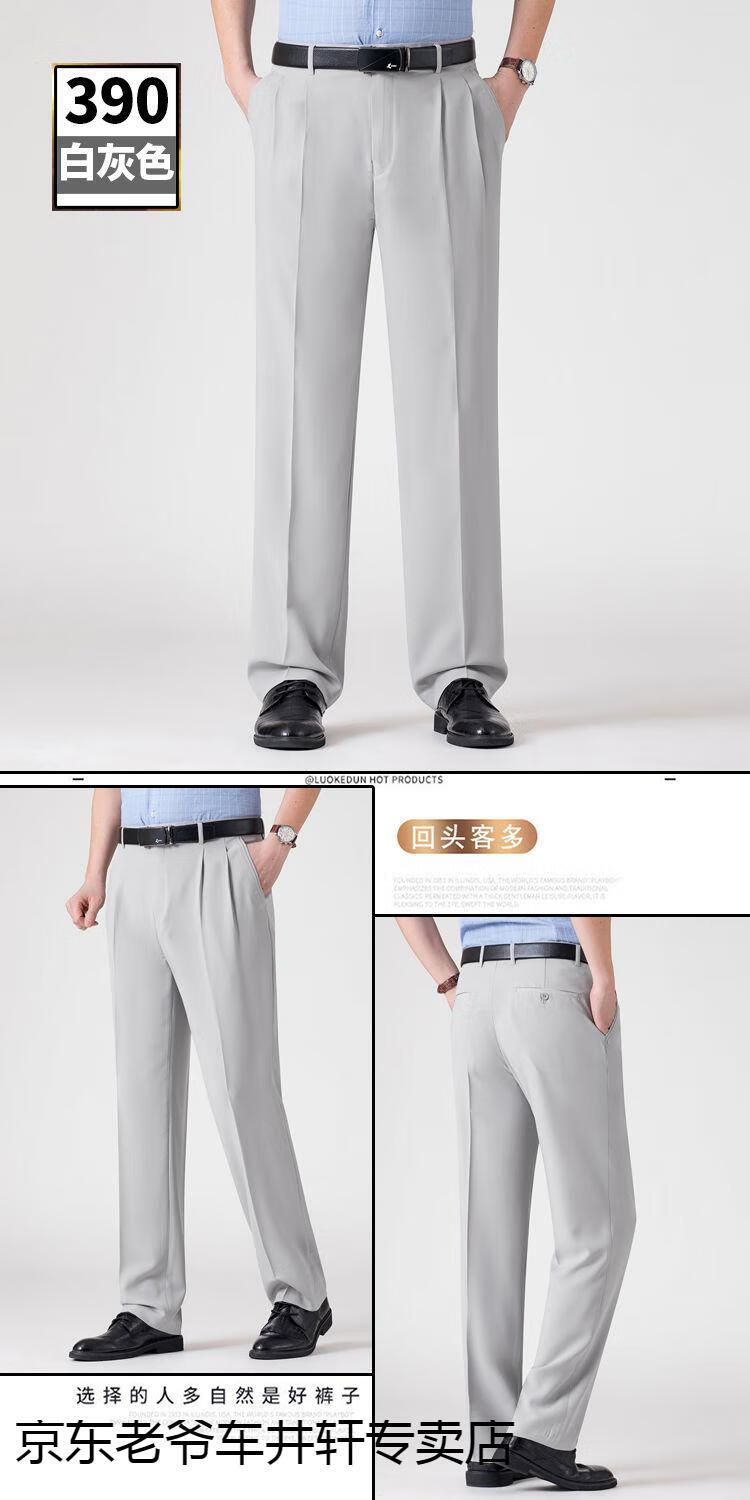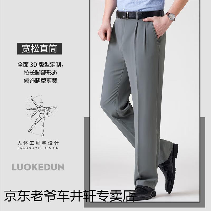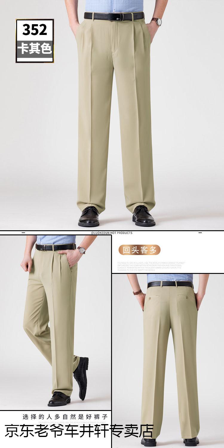 老爷车 加肥加大中老年男裤休闲大码宽松直筒裤爸爸夏季薄款冰丝西-裤男 351黑色-【双褶冰丝薄款】 36码2尺8腰围