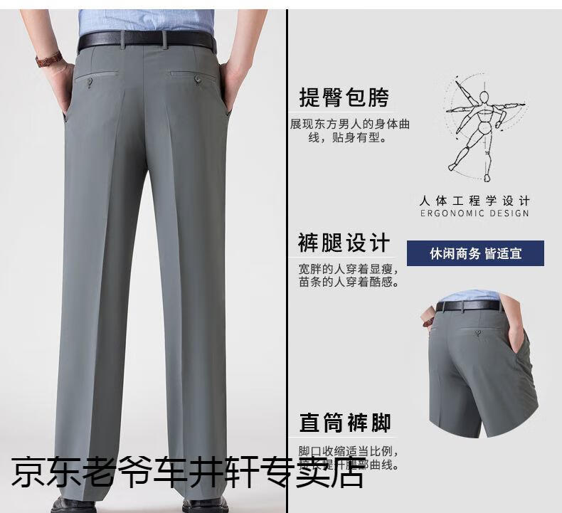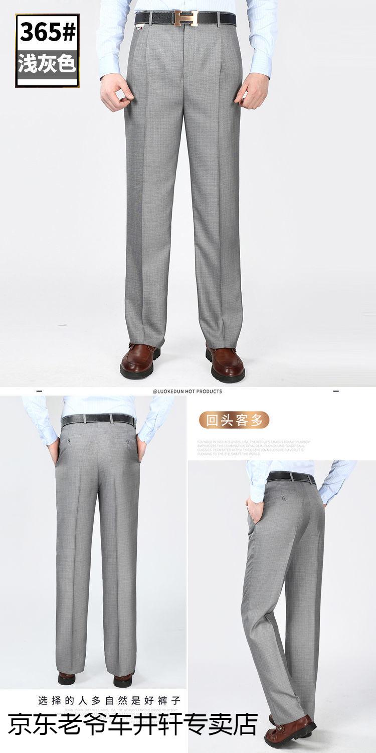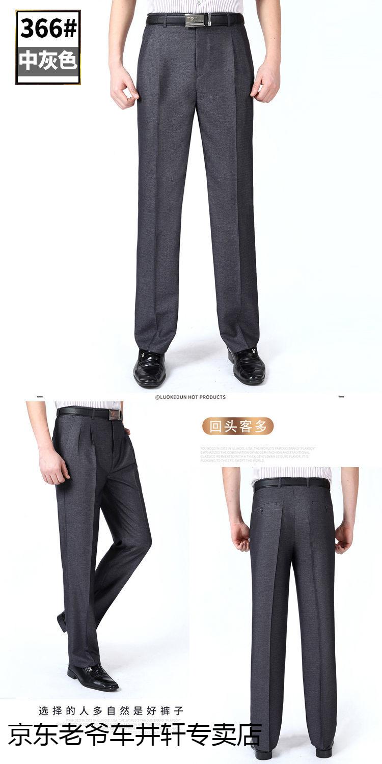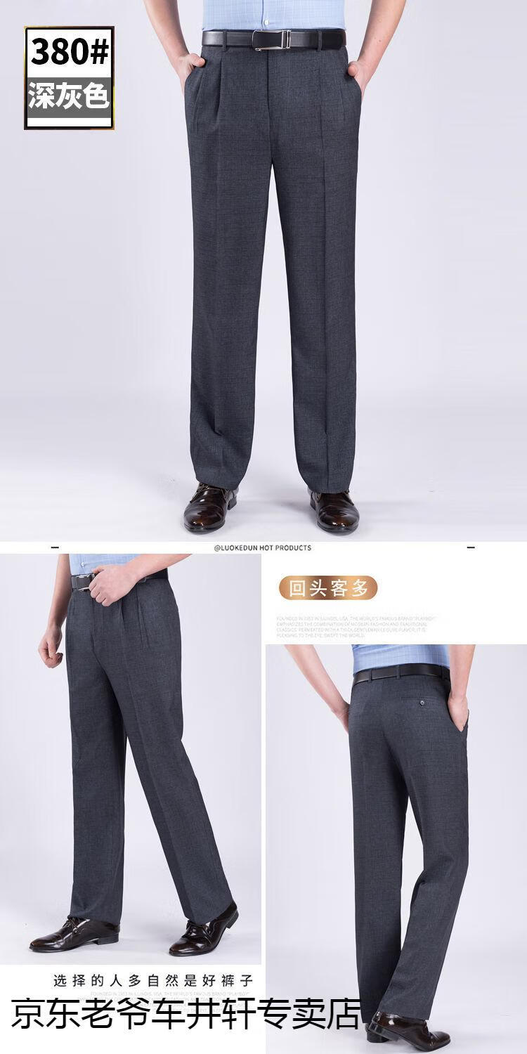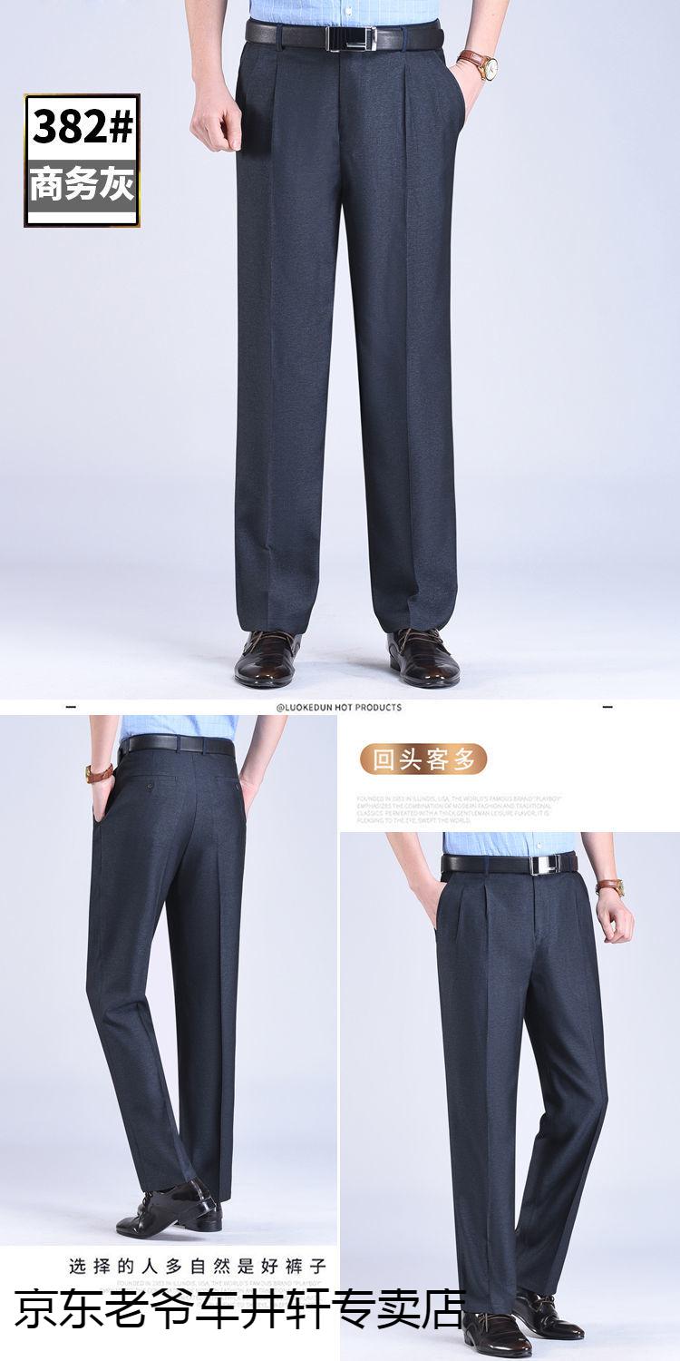 老爷车 加肥加大中老年男裤休闲大码宽松直筒裤爸爸夏季薄款冰丝西-裤男 351黑色-【双褶冰丝薄款】 36码2尺8腰围