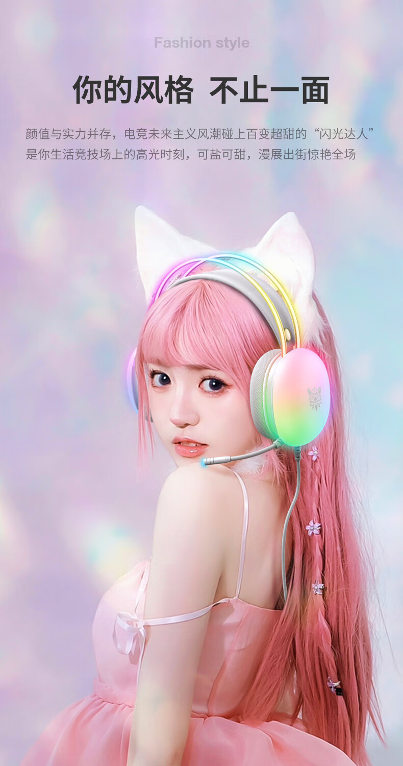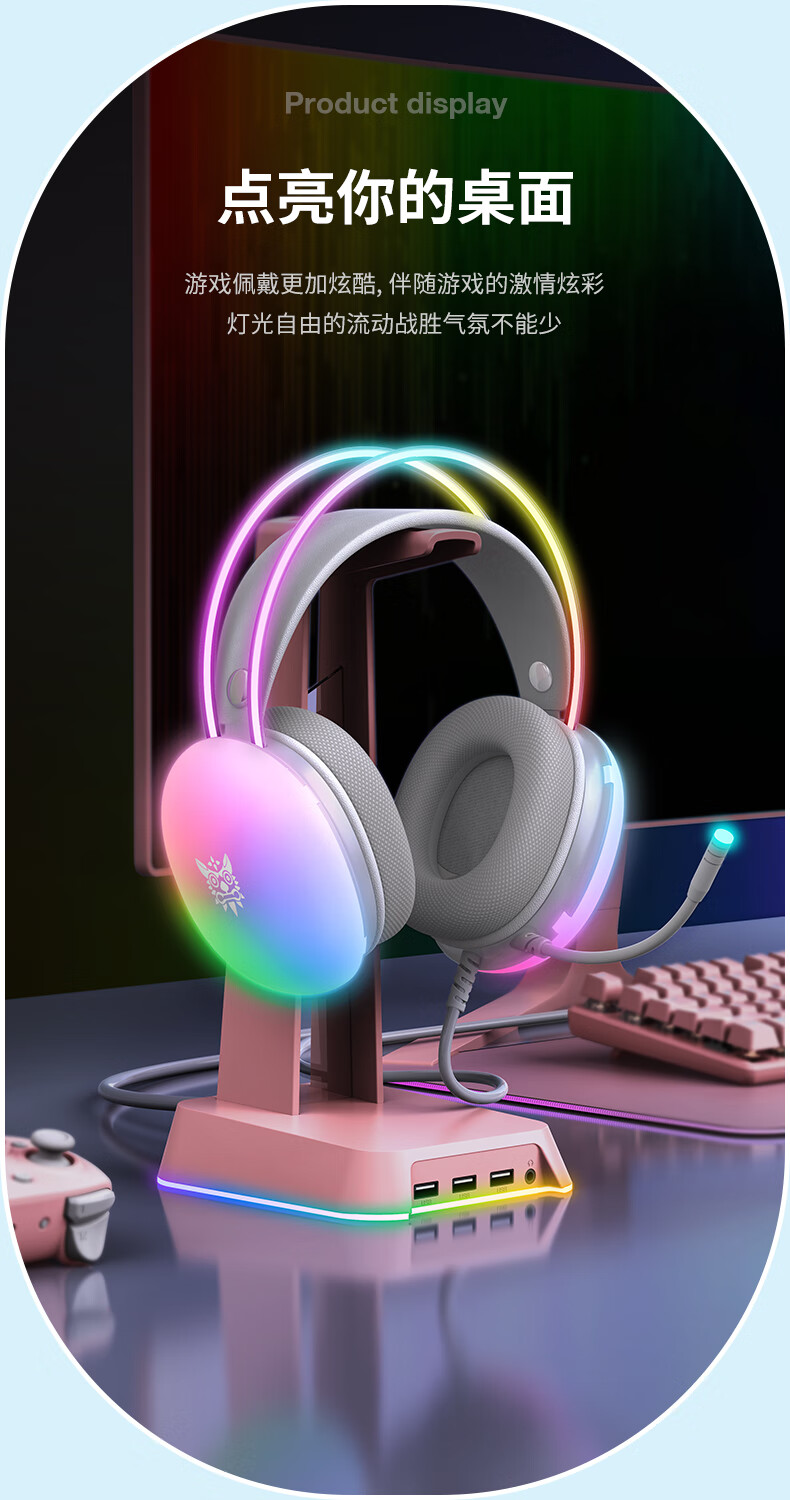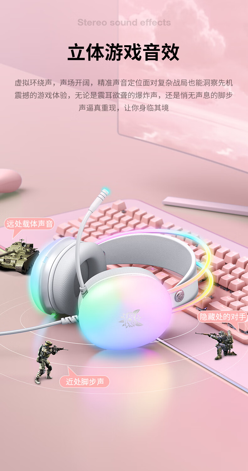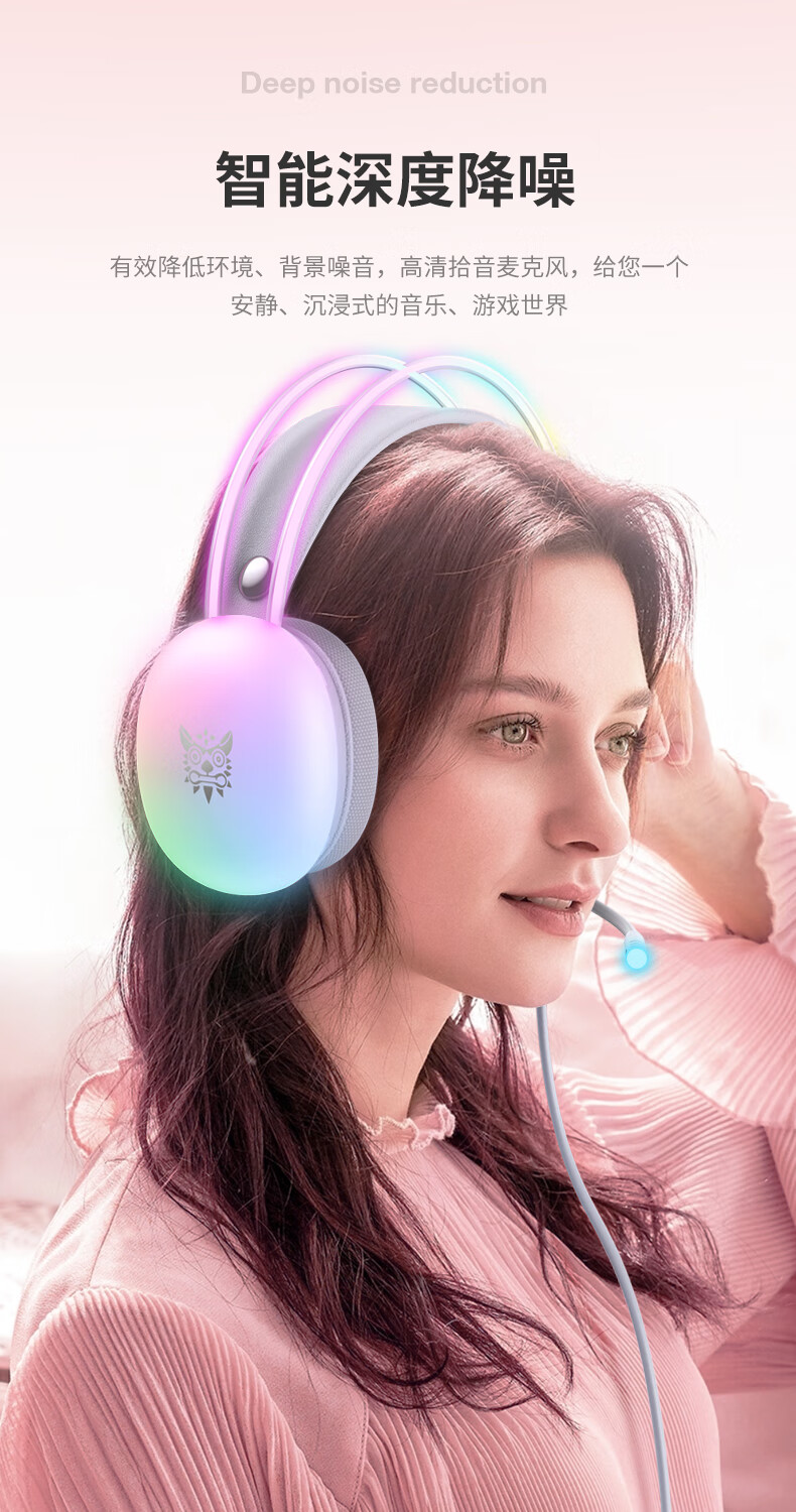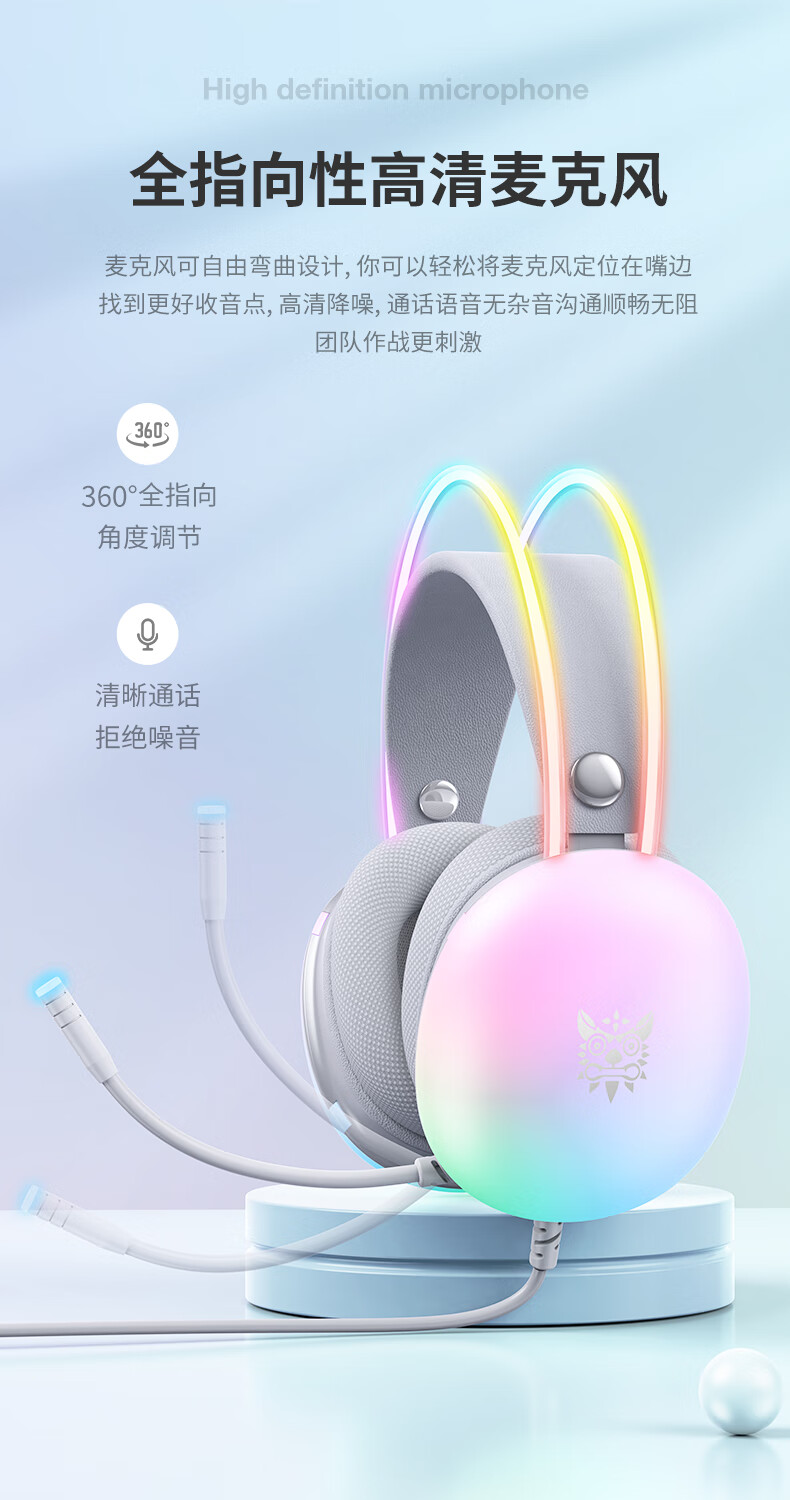 ONIKUMA发光游戏电脑耳机头戴式 电竞耳麦降噪有线笔记本台式机女生吃鸡听音辩位立体声耳机带麦克风话筒 X25雾透白RGB发光耳机 电竞游戏