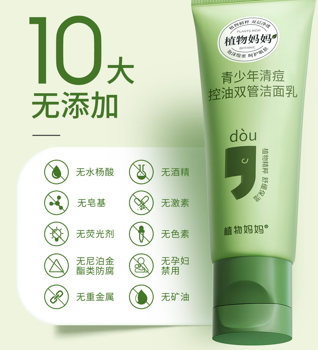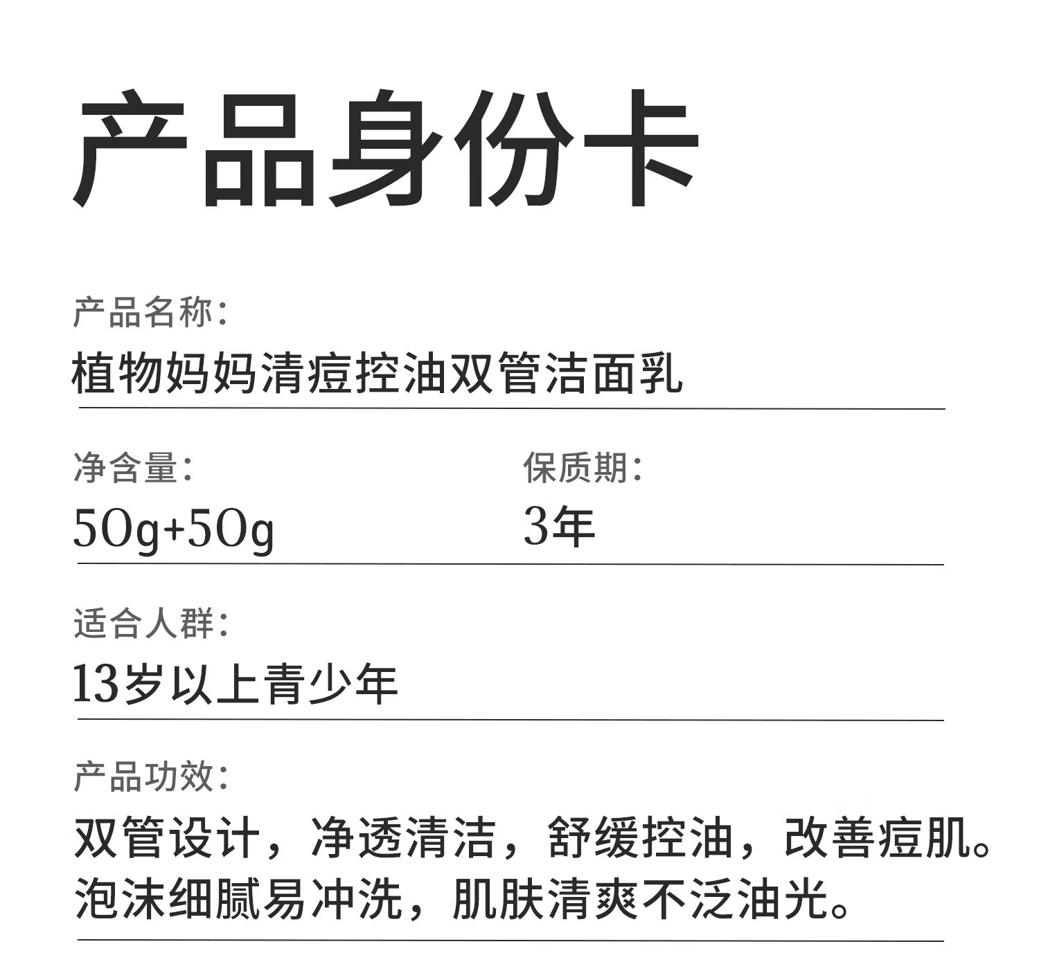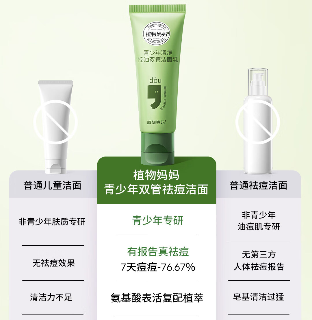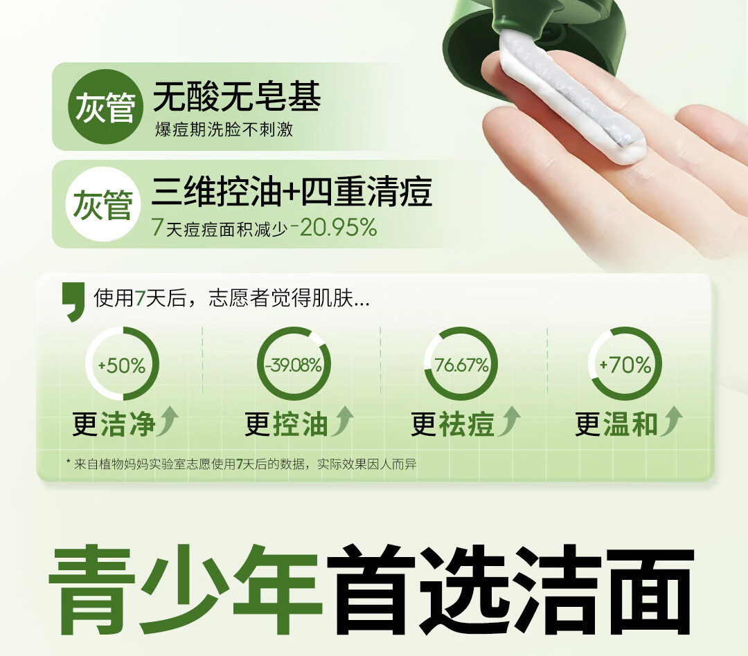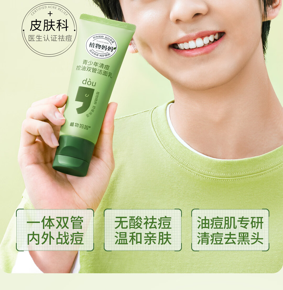 植物妈妈青少年祛痘洗面奶12-18岁男女孩青春期专研控油去黑头闭口洁面乳 【清痘控油去黑头】青少年洁面乳100g