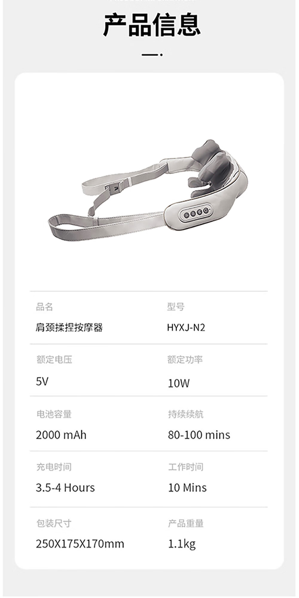 慧昀心境肩颈部按摩仪 智能揉捏热敷 颈椎按摩器 缓解肩颈酸痛 便携设计 多档调节 送长辈优选HYXJ-N2 【全新升级】冰雾灰