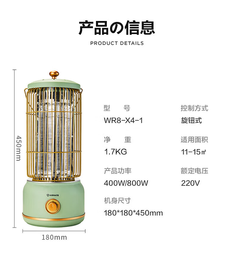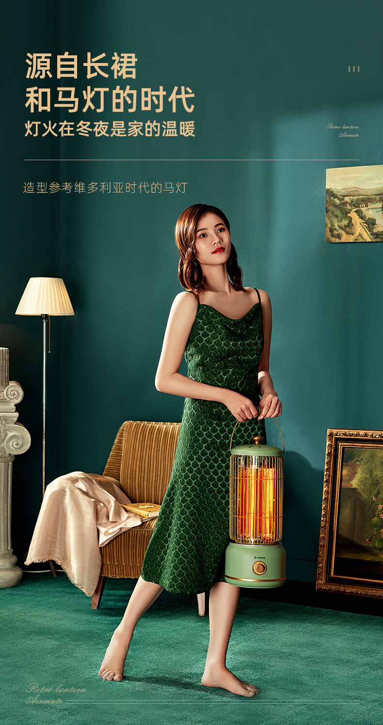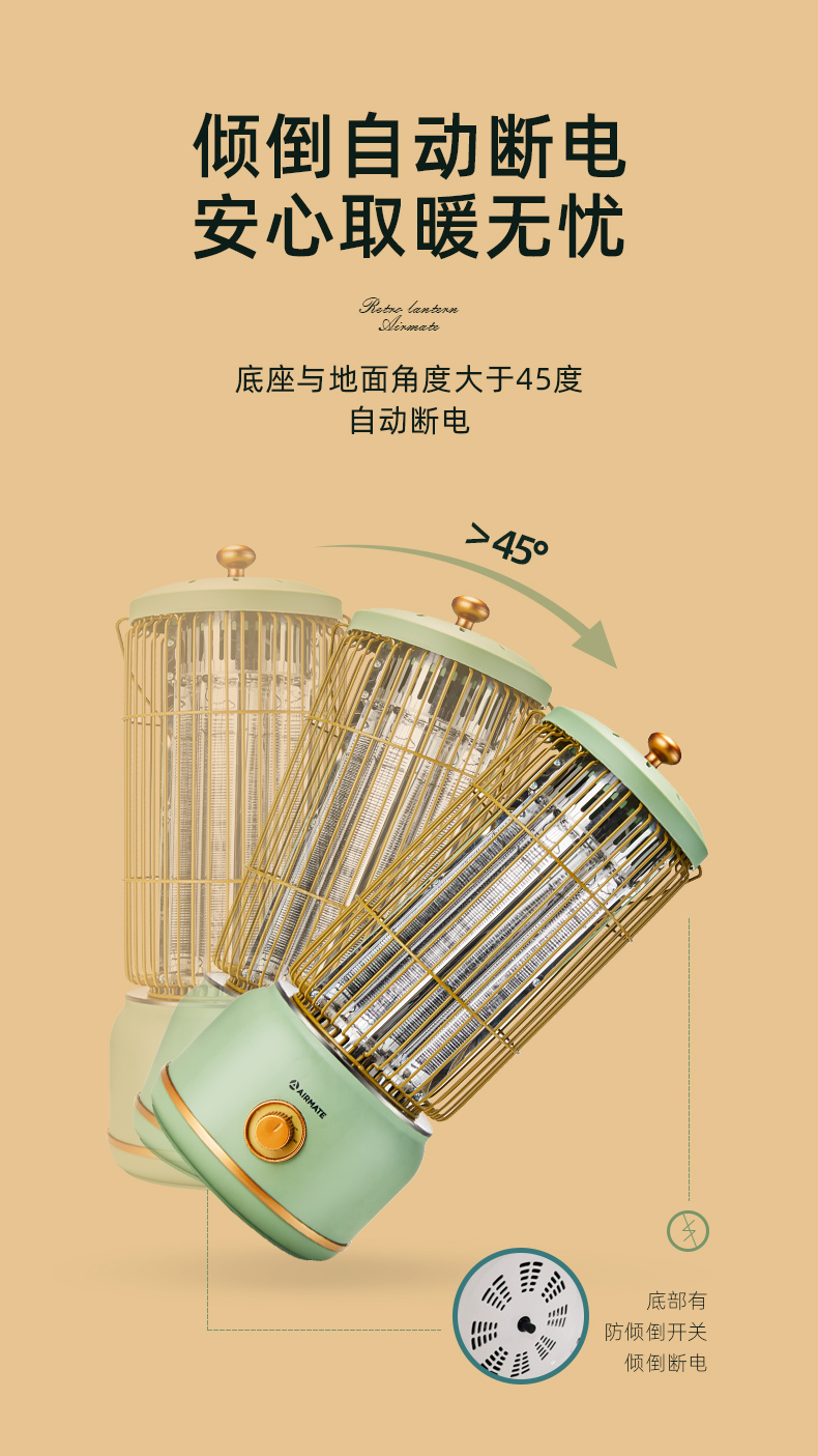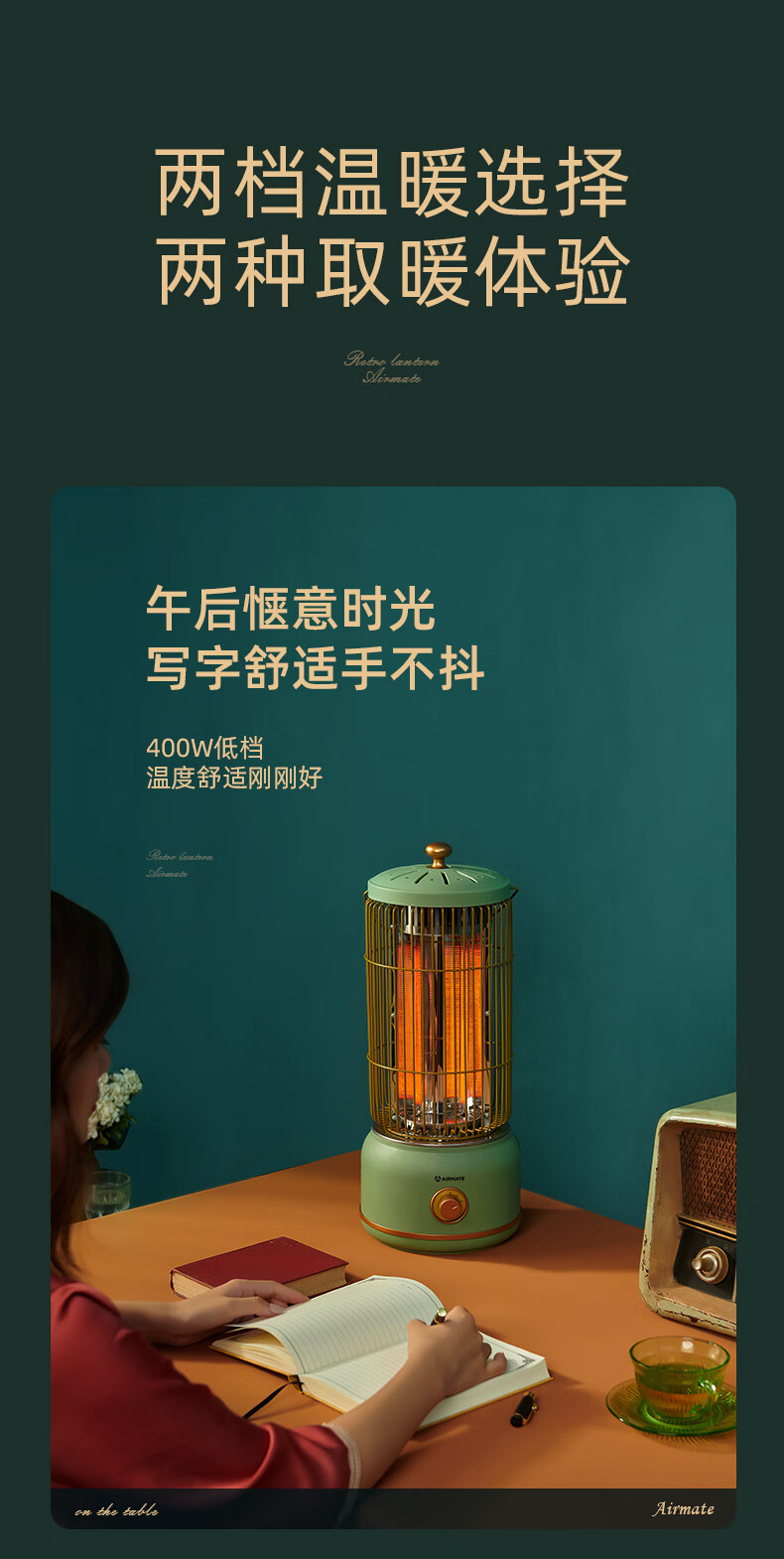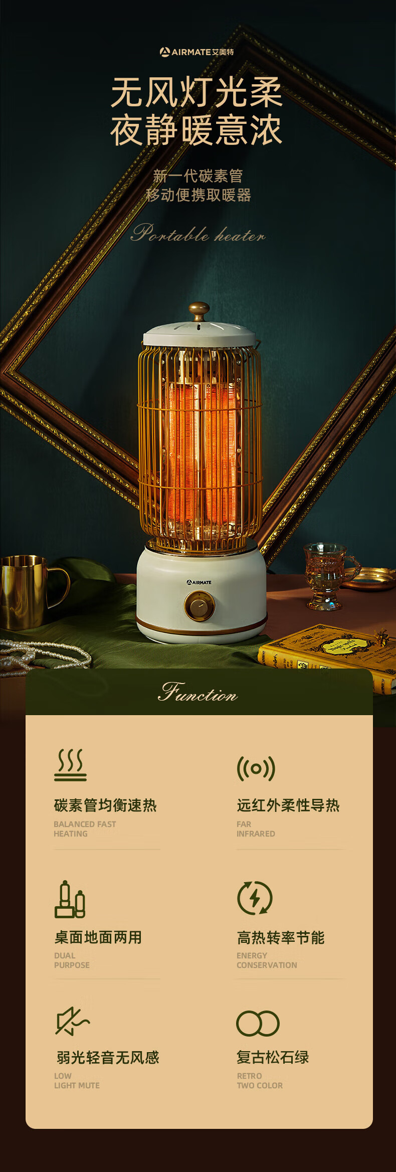 艾美特(AIRMATE)【立体取暖】取暖器/电暖器/小太阳/复古马灯/鸟笼子电暖气 家用轻音节能速热远红外烤火炉