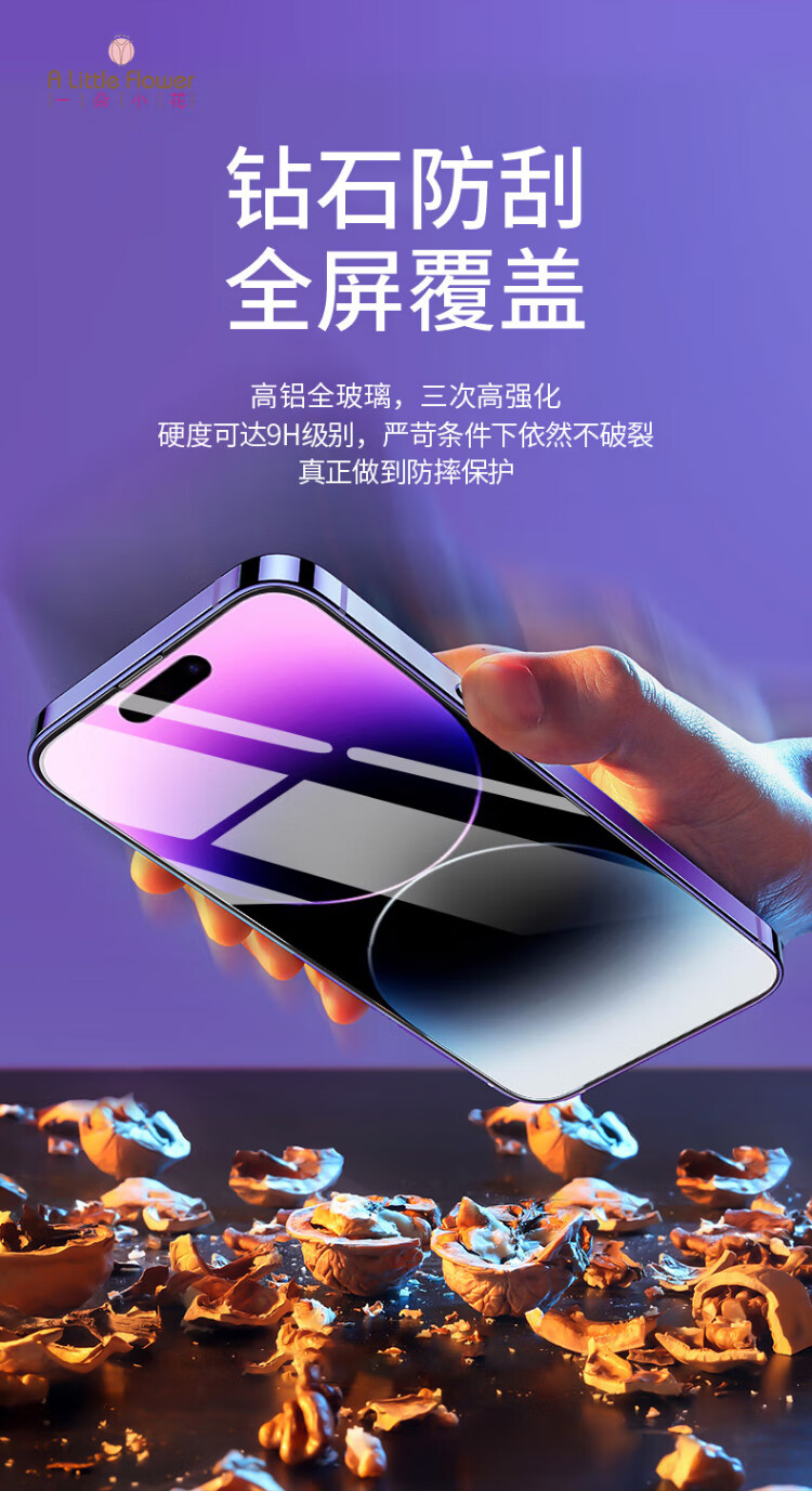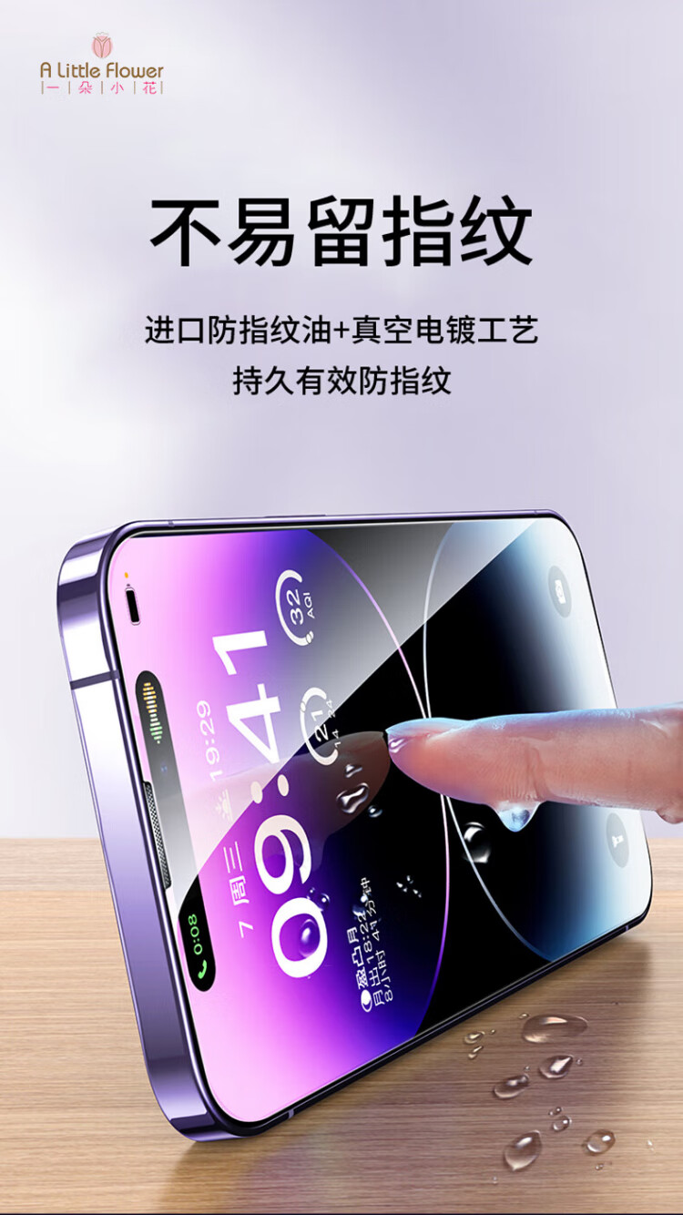 ALittleFlower适用苹果15plus钢化膜iphone15plus手机膜高清防尘防指纹全包边贴膜全屏覆盖保护膜2片装