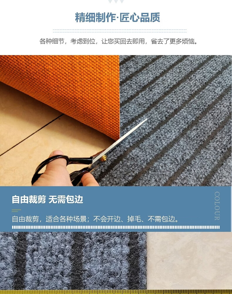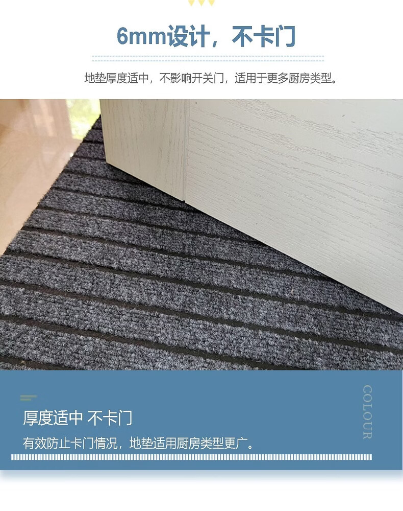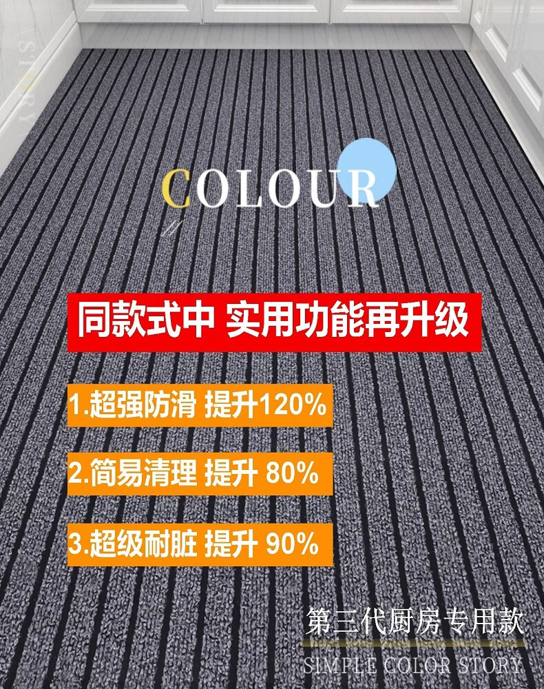 布迪思厨房地垫防滑专用垫子防水防油家用免洗吸水耐脏满铺蹭土门垫脚垫 七条纹黑灰色 定制尺寸联系客服
